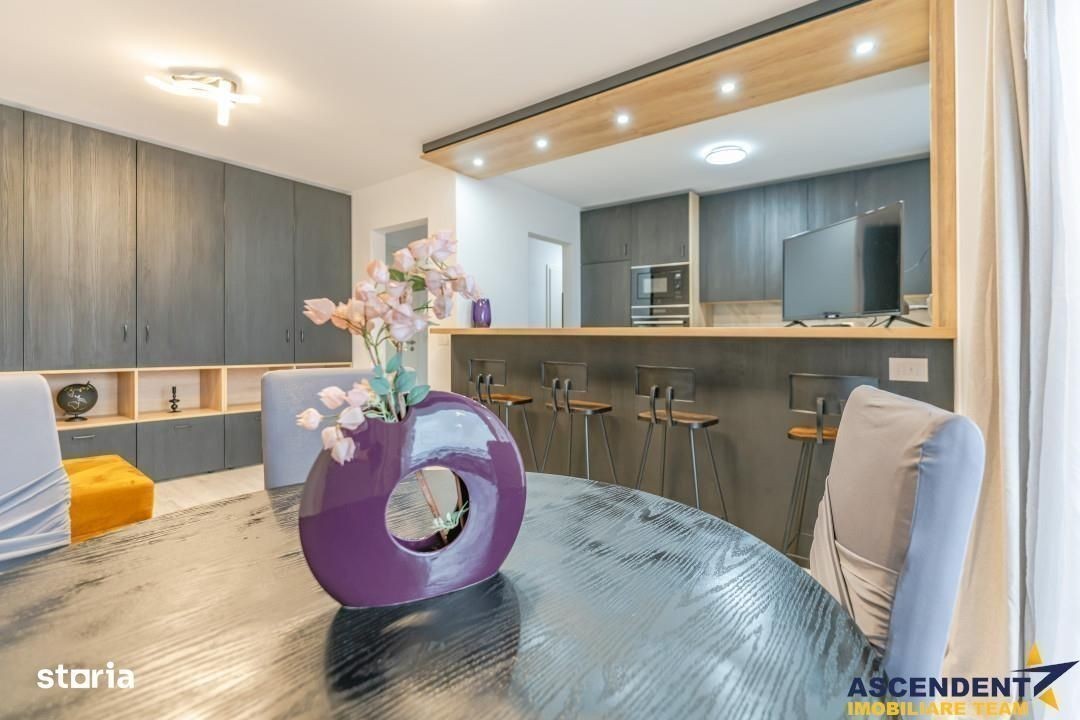 ! Pretul este negociabil ! La pretul expus se aduga tva -ul ! ASCENDENT IMOBILIARE este onorata sa va prezinte spre vanzare o eleganta rezidenta, pozitionata in apreciatul arela Kasper, Coresi, Tractorul Brasov. Va invitam sa experimentati o vizionare initiala, din locatia unde va aflati, chiar acum, prin accesarea turului virtual: Tur virtual tridimensional: s: show ?m=4kihW3WoKpn Compartimentare: Zona de zi: Hol de intrare: Asigura accesul catre toate incaperile apartamentului. Living: Spatios, cu acces la o terasa. Bucatarie: Mare si functionala, cu spatiu de depozitare. Terasa: Accesibila din living, perfecta pentru relaxare. Zona de noapte: Doua dormitoare: Confortabile si bine iluminate. Doua bai: Una cu dus si una cu grup sanitar, baia cu dus avand aerisire naturala (ferestre). Balcon Terasa: Cu acces din dormitorul secundar, ideal pentru momente de liniste. Bucataria este echipata cu frigider, congelator separat, cuptor cu microunde, masina de spalat vase, cuptor electric si plita electrica. Dotari suplimentare: Aer conditionat Rulouri electrice Loc de parcare suprateran si de o boxa de depozitare la subsolul blocului, completeaza confortul. Terasa generoasa, orientata spre sud-vest, ofera o vedere neobstructionata asupra orasului. Proprietatea se remarca prin luminozitatea sa, pozitionarea excelenta in cartier si panorama impresionanta asupra Brasovului. Zona este apreciata, fiind una dintre cele mai cautate locatii de catre cumparatori si investitori. Excelenta infrastructura locala completeaza arene oportunitatii: un cartier modern, in complexul rezidential cu multiple spatii verzi, aproape de aleea pietonala care conecteaza Parcul Sportiv Tractorul, Patinoarul Olimpic, Piscina, gara Brasov, campusul universitar si complexul Coresi Auchan. In vecinatate se gasesc farmacii, Medlife, Cinema One, numeroase magazine si sala Belaqva, cafenele, restaurante, hoteluri, locuri de joaca, hypermarketuri, servicii de infrumusetare si intretinere, zone de relaxare si McDonald's. Cartierul Coresi este aproape de centrul orasului si este deservit de multiple linii de autobuz si troleibuz. Comision cumparator: 2% + tva, din valoarea de tranzactionare.! Pretul este negociabil ! La pretul expus se aduga tva -ul ! Consilier dedicat alesei oferte: domnul Ionel Manailescu, Telefon WhatsApp: