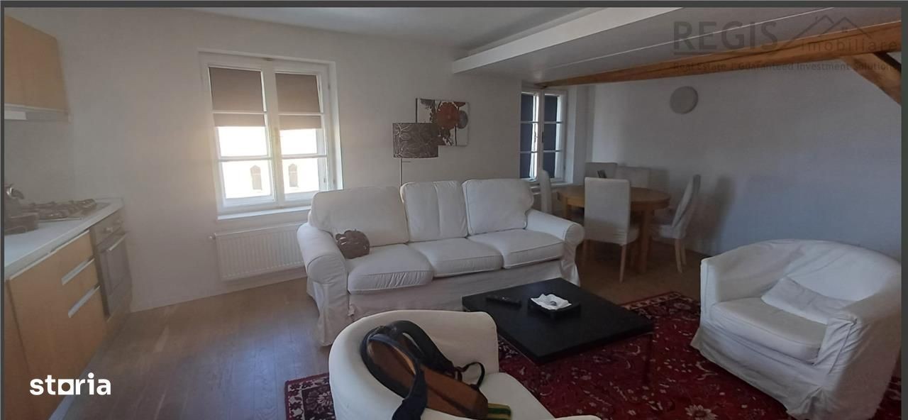 ID intern: 6299 Regis Imobiliare va prezinta un apartament spre vanzare un apartament de 3 camere situat ultracentral,langa Aula Universitatii. Apartamentul a fost renovat in totalitate,designer ul pastrand elementele de autencitate;barnele de lemn,scara interioara de lemn si ferestrele duble de lemn cu geam termopan. Proprietatea ocupa etajul 1 al unei case situate in imediata vecinatate a Aulei Universitatii Transilvania,ceea ce ii confera avantajul deschiderii catre toate punctele de interes ale orasului,cu acces facil la mijloacele de transport in comun. Materialele folosite in renovarea apartamentului sunt premium,atentia la detalii predominand atat in finisaje cat si in decor. Incalzirea se face cu centrala termica de apartament si calorifere. Indiferent ca va doriti o investitie in domeniul hotelier sau o locuinta familiala,avest apartament reprezinta o oportunitate. Comisionu agentiei este de 2%+TVA din valoarea tranzactionata.