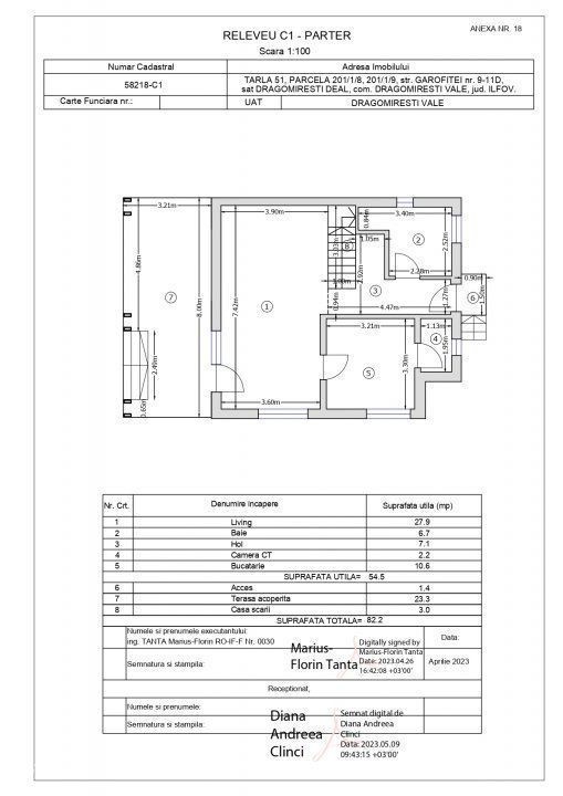 Detalii generale: Suprafață utilă: 120 mp (P+1) + pod (spațiu extra) Suprafață teren: 370 mp Niveluri: Parter + Etaj + Pod Finisaje și utilități: Gaze, apă, canalizare, curent Parter (82 mp): Living - spațios, luminos Bucătărie - modernă, utilată Baie - complet amenajată Terasă acoperită - perfectă pentru relaxare sau dining outdoor Etaj (73 mp): 3 dormitoare - generoase, cu posibilitate de amenajare flexibilă 2 băi - perfecte pentru toata lumea Balcon - priveliște frumoasă asupra zonei Dotări și beneficii: Teren generos (370 mp) - potențial pentru grădină, parking sau extindere Pod util - depozitare sau conversie în cameră suplimentară Locație liniștită, dar bine conectată - aproape de necesități Locație: Dragomiești Deal - zonă rezidențială, aerisită, cu acces facil la: Magazine, școli Drumuri principale Ideal pentru familii care doresc un stil de viață confortabil, într-o zonă dezvoltata, aproape de Bucuresti! Contact pentru vizionare sau detalii suplimentare!