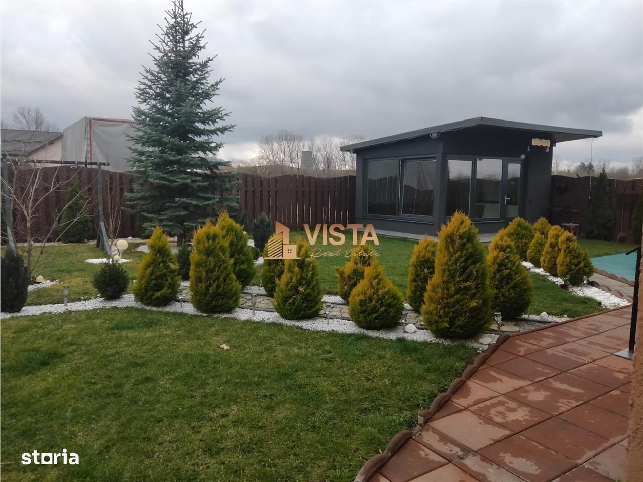 Vista Real Estate va propune spre vanzare o casa deosebita situata in Brasov, zona Rulmentul. Proprietatea dispune de o suprafata generoasa de teren, o curte minunata unde exista si o bucatarie de vara. Casa cocheta si foarte moderna a fost construita in anii 2015, numai din materiale de calitate, se vinde complet mobilata si utilata. Casa dispune de 1 living spatios cu 1 bucatarie open space, de asemenea spatioasa, 4 dormitoare, 2 bai, 2 holuri, 1 scara interioara, 2 balcoane, 2 spatii de depozitare si 1 dressing spatios. Exista si 1 camera tehnica cu intrare si din interior, 1 magazie si 1 garaj. In curtea principala se gaseste o frumoasa bucatarie de vara iar in curtea secundara este amenajata o mica sera si spatii pentru pasari de curte. Casa este perfecta pentru o familie care doreste liniste si spatiu plus posibilitatea de a fi aproape de toate punctele de interes datorita proximitatii centrului comercial AFI Mall si zonei Coressi. Va invit la o vizionare sa va convingeti de potentialul casei! Vista Real Estate, formata dintr-o echipa de profesionisti in imobiliare, sunt gata sa te reprezinte indiferent de nevoia ta imobiliara: servicii de intermediere si consultanta, promovare, evaluarea bunurilor imobiliare, asistenta juridica, investitii imobiliare și administrarea proprietatilor. Noi credem ca tranzactia imobiliara este incheiata atunci cand persoanele care ne trec pragul recomanda, oricand, fara ezitare, Vista Real Estate.