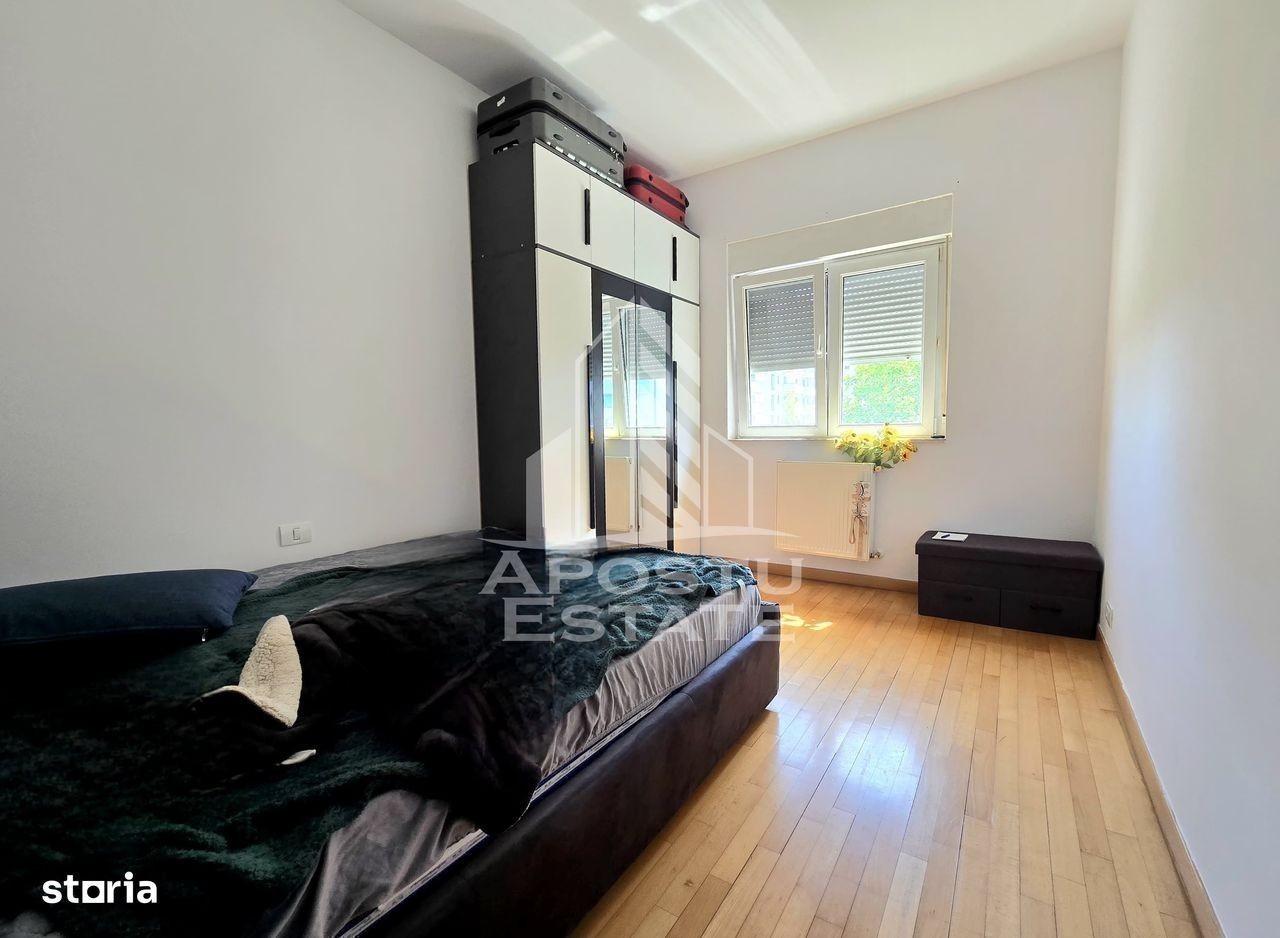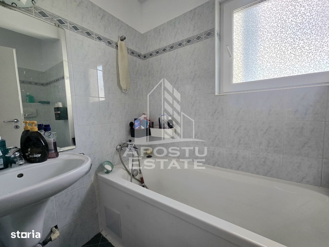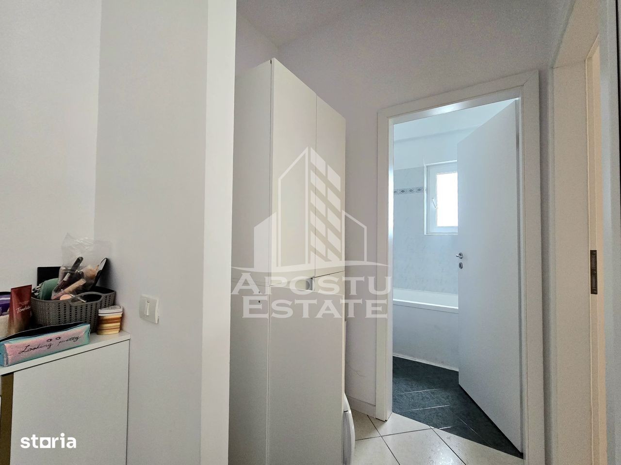 Apostu Estate ofera spre vanzare, in exclusivitate, un apartament modern cu 2 camere, decomandat, situat la etaj intermediar, etajul 3/6 al unui bloc construit in anul 2006, in zona de Nord a orasului, zona Aradului. Locuinta are o suprafata utila de 50 mp, la care se adauga un balcon spatios de aproximativ 6 mp. Apartamentul este recent renovat si se vinde complet mobilat si utilat, exact ca in fotografii. Loc de parcare subteran inclus in pret Compartimentare eficienta: - hol de acces generos - living spatios cu iesire pe balcon - bucatarie inchisa, complet mobilata si utilata - dormitor cu pat matrimonial si dressing - baie echipata cu cada si bideu Dotari si beneficii: - centrala termica proprie pe gaz - incalzire prin calorifere - aer conditionat in fiecare camera - tamplarie PVC - geamuri termopan - rulouri - electrocasnice incluse: plita pe gaz, cuptor electric, cuptor cu microunde, masina de spalat rufe, uscator de haine Pozitie excelenta: - 5 minute cu masina pana la Iulius Mall, Auchan, Hornbach, Decathlon - doar 5 minute de mers pe jos: Mega Image si Spitalul Premiere acces facil la mijloacele de transport in comun Apartamentul este ideal atat pentru locuinta proprie, cat si pentru investitie. Zona este bine cotata, cu multiple facilitati in proximitate. Te asteptam cu drag la vizionare! Oferim consultanta imobiliara si suport pentru obtinerea celui mai avantajos credit prin colaboratorii nostri financiari.