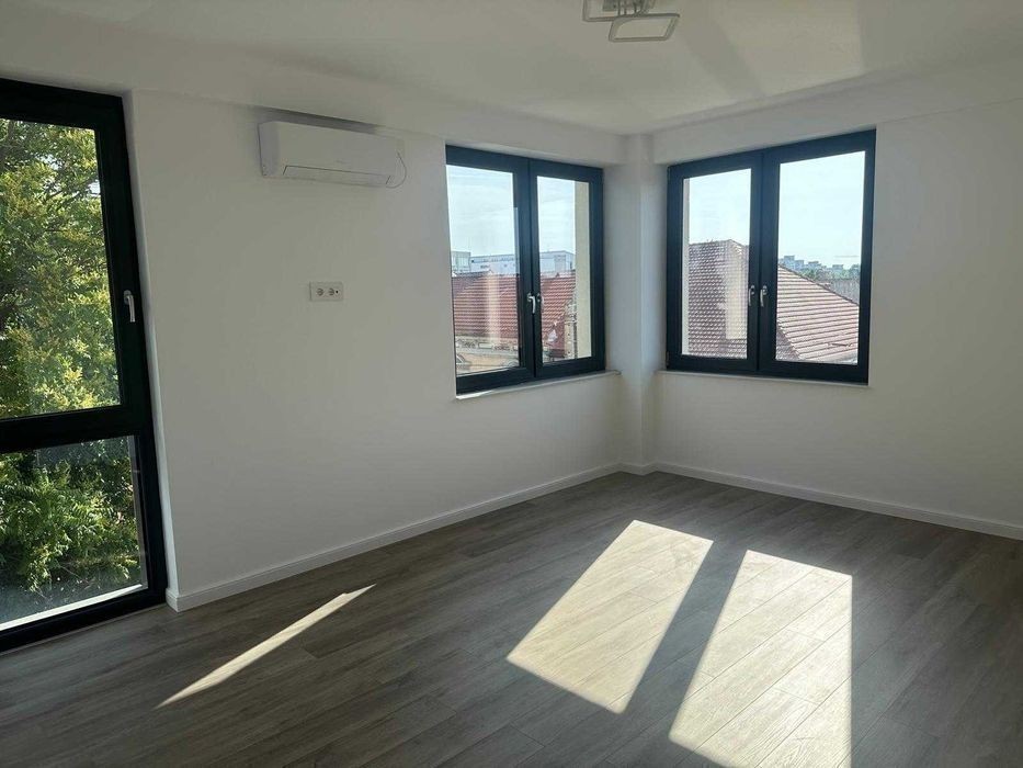 Nu colaborez cu agentii imobiliare. Apartament 2 camere, de inchiriat, nemobilat, amplasat la etajul 2, intr-un bloc nou cu 4 etaje si care este dotat cu camere video si lift modern. Blocul este situat ultracentral pe strada Avram Iancu. Apartamentul este pretabil pentru rezidential dar si pentru birouri. Dispune de 2 locuri de parcare in parcarea subterna a imobilului incluse in pret. Este decomandat, are un hol de intrare, living cu bucataria open-space, un dormitor, baie cu dus. Suprafata utila a acestui apartament este de 74mp si are un balcon de 4mp. Apartamentul este la prima inchiriere, are mobila de bucatarie si electrocasnice: masina de spalat vase, frigider, plita electrica, hota, cuptor electric, cuptor cu microunde, aer conditionat in fiecare camera. Incalzirea apartamentului este in pardoseala, temperatura este reglabila cu termostatul de interior individuale in fiecare camera. Blocul este aproape de Piata Unirii si are in apropiere statii ale mijloacelor de transport in comun. In zona se gasesc scoli, gradinite, parcuri, locuri de joaca pentru copii, magazine. Pretul de inchiriere este de 500 euro/luna +tva