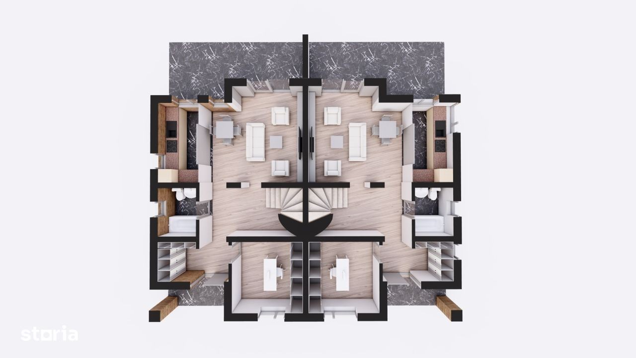 Vă prezentăm un ansamblu de case tip duplex, situate într-una dintre cele mai apreciate zone din Bucium, cu acces facil înainte de Plopii Fără Soț. Proprietățile dispun de o compartimentare eficientă, finisaje de calitate și o priveliște spectaculoasă asupra orașului. Stilul arhitectural mediteranean, combinația dintre lumină naturală abundentă și zonele exterioare transformă aceste case într-un spațiu perfect pentru o familie modernă.