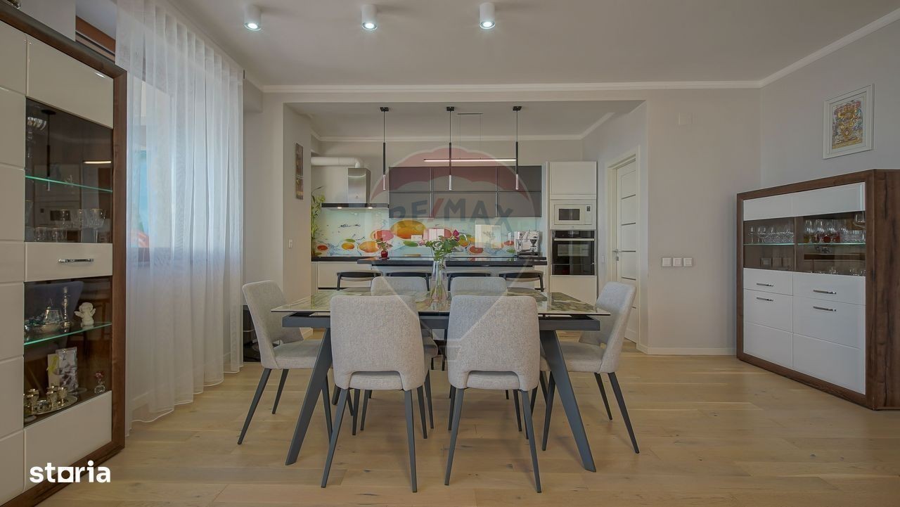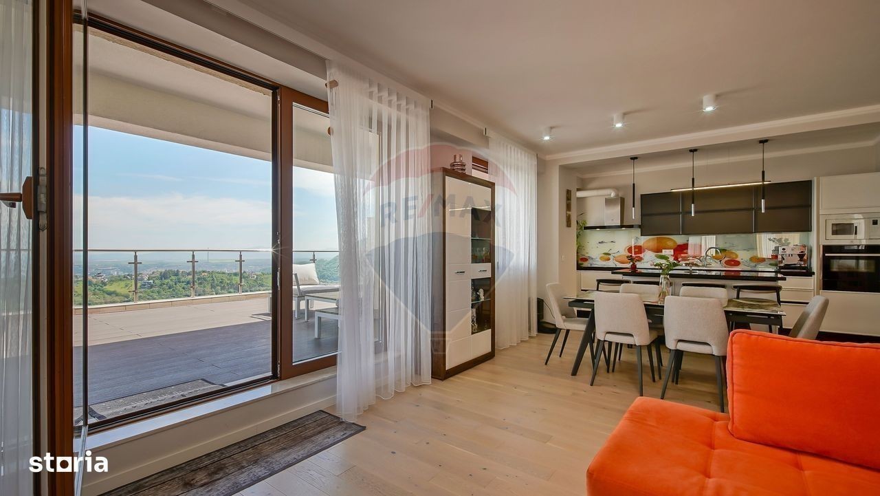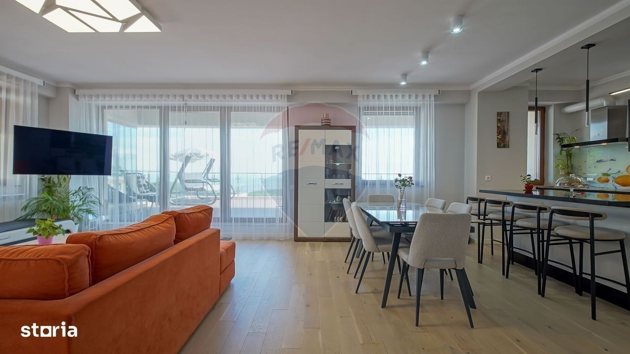 Bună ziua, sunt Zoltan Fejer consultant imobiliar în cadrul biroului Re/max Central și doresc să vă prezint probabil cel mai frumos apartament din Brașov! După o plimbare prin centrul istoric al Brașovului, zona străzii Republicii, Piața Sfatului, înțesate de zeci de localuri cu terase primitoare, bucurându-ne sufletul, ne întoarcem cu mașina pe strada Mureșenilor spre Livada Poștei. Un parc liniștit, frumos amenajat dar care poate fi considerat o “poartă” către Poiana Brașov. Un drum, nu foarte abrupt, dar care “urcă” aproape învelit de copacii care o mărginesc, oferind o senzație uimitoare. Iar la doar câteva minute de oraș, pe partea stângă, regăsim 6 clădiri, parcă ascunse, Seasons Residence Brașov! Dacă vă doriți un apartament de care să vă bucurați în concediu, ca second home, investiție sau chiar și domiciliu permanent, căutarea dvs a luat sfârșit! Apartamentul are o suprafață utilă de 121 mp, și este compus din 3 dormitoare, camera de zi împreună cu bucătăria, 3 băi, dressing, cămară, hol și o terasă superbă de 49 mp. În 2021 a fost renovat integral, mai exact amenajat modern, foarte util și cu mult bun-gust. Pot spune cu toată convingerea că satisface cele mai stricte așteptări! Zona de zi unește livingul cu zona de servit masa și bucătăria iar accesul cu ușă dublă spre terasă oferă un sentiment de relaxare la primele raze de soare sau la apusul liniștitor. Spațiul de dormit este compus din două dormitoare amenajate pentru doi copii și baie, completată de zona matrimonială, respectiv dormitor, dressing și baie. Vă rog să parcurgeți toate imaginile! În prețul afișat este inclus un loc de parcare subteran, un loc de parcare suprateran și două boxe. Pentru detalii și programarea unei vizionări, vă rog să mă contactați telefonic. Tel: