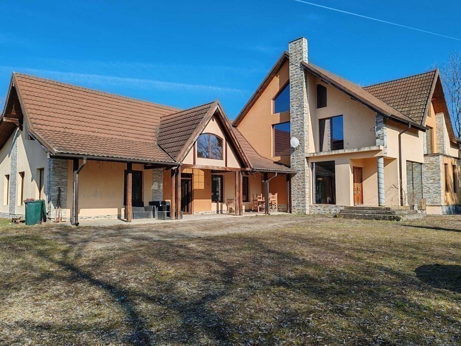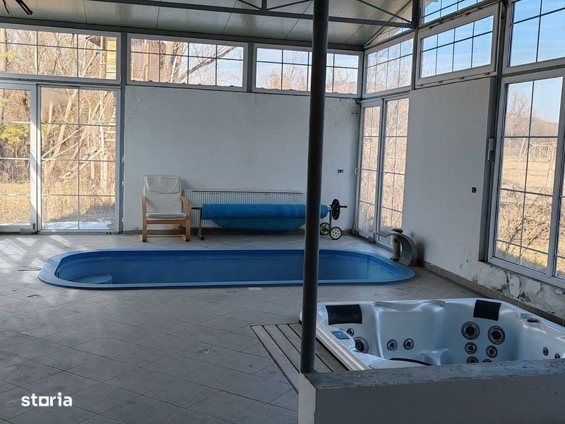 Casa de Vacanta (conac) Locatie Deosebita Oportunitate Afacere * Vand proprietate cu teren 32147 m2 * Impartita in doua locatii vis a vis una de cealalta * Proprietatea principala pe care se afla casa are 8067 metri patrati * Proprietatea alaturata are 4644 metri patrati * Restul de 19436 metri patrati sunt teren intravilan (curti constructii) * Casa are o suprafata utila locuibila 535 metri patrati (P+1E) * La parter sunt 3 camere, 2 livinguri generoase, 2 bai, bucatarie si doua holuri mari * La parter este amenajata o camera SPA, piscina, sauna jacuzzi si masa masaj * La etaj sunt 3 camere, baie, un hol generos, doua balcoane, unul interior si unul exterior * Mansarda poate fi transformata in spatiu locuibil foarte usor * Incalzirea se face cu centrala pe lemn de mare putere, incalzire in pardoseala * Proprietatea are urmatoarele anexe: * Camera tehnica mare * Casa mica locuibila (3 camere, baie) * Cladire depozit lemne si spatiu de locuit pentru angajatii proprietatii * Terasa mare acoperita pentru evenimente (200 personae) * Foisoare, gratare si terase mai mici pentru relaxare * Casuta in copac, o mare atractie pentru copii * Proprietatea ofera o vasta gama de oportunitati pentru diferite afaceri: microturism, agroturism, sala de evenimente, parc thematic, etc. * Cea de a doua proprietate, alaturata, este in sine o afacere la cheie * Restaurantul si bucataria sunt complet utilate si dotate. * Ideala pentru pensiune, sala de evenimente, etc. * Locul si amplasarea acestei proprietati confera avantaje nenumarate pentru afaceri * Situata chiar la intrarea in satul Cuvesdia, judetul Arad, drum de acces nou, asfalt pana in fata casei, ofera un acces facil pentru orice tip de transport. * Totodata, terenul intravilan nefolosit in acest moment poate fi folosit pentru multe alte activitati si oportunitati, dupa dorinta si imaginatia celui care cumpara. * Mai multe detalii la telefon, nu fac schimburi. Pret 278000 euro. Telefon