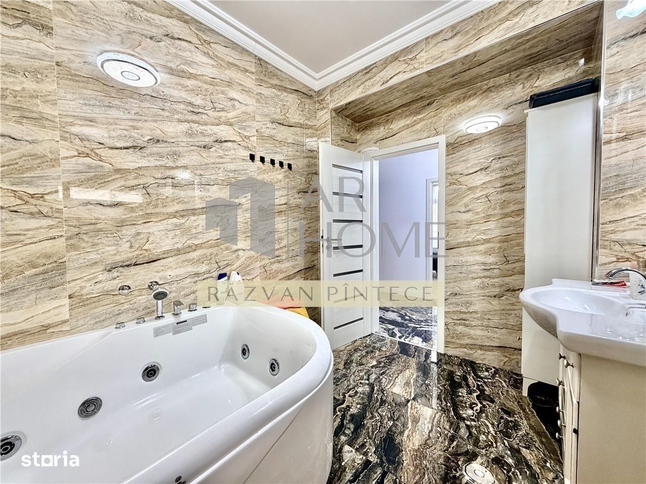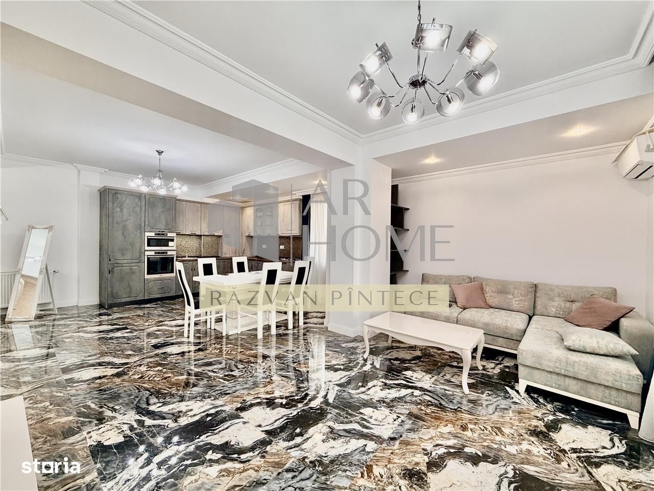 Inchiriere apartament 3 camere, de lux, confort 1A, decomandat, zona Cartier Albert, Ploiesti. Apartamentul este situat la etajul 2 al unui imobil cu 3 etaje, construit in anul 2020, dotat cu ascensor Schindler, ce face parte dintr-un ansamblu alcatuit din 2 imobile cu acces restrictionat. Imobilul este in apropiere de benzinaria OMV, statii mijloace transport in comun, restaurante, supermarket Kaufland, Ploiesti Shopping City, acces imediat catre centura Ploiestiului. Suprafata utila este de 110 mp, plus 3 terase in suprafata de 30 mp. Este compartiemntat astfel: camera de zi open space cu bucataria, dormitor matrimonial cu dressing si baie, dormitor secundar, baie comuna, hol. Dispune de urmatoarele imbunatatiri si finisaje de lux: jacuzzi, marmura, parchet stratificat, faianta, usa intrare metalica, usi interior lemn, tamplarie PVC cu geam termopan tripan, stucco, video interfon. Incalzirea se realizeaza cu ajutorul centralei termice proprii, iar climatizarea cu ajutorul aparatelor de aer conditionat montate in fiecare camera. Se inchiriaza complet mobilat si utilat cu masina de spalat rufe automata, masina de spalat vase, aparat aer conditionat, combina frigorifica, plita, cuptor, 3 TV-uri LCD. Pret: 1100 EURO, lunar, plus o luna garantie.