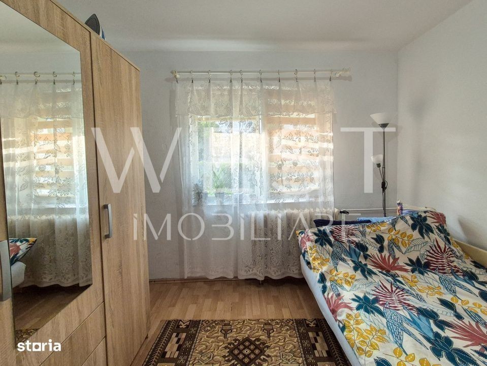 Vă propun spre vânzare un apartament cu 3 camere, situat în cartierul Mănăștur, pe strada Aleea Retezat - o zonă apreciată pentru accesibilitate și facilități. Proprietatea beneficiază de o localizare excelentă, fiind la câțiva pași de magazine alimentare precum Mega Image, stații pentru mijloace de transport în comun, locuri de joacă pentru copii, Școala Gimnazială „Liviu Rebreanu”, sala de fitness Burn, precum și în apropierea pădurii și zonelor verzi ideale pentru relaxare. Apartamentul are o suprafață utilă de 50 mp și se află la parterul inalt al unui imobil cu 4 etaje si cu boxă la subsol, inclusă în preț. Compartimentarea este semidecomandată și cuprinde: hol de acces, bucătărie, living, două dormitoare și baie. Se vinde în starea prezentată în fotografii, complet mobilat și utilat, fiind o opțiune practică atât pentru locuire personală, cât și pentru investiție. Pentru mai multe informații sau pentru a programa o vizionare, vă stau la dispoziție. Cod ofertă / ID: WST2644