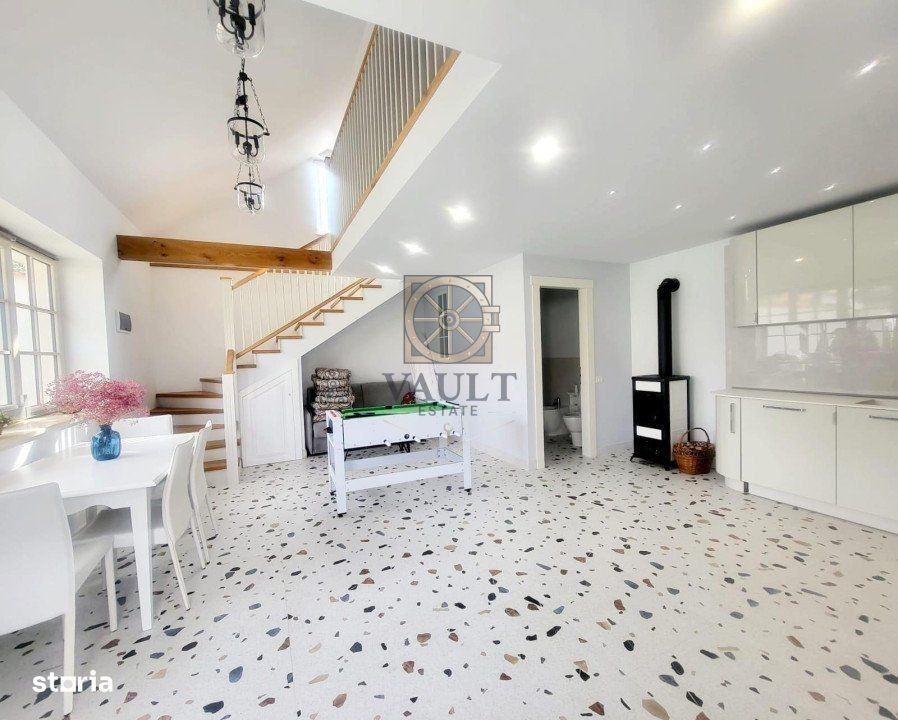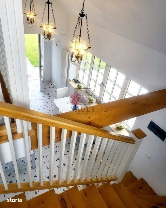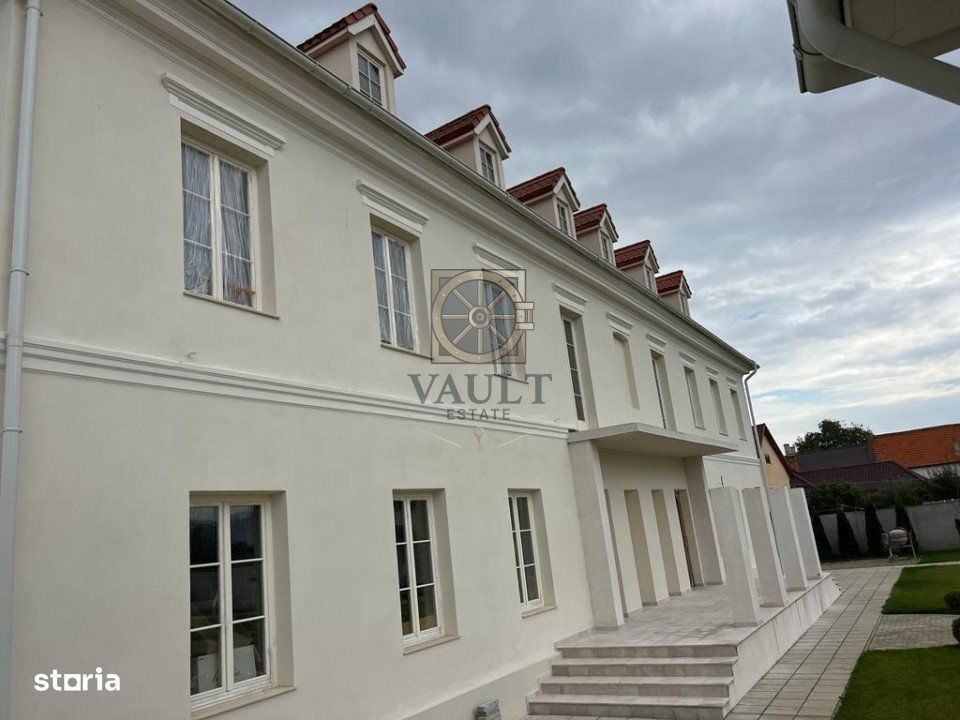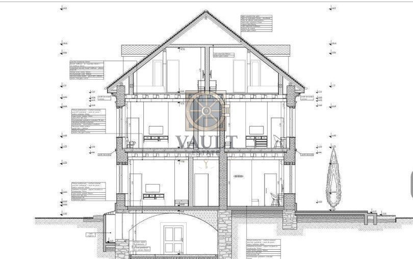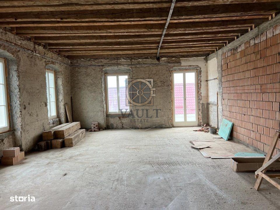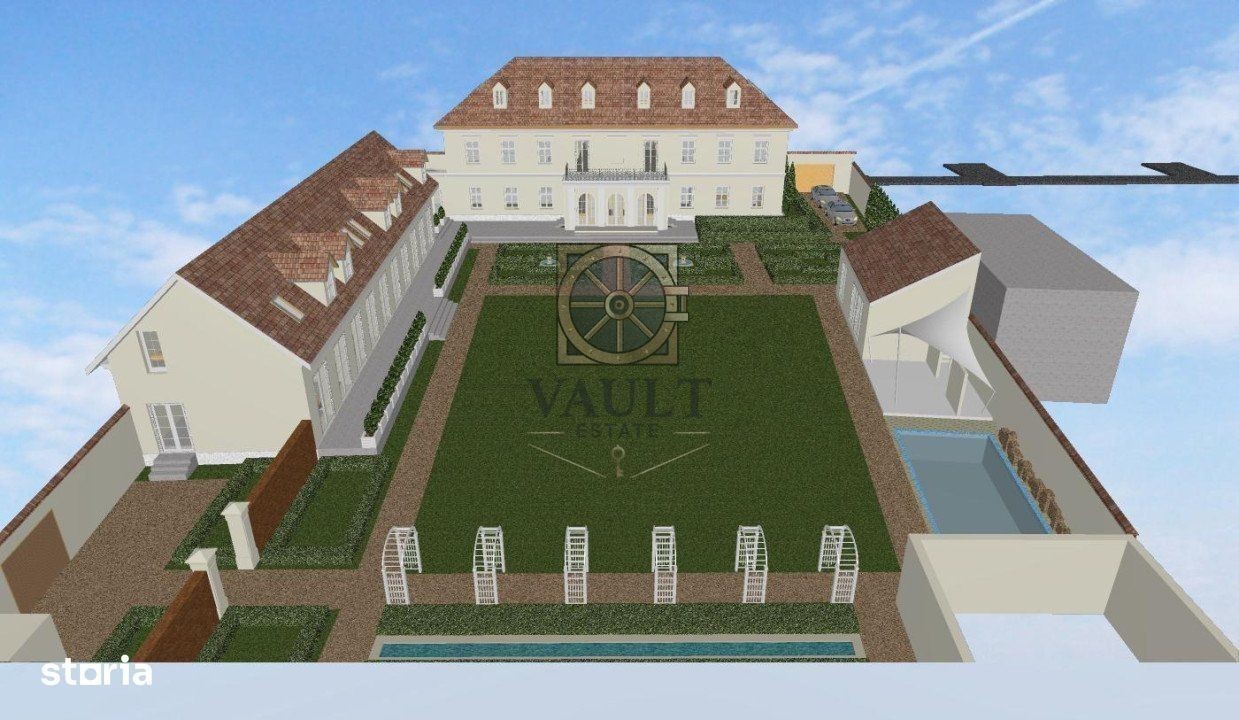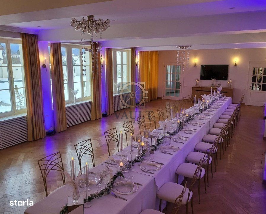 COD PROPRIETATE : P31348 Vault Estate vă propune o proprietate deosebită, încărcată de istorie și cu un potențial excepțional pentru dezvoltare. Situată în inima pitoreștii localități Sânpetru,în cea mai apropiată suburbie a Brașovului, în regiunea istorică Țara Bârsei, această clădire emblematică, cunoscută drept Școala Evanghelică Săsească, reprezintă o oportunitate rară pentru investitori, dezvoltatori sau pasionații de patrimoniu istoric. O istorie profundă, un viitor strălucit Această școală, care de-a lungul secolelor a fost martorul educării generațiilor de tineri din comunitatea săsească, își scrie astăzi un nou capitol. Deși trecutul său este adânc înrădăcinat în istoria localității - Sânpetru fiind atestat documentar încă din 1240, sub numele de Mons Sancti Petri - clădirea este astăzi pe punctul de a se transforma într-un hotel boutique exclusivist și centru de evenimente premium. Renovările actuale respectă linia arhitecturală tradițională săsească, păstrând detaliile care conferă autenticitate locului, dar adăugând totodată toate elementele necesare confortului modern. Detalii despre proprietate : Proprietatea se întinde pe un teren generos de 2.474 mp și include două clădiri principale, dispuse în formă de „L”, înconjurând o curte interioară superb amenajată peisagistic. Clădirea principală : Aceasta are o suprafață construită totală de 1.510 mp, dispusă pe 4 niveluri - subsol, parter, etaj și mansardă. Fiecare dintre acestea este proiectat pentru a găzdui funcțiuni specifice, îmbinând utilitatea cu estetica: Subsolul: un spațiu ideal pentru o cramă, unde vizitatorii pot experimenta degustări de vinuri alese într-un decor autentic și intim. Parterul: zone de luat masa și spații de socializare, cu o arhitectură elegantă, păstrând detalii originale precum tavanele înalte, arcadele săsești și zidurile groase, caracteristice construcțiilor din acea epocă. Etajul și mansarda: camere generoase, fiecare cu baie proprie și dressing, menite să ofere oaspeților un confort de neegalat. Designul interior este gândit să îmbine elementele tradiționale, precum grinzile de lemn expuse, cu facilități de lux. Clădirea secundară Aceasta este deja complet renovată, având o suprafață construită de 408 mp distribuită pe două niveluri. Cu finisaje premium și un design modern, clădirea poate fi utilizată imediat. Parterul: găzduiește o bucătărie spațioasă, complet echipată, și un salon ideal pentru organizarea de evenimente restrânse, cine festive sau mese pentru grupuri mici. Etajul: include două apartamente complet mobilate, fiecare gândit pentru a oferi intimitate și confort. Curtea interioară - un colț de rai peisagistic Curtea interioară a fost amenajată cu grijă pentru a crea o atmosferă de poveste. Gazonul impecabil, aleile pietruite și vegetația variată - de la pomi fructiferi la magnolii spectaculoase - contribuie la un peisaj care încântă privirile în orice anotimp. Primăvara, magnoliile înfloresc într-un spectacol de culori, iar vara, verdele intens al copacilor oferă o oază de răcoare. Localizare privilegiată : Proprietatea este situată în centrul istoric al Sânpetrului, la doar câțiva pași de impresionanta Biserică Evanghelică Fortificată, construită în 1794 pe temelia unei biserici din secolul al XIII-lea. Această biserică, împreună cu întreaga zonă, creează un context turistic deosebit, oferind vizitatorilor o incursiune în istoria și cultura sașilor transilvăneni. De asemenea, Dealul Lempeș, o rezervație naturală situată în apropiere, completează peisajul idilic. Priveliștea de pe terenul proprietății este una impresionantă, oferind un refugiu departe de agitația urbană, dar cu acces facil către Brașov, aflat la doar câțiva kilometri distanță. Această proprietate se remarcă prin potențialul său extraordinar, fiind ideală pentru: Hotel boutique: Camerele generoase, spațiile comune elegante și proximitatea față de Brașov fac din această proprietate o alegere excelentă pentru un refugiu turistic de lux. Centru de evenimente: Saloanele spațioase și curtea interioară fermecătoare sunt perfecte pentru organizarea de nunț