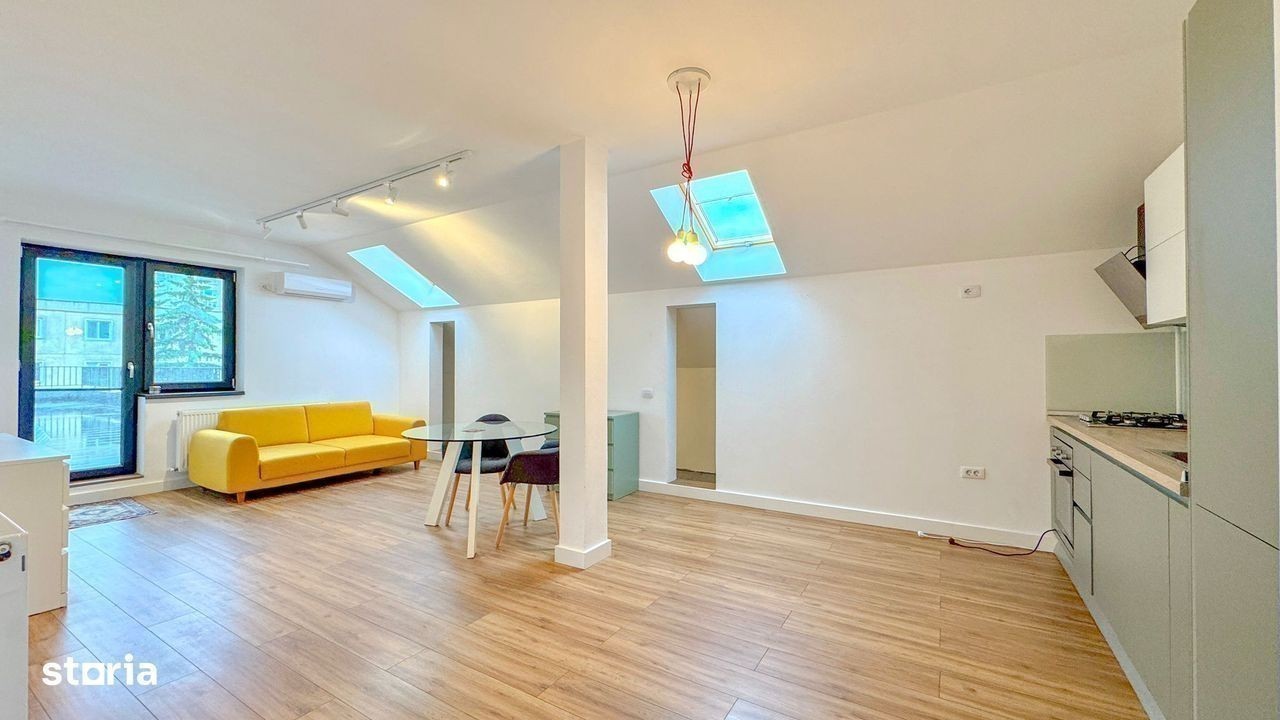 Quiboo Estate vă propune spre vânzare un penthouse elegant și extrem de spațios, situat la mansarda unui imobil cu regim redus de înălțime (P+2), pe strada Lalelelor - în zona Gemenii, o locație liniștită, cu acces facil către punctele de interes ale orașului. Cu o compartimentare inteligentă, accente funcționale și o terasă panoramică spectaculoasă, această proprietate reprezintă o oportunitate rară pentru cei care apreciază spațiul, lumina naturală și confortul urban.
