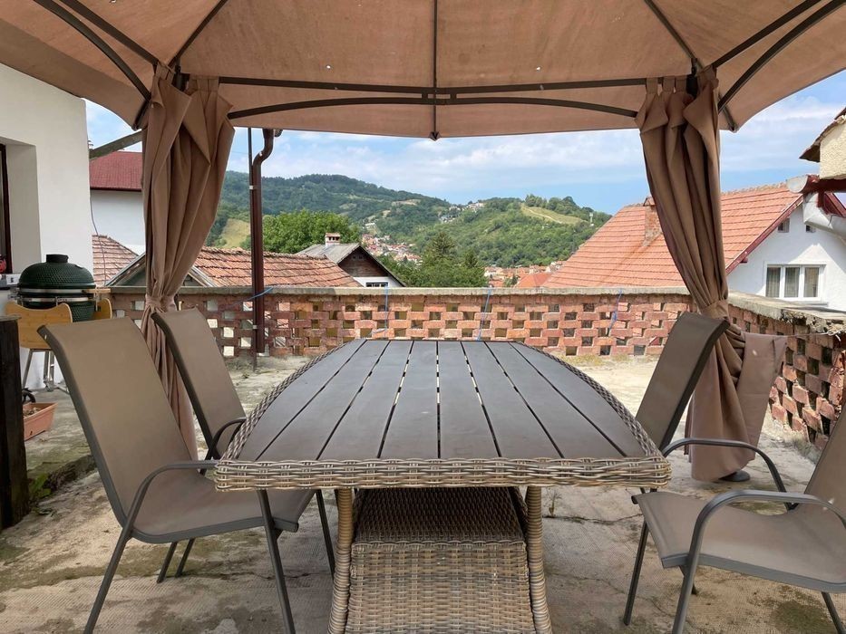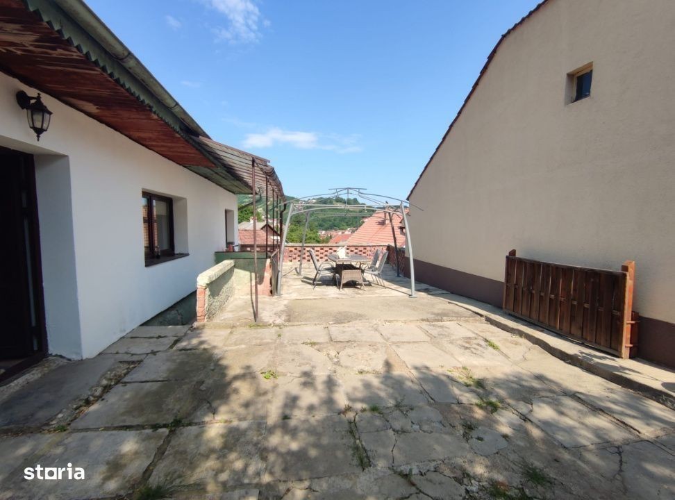 PROPRIETAR (particular) vând casă în zona centrală a Brașovului - la intrare în Schei - pe partea stângă, imediat cum se intră pe Strada Curcanilor, numărul casei fiind 21, accesul făcându-se doar pietonal pe scările din stânga, numite "Strada Cotun". Mașina poate fi parcată lângă casă. Avantajele acestei propietăți: Casa reprezintă o bună oportunitate de investiție. Imobilul se pretează foarte mult și pentru regim hotelier prin poziționarea și structura pe care o are. Imobilul deține un real potențial în domeniul investițiilor imobiliare prin prisma următoarelor aspecte: - este situat foarte aproape de zona centrului istoric al Brașovului; - este foarte aproape de promenada sub Tâmpa - 8 minute de mers pe jos; - terenurile de tenis “Olimpia” - 6 minute de mers pe jos; - Piața Sfatului - 13 minute de mers pe jos; - Livada Poștei - 20 minute de mers pe jos. Aflându-se la poalele Tâmpei, imobilul facilitează cu mare ușurință o drumeție de 30 de minute pe “Șaua Tâmpei”. Proprietatea este dispusă pe două niveluri: - Perspectiva din stradă - Parter - acest "parter" este de fapt un semidemisol atunci când vă aflați în curte, semidemisol ce este alcătuit din două camere, baie și beci - Perspectiva din stradă - Etaj - acest "etaj" este de fapt partea principală a casei cu o mică curte și terasă. Acest corp de casă este compus din: living, bucătărie, un mic dormitor, baie și o cameră tehnică. Accesul între cele două nivele se face printr-o scară exterioară, permițând utilizarea proprietății fie ca un întreg, fie ca două apartamente individuale. Alte detalii ale imobilului: - Singur în curte - Curte însorită - Suprafață utilă 91 mp (40 mp necesită finalizare renovare) - Teren disponibil 170 mp - Terasă cu vedere superbă în toate anotimpurile anului. Trebuie luat în considerare următoarele aspecte: - este de indicat ca în viitorul apropiat să fie înlocuite țiglele sau reamenajarea acoperișului - sunt necesare finalizarea unor renovări precum beciul și cele două camere de la demisol