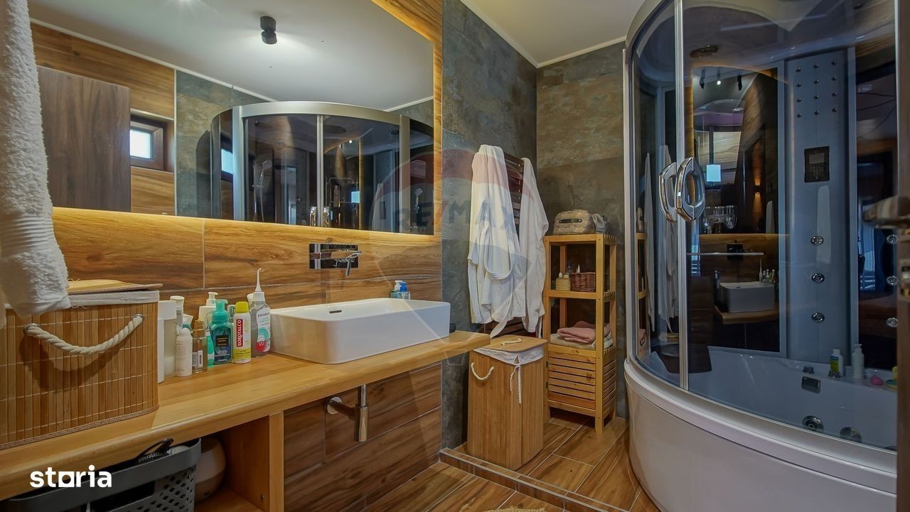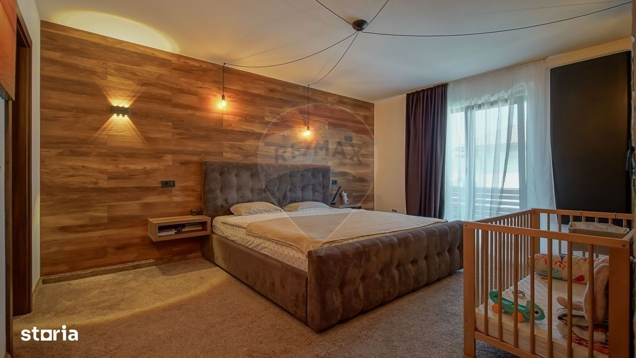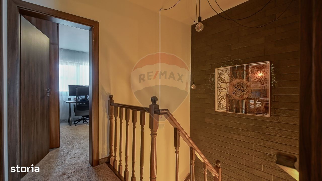 Bună ziua, sunt Zoltan Fejer consultant imobiliar în cadrul biroului Re/max Central și doresc să vă prezint spre vânzare o proprietate deosebită, situată în orașul Gimbav cu acces rapid din și către municipiul Brașov. O zonă de case noi, frumos aranjate ca pe o machetă la o prezentare a unui viitor proiect imobiliar. Nu este un proiect, ci un cartier elegant, amenajat primitor cu vecini faini și gospodari. Poate din poze toate casele par identice, dar nu și cea pe care doresc să o prezint. Atenția la detaliu dar și la dotări face ca această proprietate să iasă în evidență. Terenul este unul generos de 429 mp din care aproximativ 200 mp sunt amenajați cu gazon cu sistem de irigație. Pavajul în jurul casei, accesul auto cu poartă automatizată către carport și zona de terasă completează descrierea exterioară. Casa, construită în anul 2018 are un regim de înălțime parter și etaj, o suprafața utilă de 120 mp la care se adaugă suprafața totală a celor 3 terase. Este gândită să ofere confort și utilitate, fiecare spațiu, colțișor având rostul ei. La parter regăsim camera de zi de 37,7 mp utili care acomodează cu succes un superb și funcțional șemineu, bucătăria de 12 mp mobilată și echipată cu toate electrocasnicele necesare dar și un mic spațiu de depozitare și baia de serviciu cu duș. Total 63 mp utili. La etaj, cei 57 mp utili sunt “împărțiți” între cele două dormitorare matrimoniale cu băi separate și un dressing, dressing care tot un dormitor a fost, sau va fi, dacă veți dori. Podeaua este “îmbrăcată” cu mochetă, câțiva pereți cu parchet triplu stratificat, ies în evidență și caloriferele verticale, designul în sine fiind unul captivant. Avem toate utilitățile, gaz, canalizare, apă, curent/branșament trifazic, și panouri fotovoltaice de 12,45kw, invertor de 15kw și baterii de 15kw achiziționate anul acesta. Vă rog să parcurgeți cele 19 imagini din anunț, cu siguranță vor răspunde de la sine multor întrebări. Detalii suplimentare cu siguranță am, vă rog să mă contactați cu încredere! Tel: