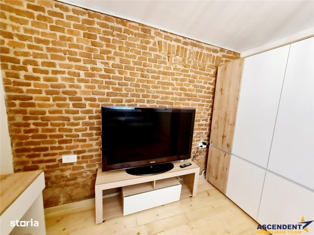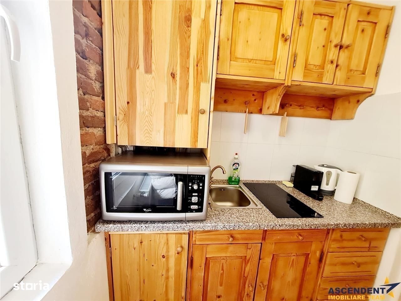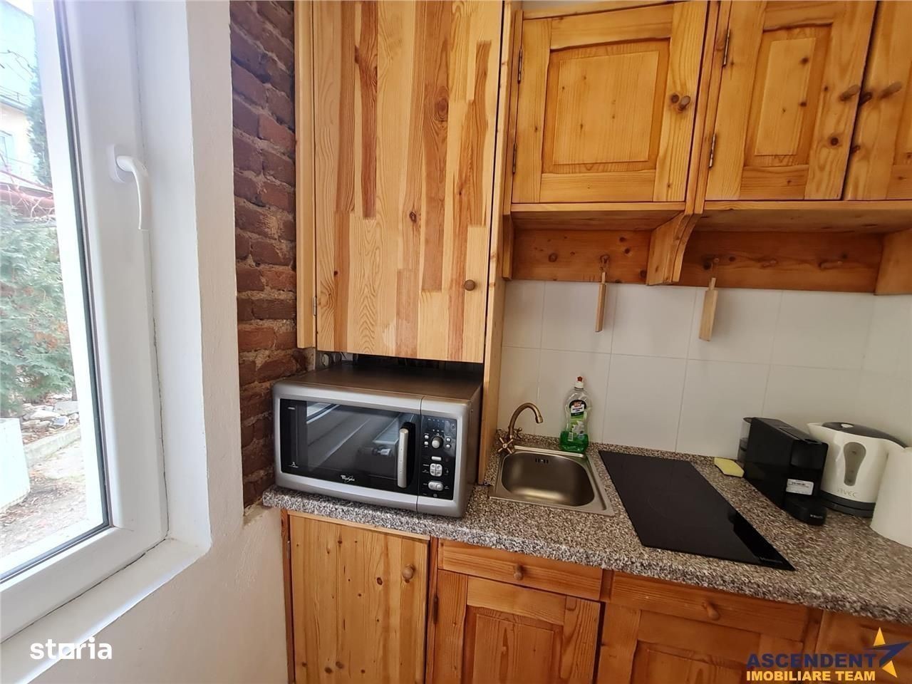 Comision cumparator: 2% + TVA, din valoarea de tranzactionare. Ascendent Imobiliare va prezinta un apartament pozitionat excelent in zona centrala a orasului Brasov. Proprietatea complet renovată are o nota vintage, data de designul de interior, astfel incat se armonizeaza perfect cu cladirile istorice ale centrului Brasov. Cu o structura semidecomandata, avem urmatoarea configuratie: - living cu zona de dinning, hol, dormitor matrimonial, bucatarie micuta complet echipata, baie cu cada Este o proprietate cocheta, pe un nivel inalt de parter, care poate fi preluata imediat pe segmentul investitional sau in care va puteti muta rapid fara sa necesite renovari. Rezidenta cu sistem de alarma pe senzori. Curtea este comuna, dar extrem de generoasa si spatioasa. Beneficiati de loc de parcare în curtea interioara. Are posibilitatea de extindere mansarda. Proprietatea se preda complet mobilata si utilta. Accesul este facil catre toate punctele de interes, statie RAT in proximitate, la 5 minute distanta de centrul istoric. Forma de plata: achizitie cu plata cash (prin transfer bancar) Consultant specializat pe oferta: doamna Gilda Georgescu Tel Whapp