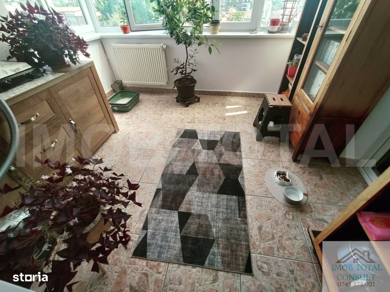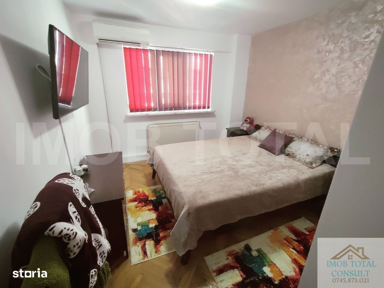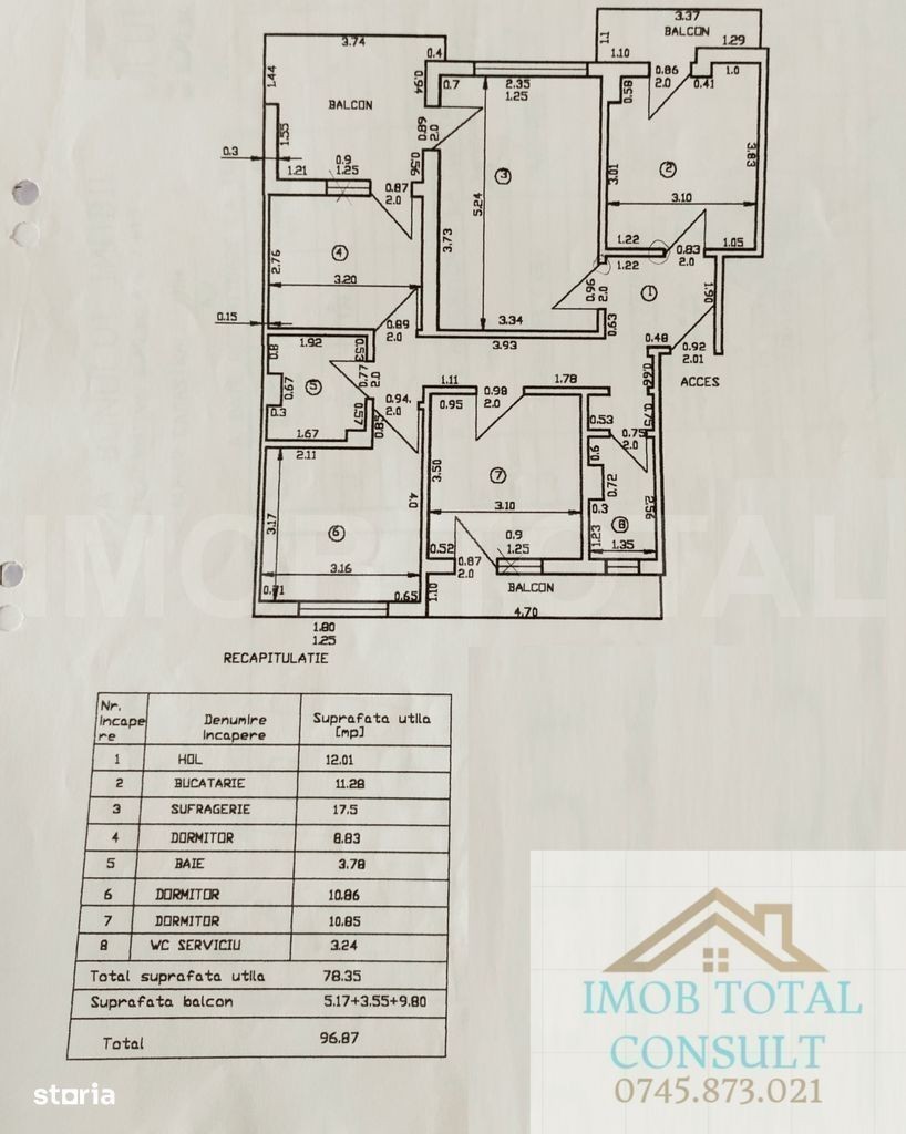 Agentia imobiliara Imob Total propune spre vanzare apartament 4 camere,Central Pitesti, B-dul IC Bratianu, an constructie 1984, etaj 3/7, confort 1 decomandat, suprafata 96.87 mp, 78,35 mp fara balcoane, termopan integral, 3 balcoane inchise in termopan, 2 bai spatiose (cu cada), centrala termica, complet finisat, gresie si faianta in baie si bucatarie, gresie pe hol, parchet in camere. apartamentul se vinde partial mobilat, termen de eliberare 3 luni de la semnarea actelor.