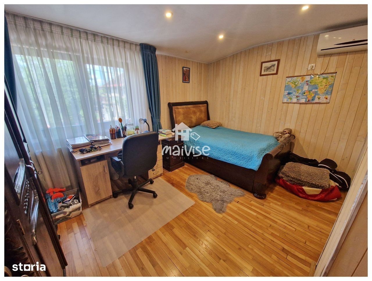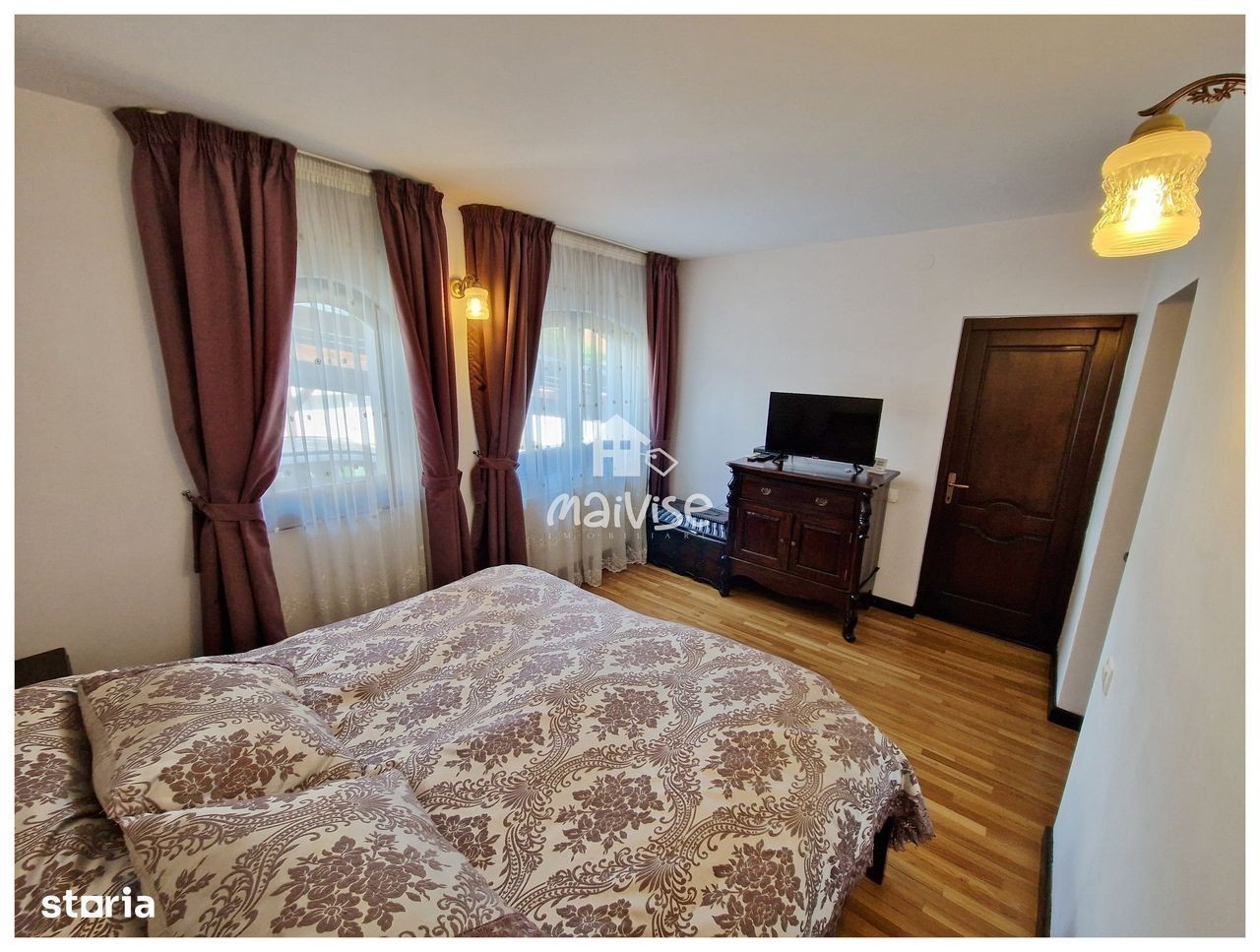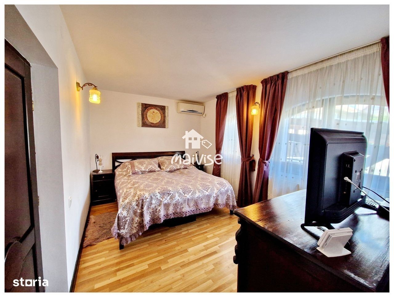 Maivise Imob va propune in vederea achizitionarii o proprietate deosebita construita in anul 2008 renovata integral in 2019, avand o suprafata construita de 182 mp, un regim de inaltime P+M, pe o suprafata de teren de 670 mp. Locuinta este compusa din : - doua corpuri de casa independente - o sala de fitness - o piscina Proprietatea prezentata se situeaza in Brasov, zona Craiter, zona linistita, trafic auto limitat, dispune de acces facil catre centrul orasului, in proximitatea sa regasim scoli, gradinite, magazine comerciale, transport in comun. Corp principal - regim de inaltime P+M cu o suprafata utila de 180 mp, parterul dispune de hol de intrare spatios, living cu loc de luat masa, bucatarie, dormitor matrimonial cu dressing si baie proprie, grup sanitar cat si o terasa superba transformata intr-o zona de relaxare, avand un design special din mobilier din lemn de stejar indonezian. Parter- incalzire in pardoseala, AC in zona de living, dormitorul matrimonial- parchet din lemn de salcam, grupurile sanitare- aerisire naturala, termosemineu in living La mansarda regasim cele doua dormitoare fiecare dispunand de baie proprie, birou, doua terase spatioase cat si acces la podul spatios cu zona de depozitare. Mansarda- incalzire calorifere, grupuri sanitare- aerisire naturala, dormitoare- parchet din lemn de salcam, AC in dormitoare. Casa de oaspeti ( corp secundar), SU -63mp, este compusa din hol de acces, bucatarie, living, dormitor matrimonial si baie cu cabina de dus. Curtea detine front stradal de 13 m, poarta electrica, loc de parcare acoperit pentru doua masini, sala fitness ( 15 mp ), piscina-acoperita, padoc caine, zona de barbeque. Subsol - pivnita si camera tehnica. Disponibilitate la vizionari.