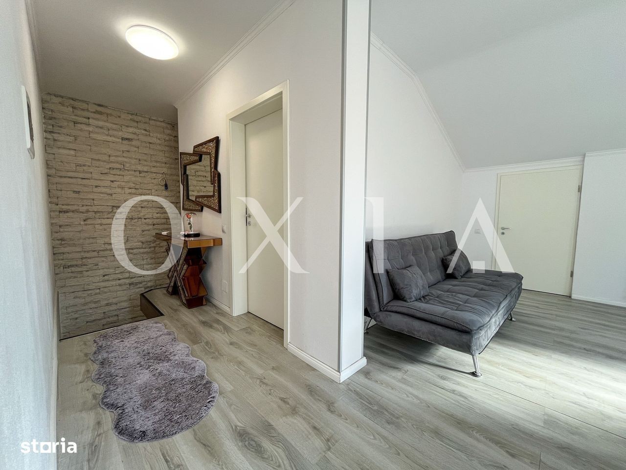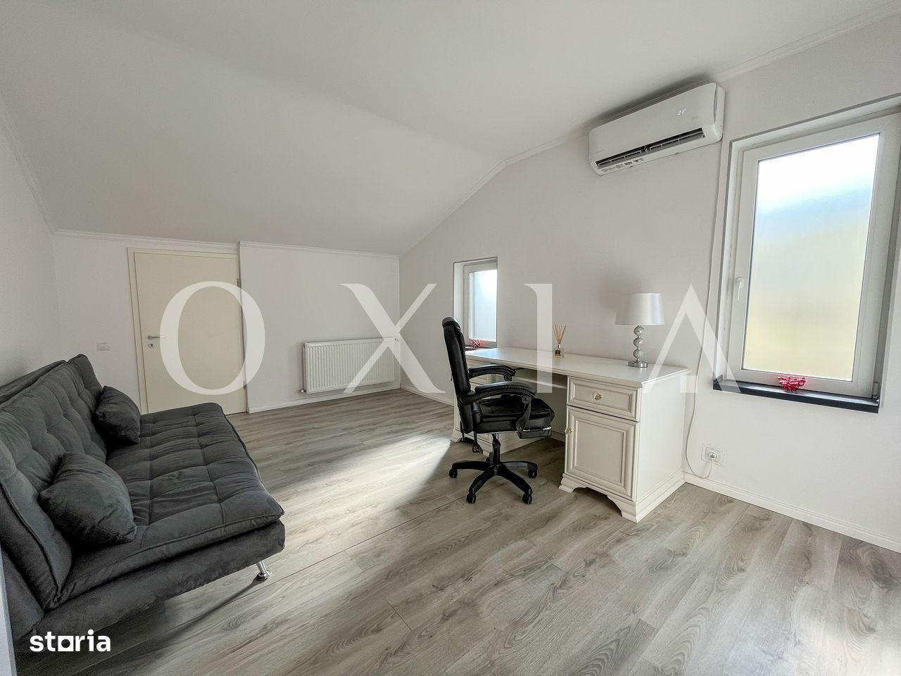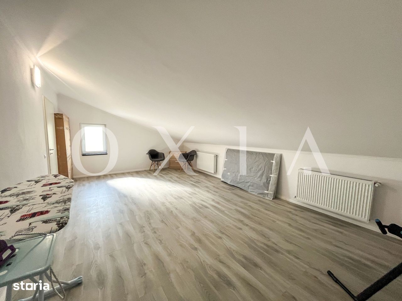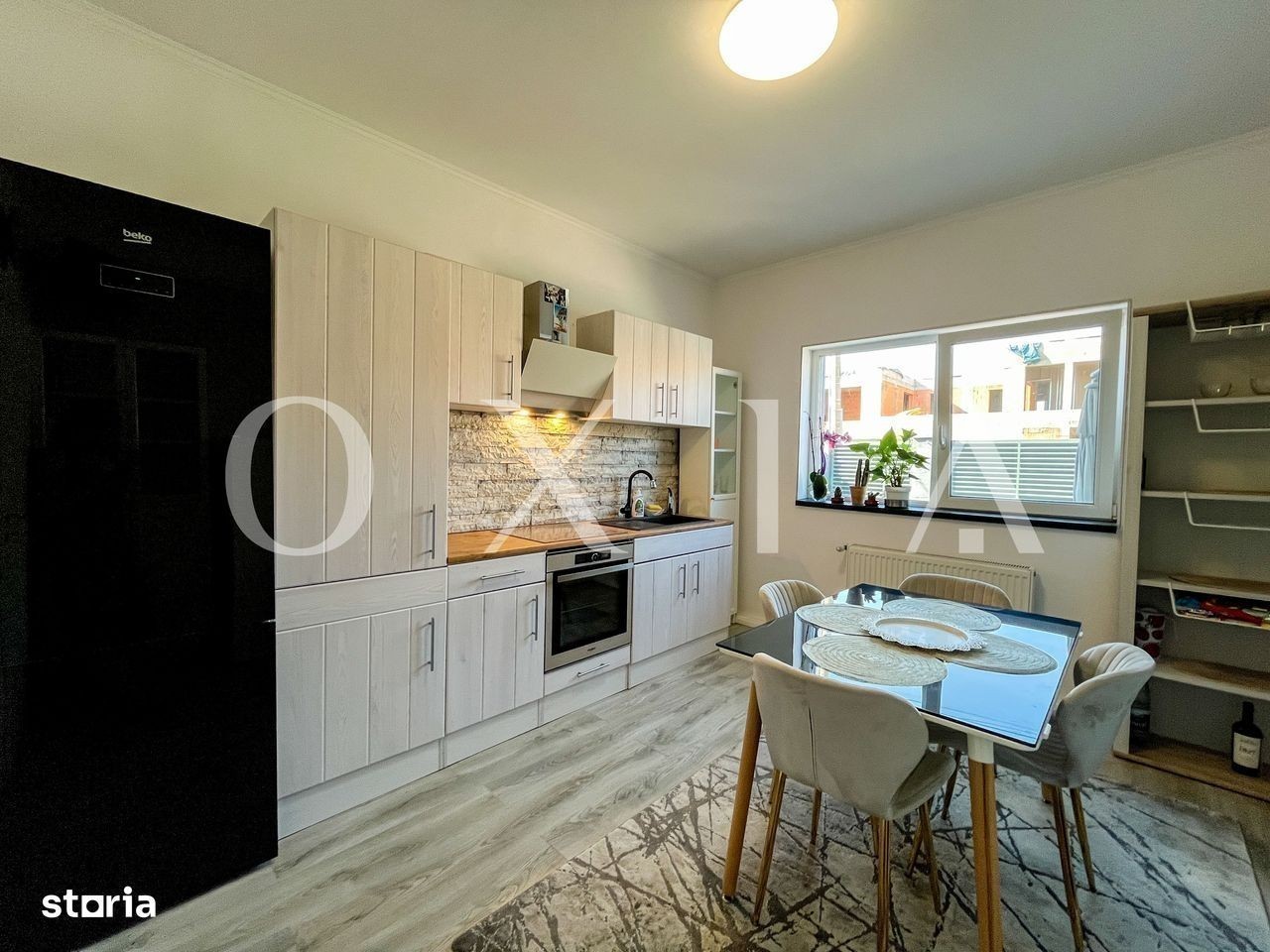 OXIA prezinta spre vanzare casa P+E situata, in Dumbravita, zona - Lac, cu suprafata terenului de 370 mp, suprafata utila de aproximativ 120 MP + 30 MP terasa acoperita, compartimentata astfel: PARTER: Hol acces Bucatarie inchisa Baie doata cu cada si geam Living Dormitor Terasa cu acces din living ETAJ: Hol Dressing Birou Dormitor Imobilul este construit din caramida, izolat cu polistiren si acoperit cu tigla, finalizat in anul 2019. Beneficiaza de amenjari moderne: usa intrare PVC, ferestre PVC cu geam termopan, placi de gresie/faianta, vopsea lavabila, parchet laminat, etc. Confortul termic este asigurat prin intermediul centralei proprii pe gaz cu incalzire prin calorifere si prin intermediul sistemului de climatizare. Proprietatea se vinde mobilata si utilata conform pozelor de prezentare. Dispune de toate utilitatile si drumul de acces este asfaltat. PRET: 169 000 Euro + Comsionul Agentiei. SERVICII OXIA Echipa noastra dedicata ofera consultanta juridica si financiara pe tot parcursul tranzactiei, asigurand un proces simplu si transparent. CONTACT Pentru mai multe detalii sau pentru stabilirea unei vizionari, va rugam sa ne contactati la numarul de telefon