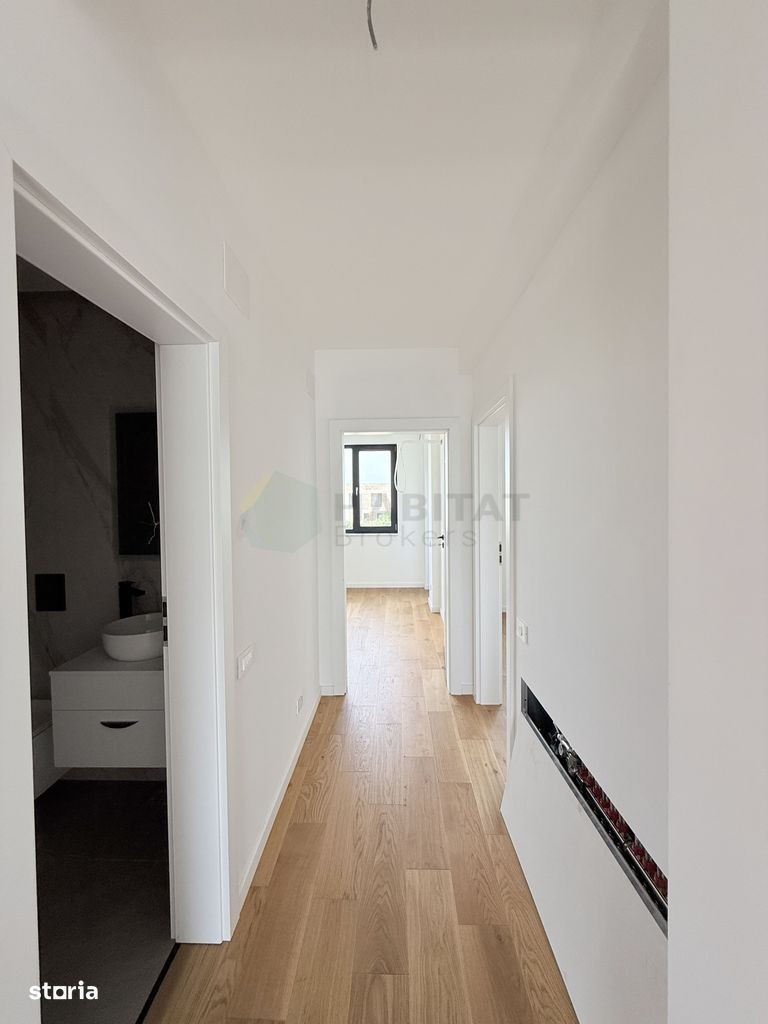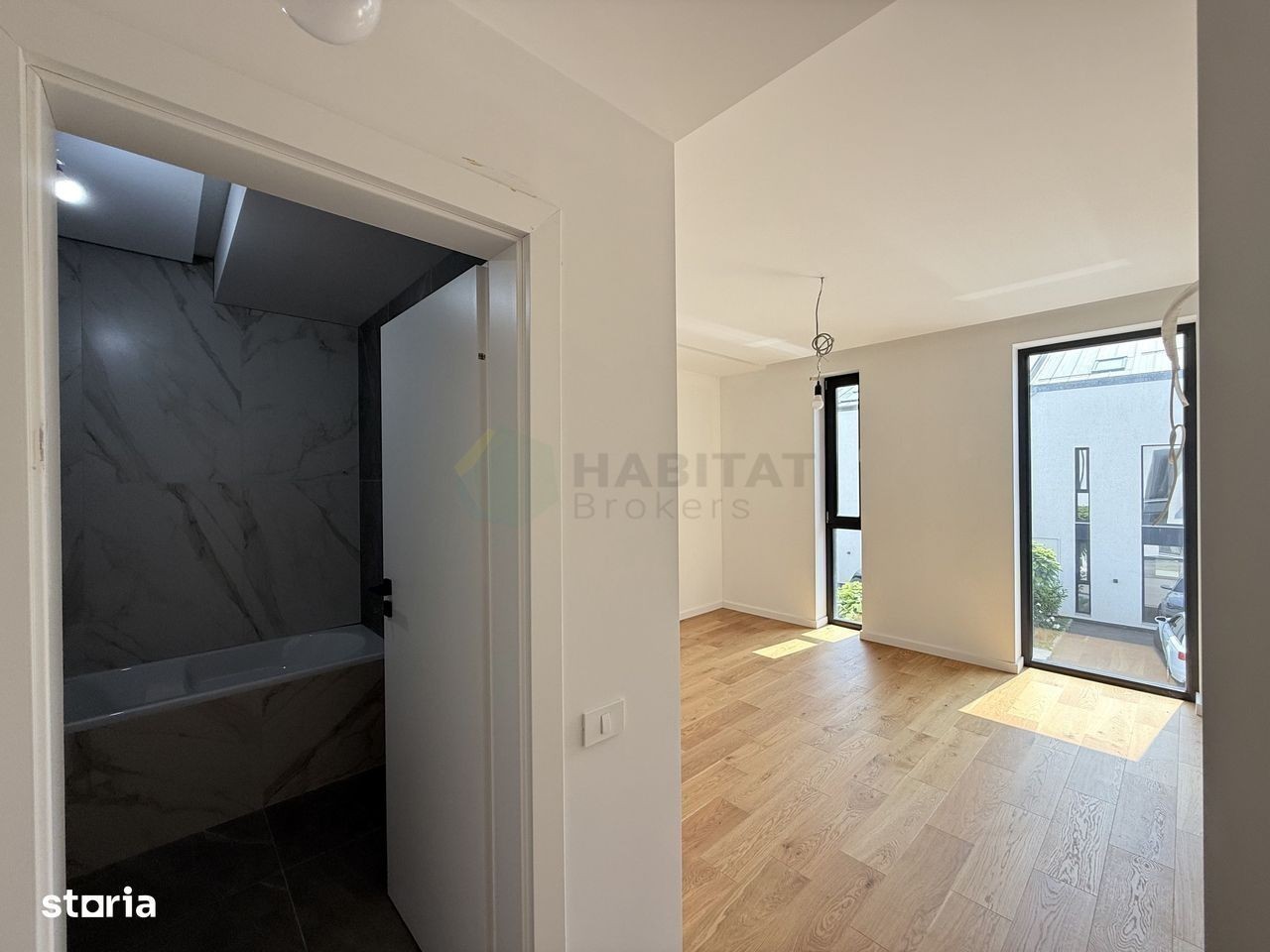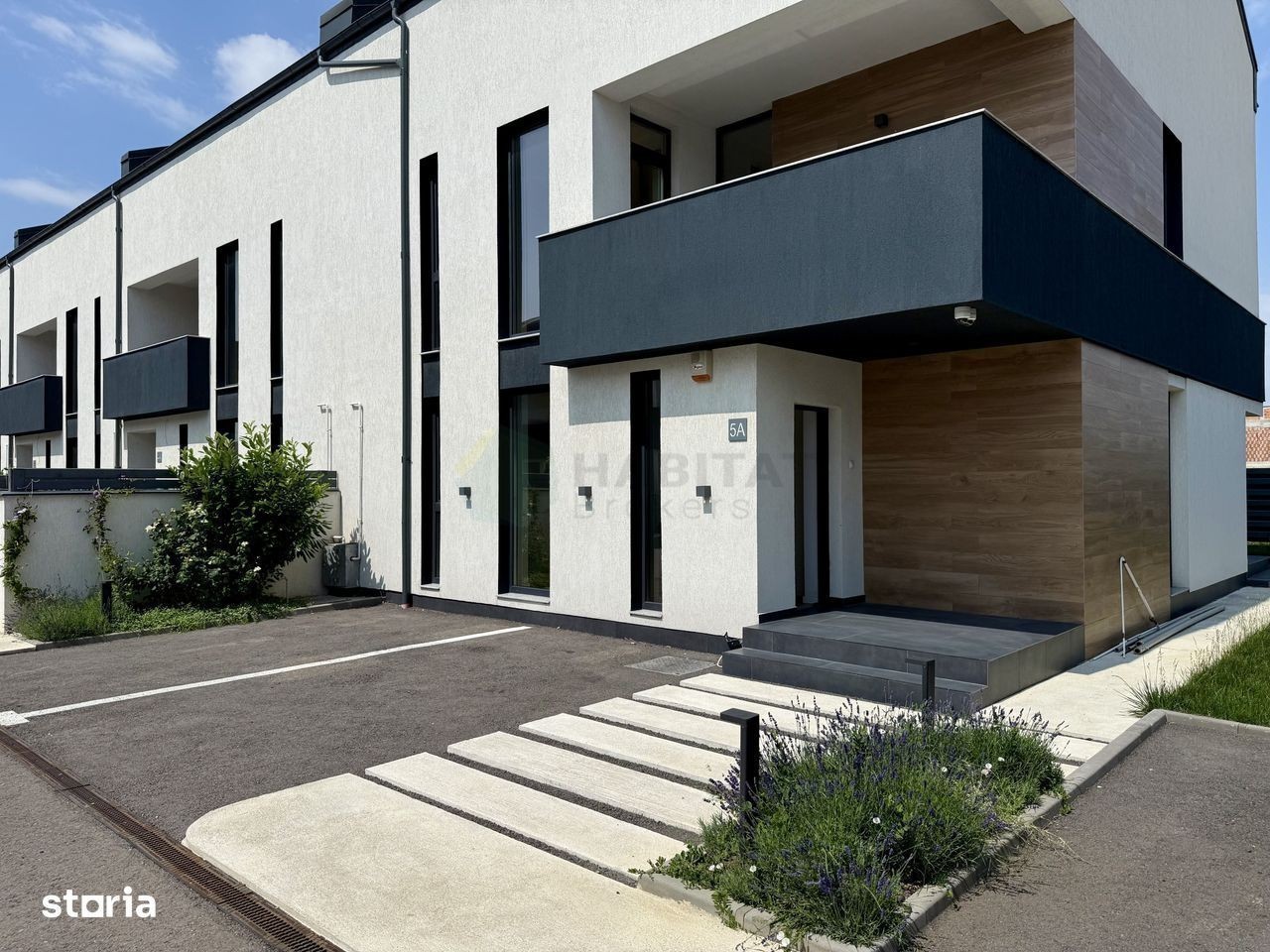 Vă prezentăm spre vânzare o vilă elegantă, situată într-un complex rezidențial închis, format din 10 vile tip townhouse, amplasate simetric de-a lungul unei alei private. Proprietatea este poziționata pe mijloc și beneficiaza de o curte de 40 mp și o compartimentare excelentă, adaptată stilului de viață contemporan. Detalii tehnice: Suprafață utilă: 190 mp Regim de înălțime: Parter + Etaj + Mansardă Număr camere: 5 2 locuri de parcare în fața proprietății Curte privată: 40 mp Compartimentare: Parter: Living spațios cu zonă de dining și bucătărie open space Acces direct către curtea proprie Baie de serviciu Cameră tehnică Hol generos Etaj 1: Dormitor matrimonial cu baie proprie, dressing și balcon 2 dormitoare secundare Baie comună Mansardă: Spațiu open space de 67 mp (ideal pentru birou, zonă de recreere sau compartimentare suplimentară) Baie completă Finisaje și dotări de calitate superioară: Parchet triplustratificat din lemn masiv (14 mm) Uși interioare Porta Doors cu design modern Scări interioare cu trepte din lemn natural și balustrade din sticlă (parter și mansardă) Încălzire în pardoseală pentru un confort termic optim Gresie și faianță Delta Studio Tâmplărie PVC Salamander cu geam tripan - Blue Evolution 92 Vila este finalizată și disponibilă pentru mutare imediată. Ideală pentru familii care își doresc confort, intimitate și siguranță într-un cadru bine organizat și armonios.