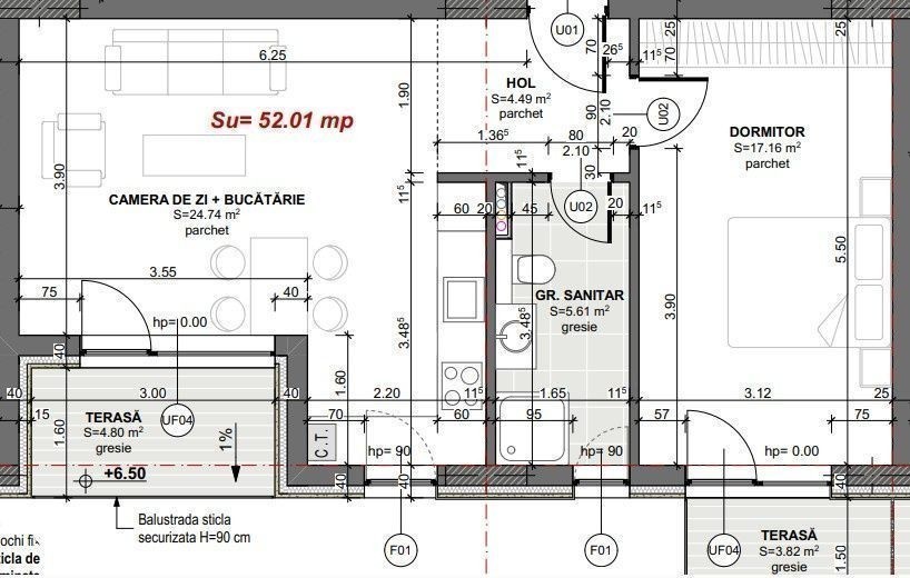 2 camere, 52 mp, 2 balcoane - partial finisat, perfect de amenajat