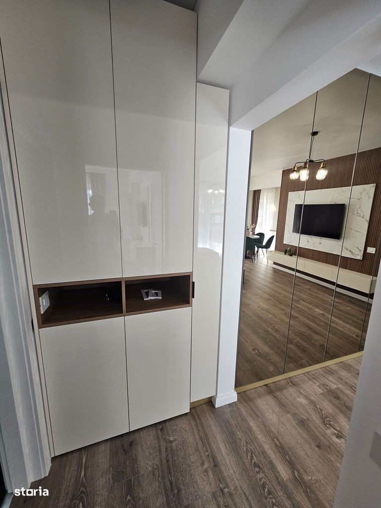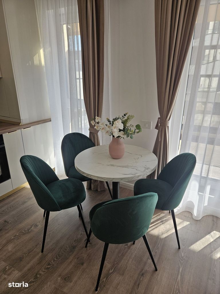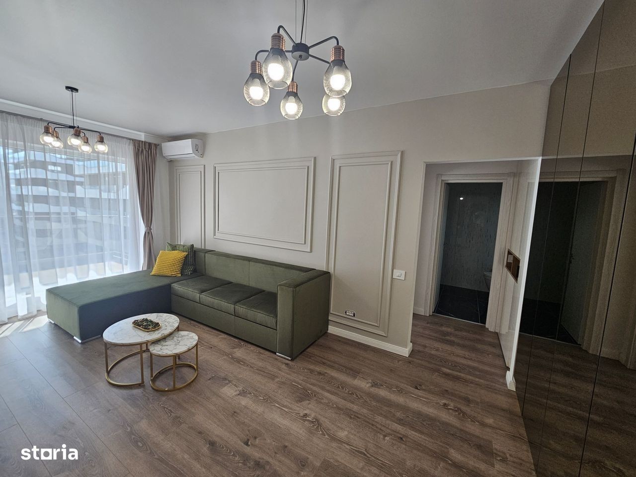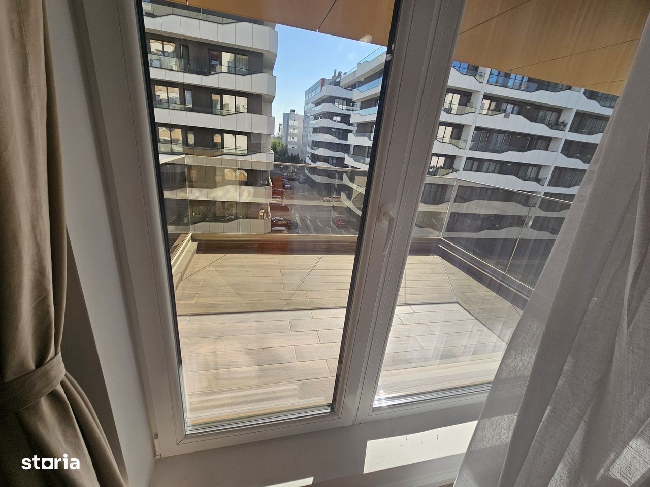Vă oferim spre inchiriere un apartament elegant cu două camere, terasa si loc de parcare situat la etajul 2 in Ansamblul Rezidential Ambiance Residence, un complex rezidential premium, localizat in zona de Nord a capitalei, langa Porsche Pipera - Rond OMV Pipera. Apartamentul este complet mobilat si utilat, cu atenție la detalii, incluzând mobilier modern și dotări de calitate. Încălzirea este prin pardoseala și alaturi de aerul condiționat asigură confort termic pe tot parcursul anului. *Zona de zi este in suprafata de 19 mp utili, este bine luminată și spațioasă, decorată cu nuanțe calde și detalii moderne. Mobilierul confortabil și amenajarea inteligentă a spațiului permit crearea unui mediu prietenos și relaxant. Canapeaua este extensibila,dressing pe tot peretele mascat de usi cu oglinzi. Accesul catre terasa de 12 mp se face de aici. *Bucătăria este partial deschisa, complet echipată cu electrocasnice de ultima generatie (plita, cuptor, hota, frigider incorporat), oferindu-vă posibilitatea de a pregăti mese gustoase într-un mediu plăcut. *Holul este conceput cu spatiu sezut si spatiu depozitare *Dormitorul este mobilat cu un pat confortabil 160 x 200 cm și spațiu de depozitare foarte generos pentru haine și alte obiecte personale, comoda Tv +Tv si masuta de machiaj *Baie este prevazuta cu cada Debara -masina de spalat rufe plus extra spatiu depozitare. Amplasat într-o zonă convenabilă,la intersectia dintre cartierele Aviatiei, Herastrau si Pipera, aveți acces facil la mijloacele de transport în comun, supermarketuri și alte facilități esențiale. Această oportunitate de închiriere reprezintă combinația ideală între confort și accesibilitate. Pentru a programa o vizionare,detalii suplimentare sau un film complet cu turul apartamentului, va rugam sa ne contactati