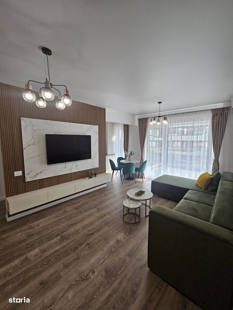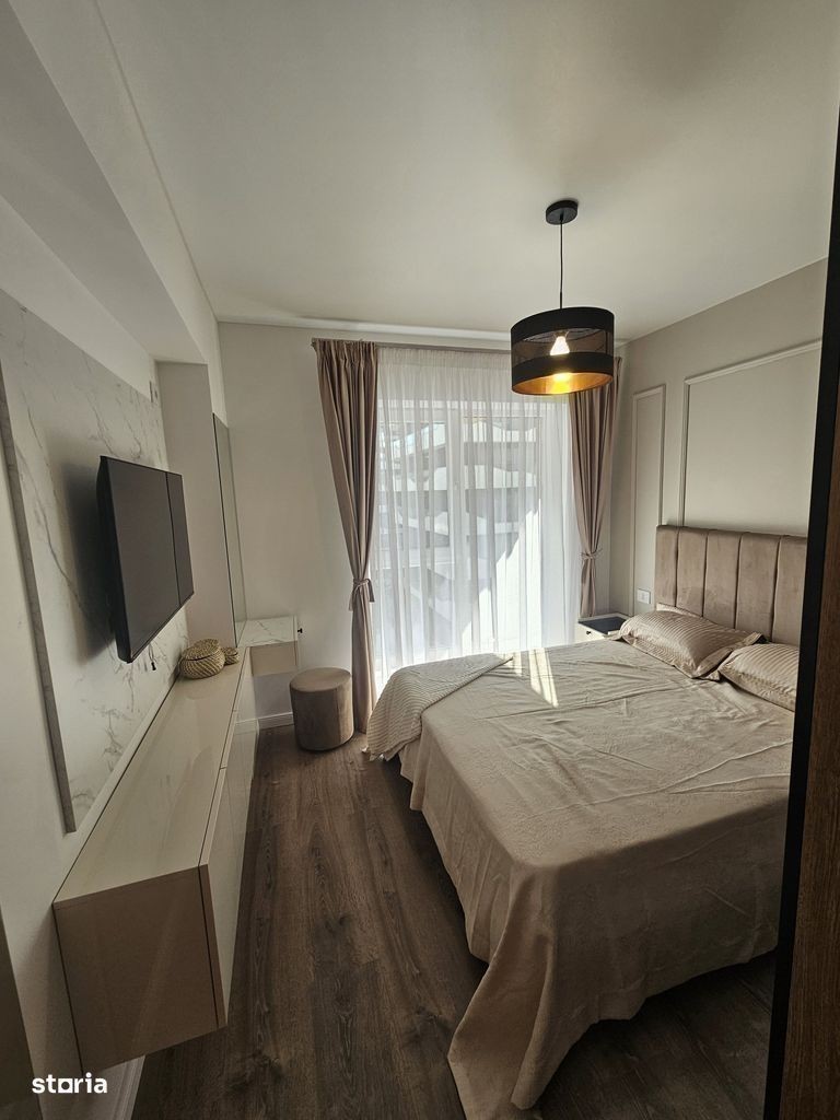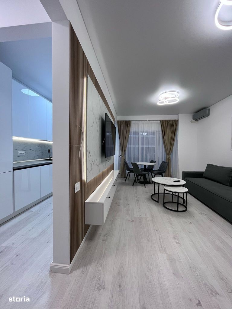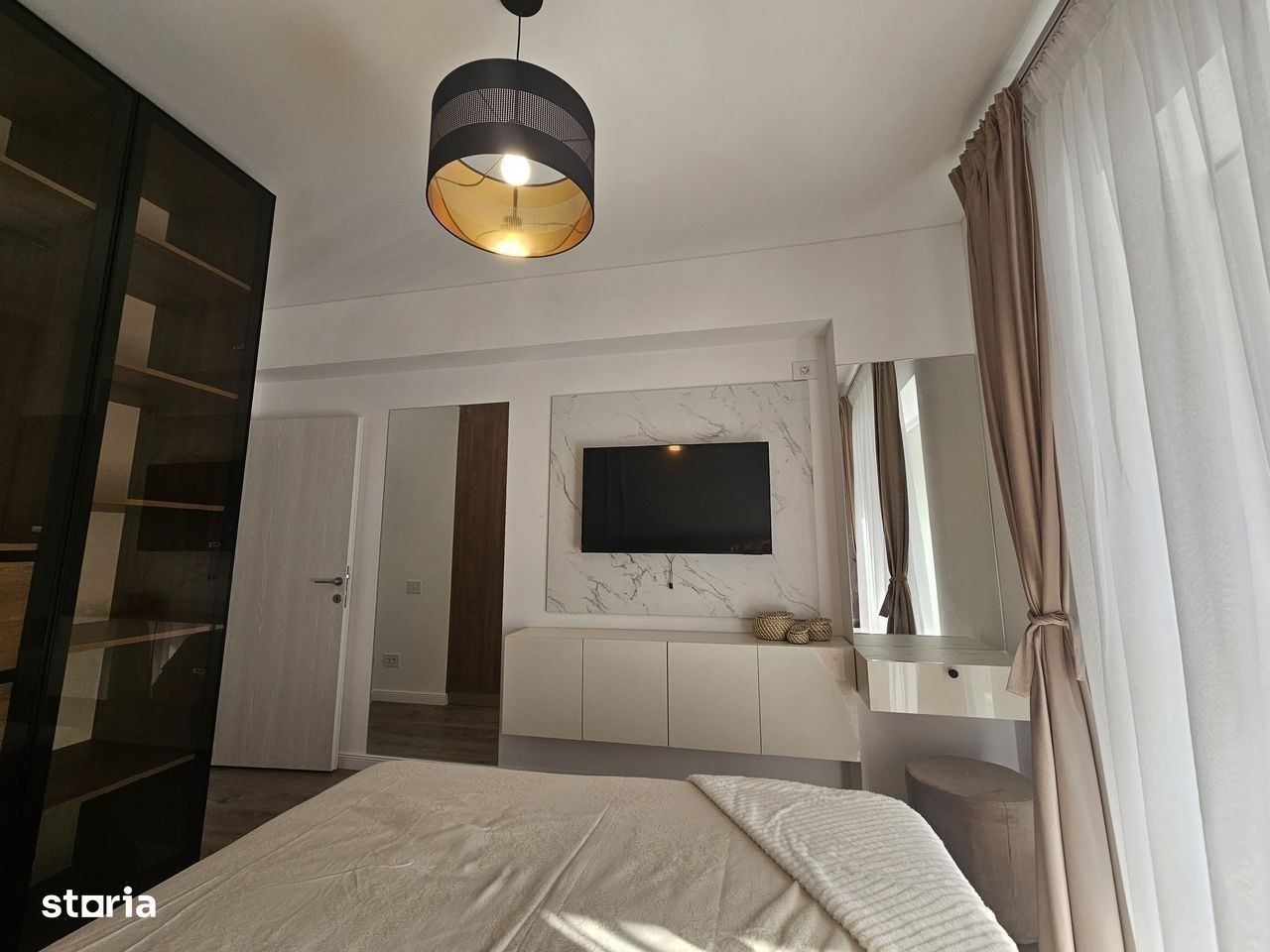 Vă oferim spre inchiriere un apartament elegant cu două camere, terasa si loc de parcare situat la etajul 2 in Ansamblul Rezidential Ambiance Residence, un complex rezidential premium, localizat in zona de Nord a capitalei, langa Porsche Pipera - Rond OMV Pipera. Apartamentul este complet mobilat si utilat, cu atenție la detalii, incluzând mobilier modern și dotări de calitate. Încălzirea este prin pardoseala și alaturi de aerul condiționat asigură confort termic pe tot parcursul anului. *Zona de zi este in suprafata de 19 mp utili, este bine luminată și spațioasă, decorată cu nuanțe calde și detalii moderne. Mobilierul confortabil și amenajarea inteligentă a spațiului permit crearea unui mediu prietenos și relaxant. Canapeaua este extensibila,dressing pe tot peretele mascat de usi cu oglinzi. Accesul catre terasa de 12 mp se face de aici. *Bucătăria este partial deschisa, complet echipată cu electrocasnice de ultima generatie (plita, cuptor, hota, frigider incorporat), oferindu-vă posibilitatea de a pregăti mese gustoase într-un mediu plăcut. *Holul este conceput cu spatiu sezut si spatiu depozitare *Dormitorul este mobilat cu un pat confortabil 160 x 200 cm și spațiu de depozitare foarte generos pentru haine și alte obiecte personale, comoda Tv +Tv si masuta de machiaj *Baie este prevazuta cu cada Debara -masina de spalat rufe plus extra spatiu depozitare. Amplasat într-o zonă convenabilă,la intersectia dintre cartierele Aviatiei, Herastrau si Pipera, aveți acces facil la mijloacele de transport în comun, supermarketuri și alte facilități esențiale. Această oportunitate de închiriere reprezintă combinația ideală între confort și accesibilitate. Pentru a programa o vizionare,detalii suplimentare sau un film complet cu turul apartamentului, va rugam sa ne contactati