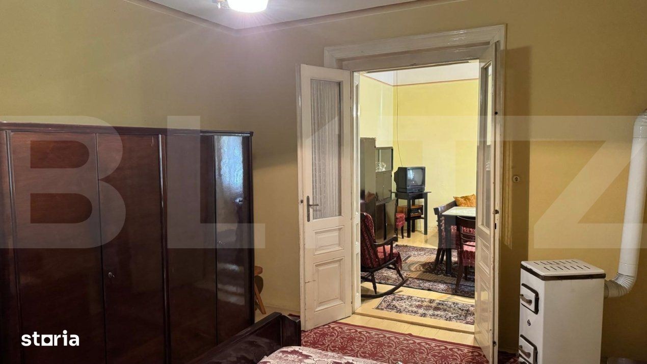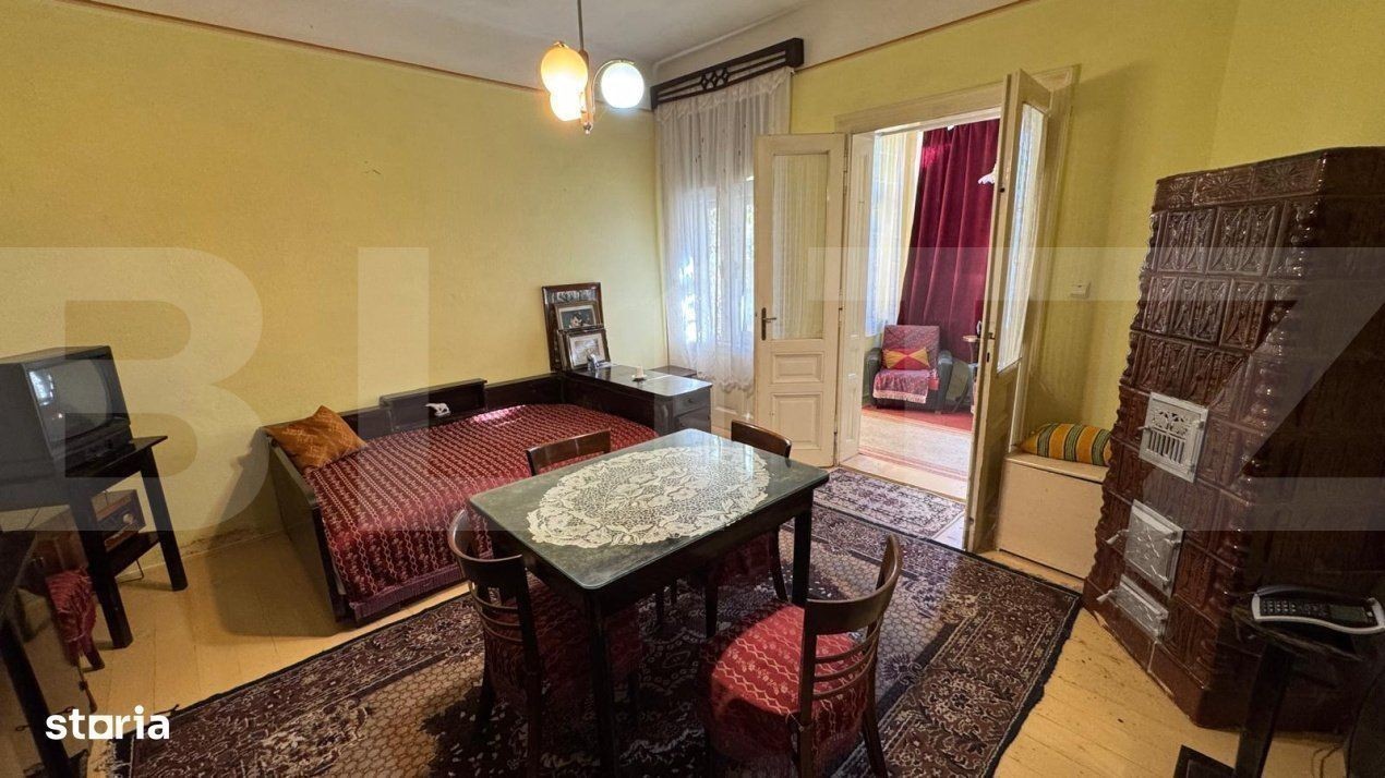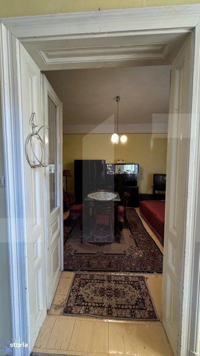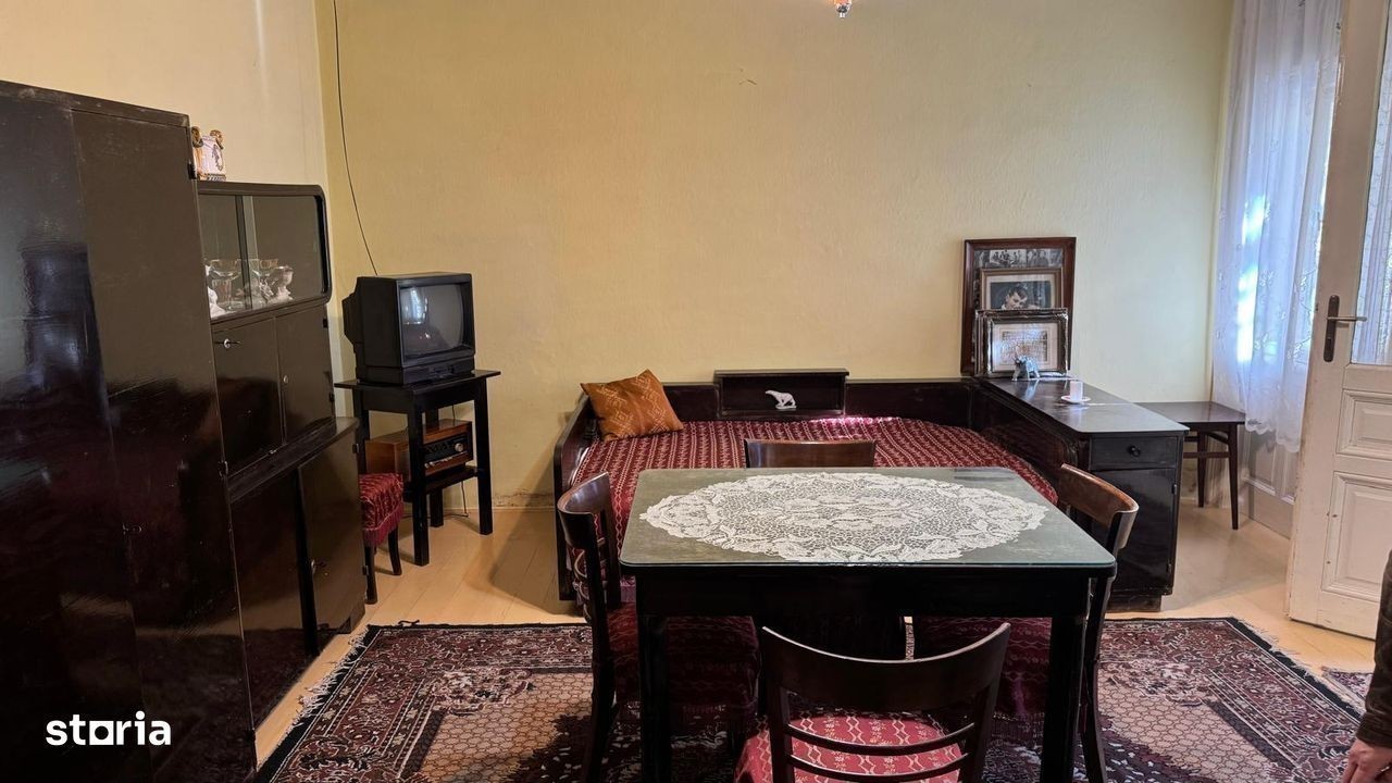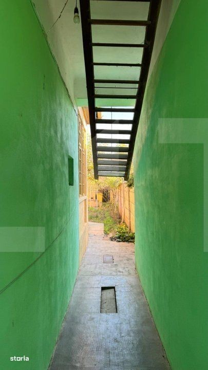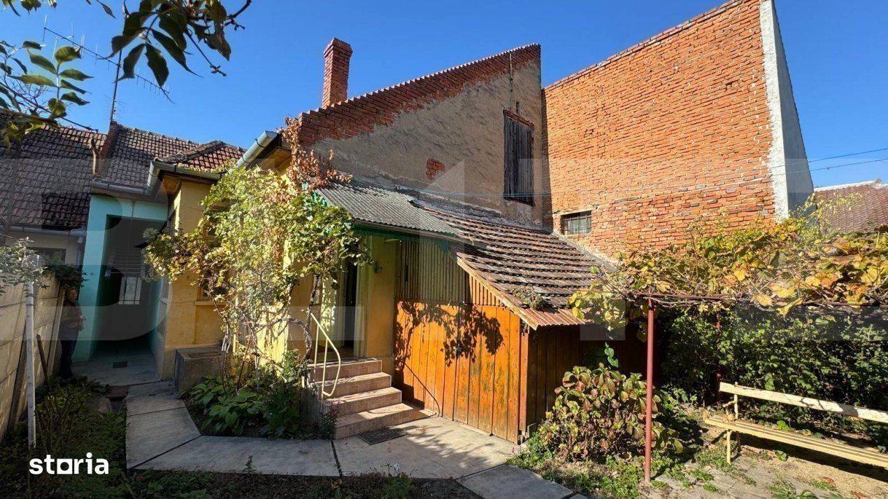 Casa este situată în centrul localității Pâncota (T. Vladimirescu). Direct pe strada principală din Pâncota, atrage atenția o clădire vopsită într-o culoare verde prietenoasă. O zonă comercială pe partea stângă și o ușă frumoasă pe partea dreaptă. Intrând prin ușa de intrare cu detalii de fier, ajungi într-un hol îngust, care duce către grădina mică. Aceasta leagă clădirea principală (aproximativ 75 mp) de clădirea anexa (aproximativ 40 mp). O terasă mică te invită să petreci ore plăcute vara. Viile oferă, în această perioadă, temperaturi plăcute și umbră. O o scară te conduce la ușa principală a casei. Fereastra largă a holului și a camerei de primire (10 mp) însoțește următoarele încăperi și face ca casa să arate prietenoasă și primitoare. ⁃ Sufragerie: 20,50 mp ⁃ Dormitor: 17,60 mp ⁃ Baie: 6,40 mp ⁃ Bucătărie: 6,80 mp ⁃ Cămară: 2,70 mp ⁃ Hol / Cameră de primire: 10,00 mp ⁃ Magazin: 11,05 mp Clădirea, construită în 1924, este din piatră și cărămidă. Există o racordare la apă în baie. O conexiune la gaz poate fi realizată, desigur, în cadrul lucrărilor de renovare. Casa se vinde complet mobilată. Partea din spate a proprietății constă, după cum am menționat, din clădirea anexa, care este construită din lut, și o altă zonă utilă, care a fost folosită până acum pentru creșterea animalelor și cultivarea de fructe și legume. În funcție de preferințe, se poate construi o casă nouă pentru a obține mai mult spațiu locuibil. Proprietatea este absolut ideală pentru o familie mică și oferă mult potențial pentru dezvoltarea dorințelor și proiectelor proprii, prin renovarea clădirii principale și o reconfigurare (sau construcție nouă) a clădirii din spate. Suprafața totală este de 824 de metri pătrați. Locația centrală în Pâncota, este, de asemenea, un mare avantaj pentru o afacere - cu magazinul deja existent. Vă rugăm să ne contactați pentru a stabili o vizionare, în cazul unui interes serios. Vă mulțumim!