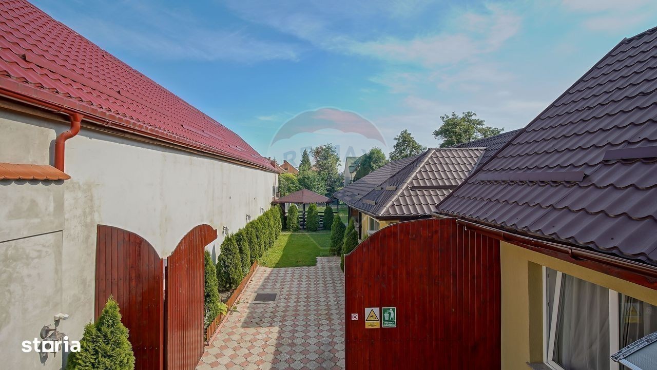 Casă de vânzare - investiție ideală sau locuință multifamilială - Strada Aurel Vlaicu, Brașov Sunt Marius Gainariu si vă propun spre vânzare o proprietate deosebită situată în Brașov, pe strada Aurel Vlaicu - o zonă accesibilă, liniștită și cu potențial atât rezidențial, cât și investițional. Imobilul este amplasat pe un teren generos de 825 mp, cu o suprafață utilă de 200 mp, și este compartimentat funcțional în 3 apartamente cu 2 camere și 2 garsoniere, fiind ideal pentru familii multiple, închiriere pe termen lung sau regim hotelier. Proprietatea a funcționat cu succes în regim hotelier pe Booking, fiind pregătită să genereze venituri imediate. Caracteristici ale proprietății: -Construcție solidă din cărămidă, izolată cu polistiren, acoperiș o parte cu țiglă, o parte tablă -Camerele orientate spre stradă sunt dotate cu doua randuri de geamuri tripan cu tâmplărie PVC și jaluzele pentru confort termic si fonic sporit -Curte pavată în partea din față, cu acces auto, garaj mare și foișor pentru relaxare -Restul curții este amenajat cu pomi fructiferi și arbuști ornamentali, oferind un cadru verde și intim -Două beciuri, ideale pentru depozitare -Racord complet la toate utilitățile: apă, gaz, electricitate, canalizare Proprietatea dispune de două contoare de gaz, două contoare electrice și două centrale termice, oferind independență energetică pentru fiecare unitate locativă Această casă este o oportunitate excelentă pentru cei care caută o locuință spațioasă, dar și pentru investitori care vor să continue activitatea în regim hotelier sau să închirieze pe termen lung. Pentru detalii suplimentare și programări pentru vizionare, nu ezitați să ne contactați!