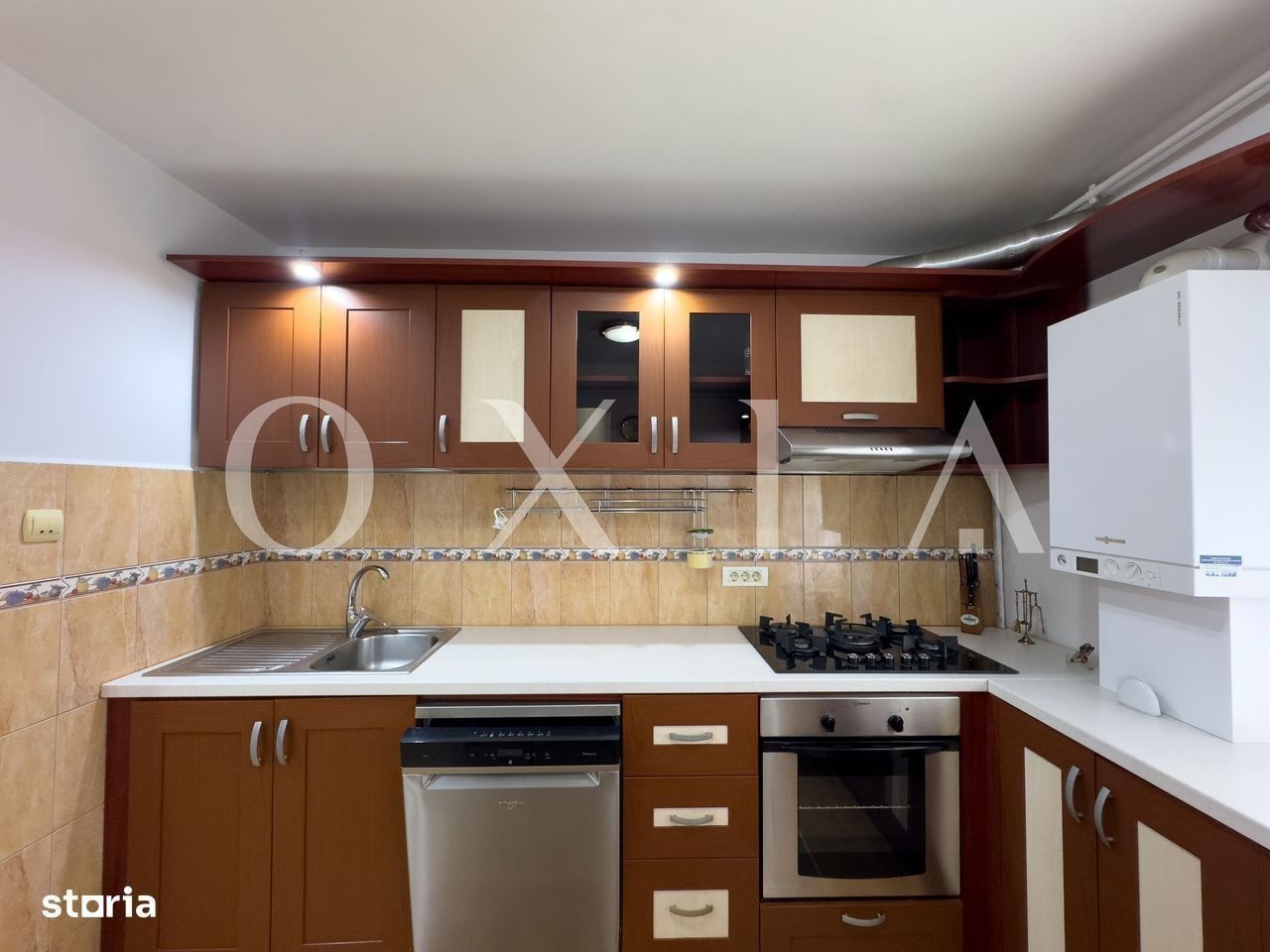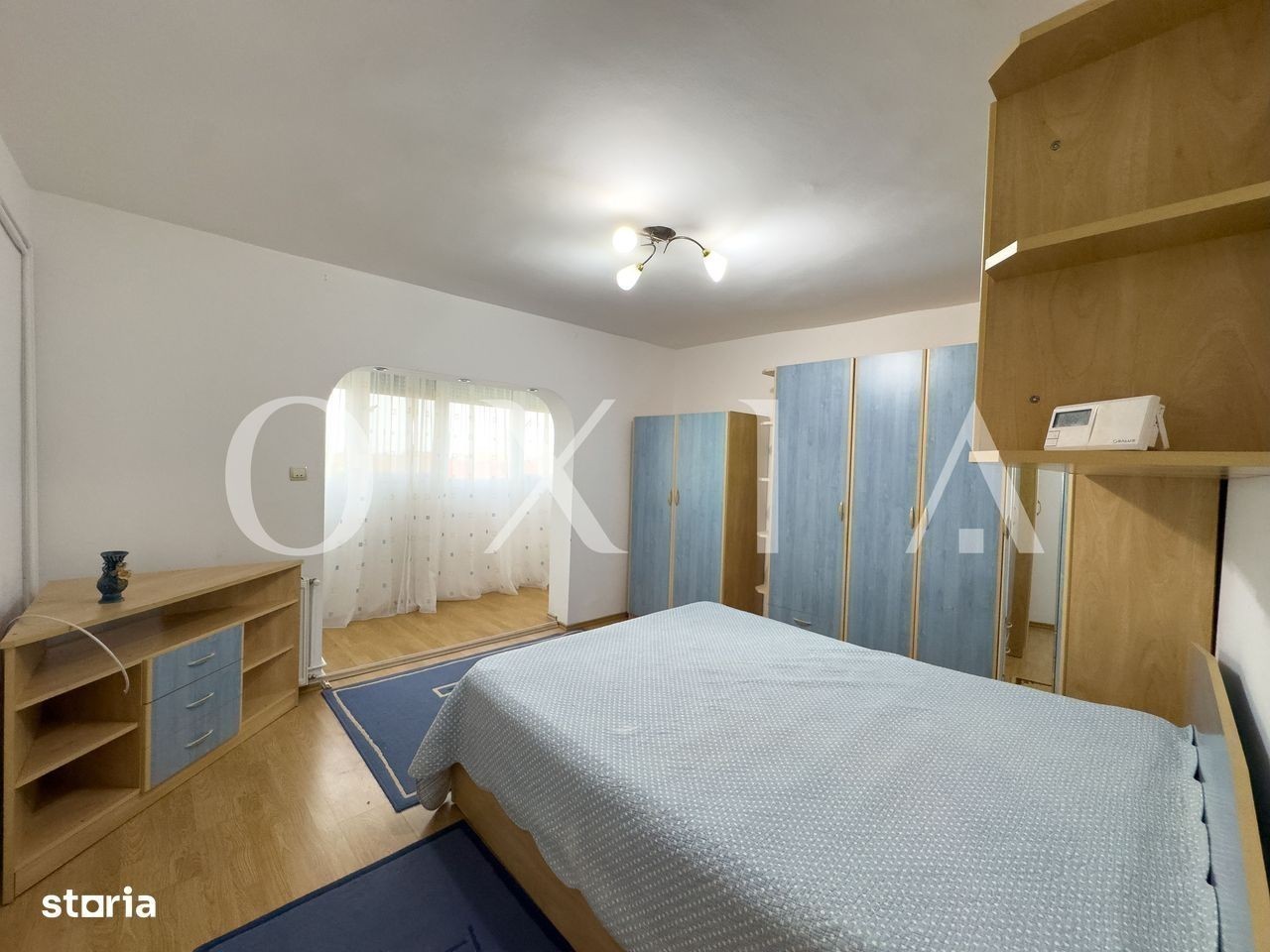 OXIA ofera spre inchiriere un apartament spatios cu 3 camere, situat in Timisoara, zona Calea Sagului, vis-a-vis de Shopping City. Proprietatea se afla la etajul 6 al unui imobil cu regim de inaltime P+8E si este complet decomandata, avand urmatoarea compartimentare: hol de acces bucatarie generoasa living luminos hol de tranzit dormitor principal cu balcon dormitor secundar baie cu cada si sistem de ventilatie WC de serviciu Apartamentul dispune de multiple imbunatatiri: usa metalica la intrare, usi interioare din lemn, ferestre PVC cu geam termopan, rulouri exterioare din PVC, placi ceramice (gresie/faianta), parchet laminat si vopsea lavabila. Confortul termic este asigurat de centrala proprie pe gaz, cu incalzire prin calorifere, si de sistemul de climatizare. Se inchiriaza complet mobilat si utilat: combina frigorifica, masina de spalat vase, plita pe gaz, cuptor electric, hota, masina de spalat rufe, aspirator, fier de calcat, vesela si alte electrocasnice necesare. Imobilul este izolat termic si dispune de lift, parcare publica in apropiere si acces rapid la un parc pentru copii. Pret: 450 euro/luna + garantie + comision agentie. Pentru informatii suplimentare sau pentru programarea unei vizionari, ne puteti contacta la numarul de telefon