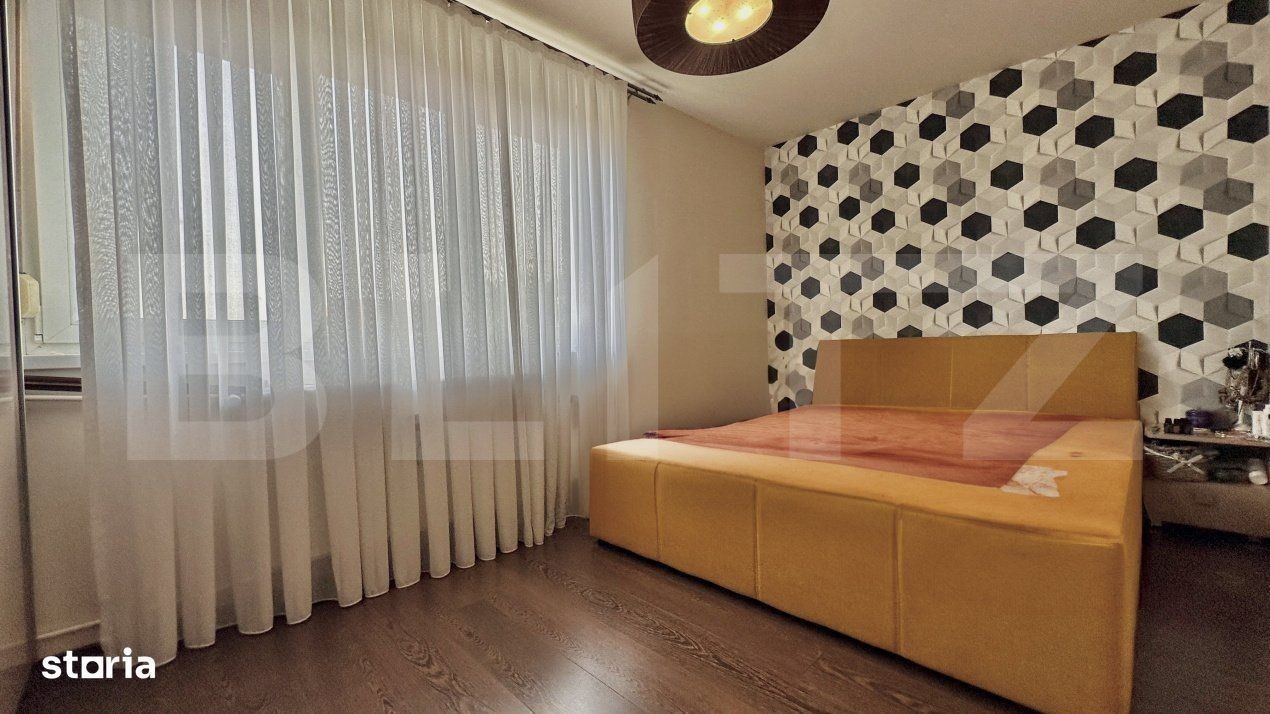 Blitz vă oferă spre vânzare acest apartament cu 4 camere. Modern și familial, apartamentul e ideal pentru o familie cu 3-4 membri. 3 dormitoare, un living generos, o baie, o debara și un hol deschis către bucătărie. Se vinde mobilat și utilat. La 4m de mers pe jos până la stația de tramvai, în proximitate avem centrul orașului, dar și un centru comercial pt relaxare, acesta aflându-se la 15m de mers pe jos. Vă aștept cu drag la vizionare!