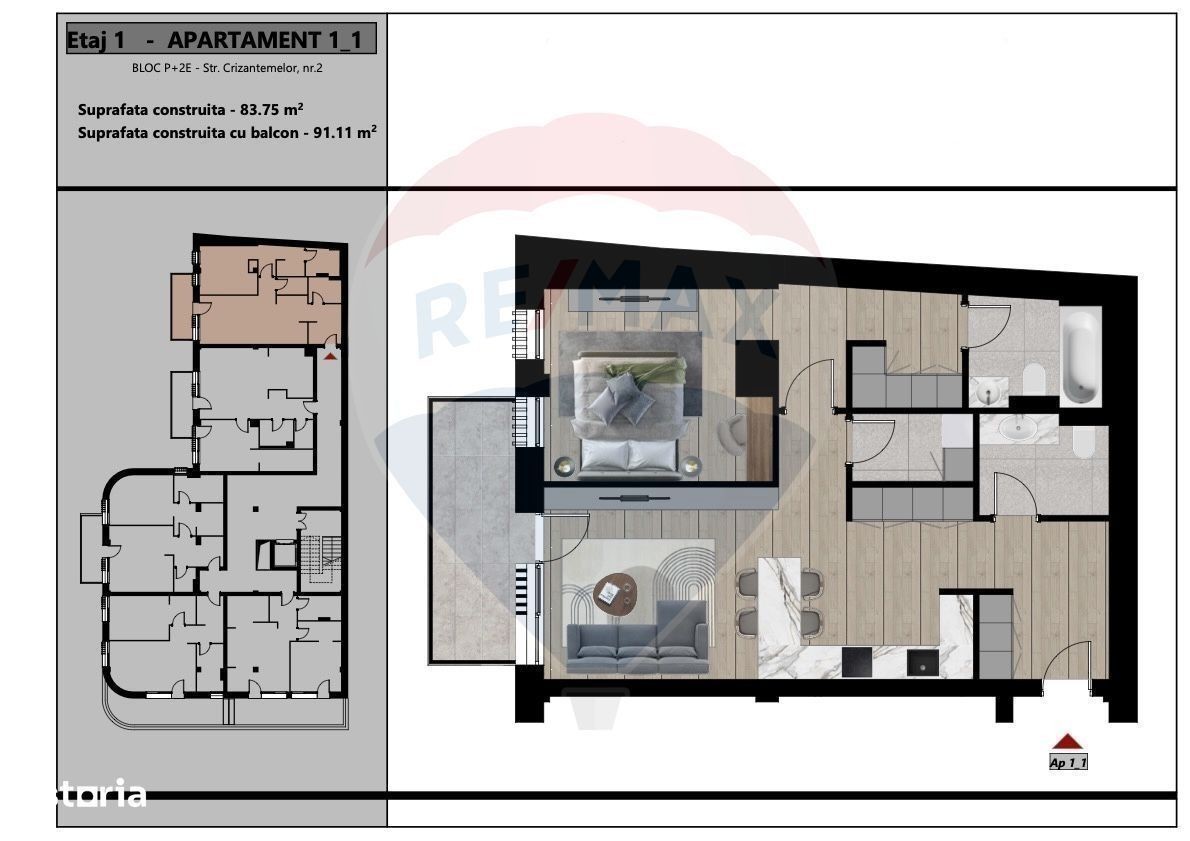 Nu se percepe comision de la cumpărător! Vă propunem spre achiziție apartamentul 101 cu 2 camere, amplasat într-un bloc boutique nou, cu doar 10 apartamente, construit cu materiale sustenabile și proiectat pentru eficiențǎ energeticǎ maximǎ. Apartamentul este situat la etajul 1 cu lift al clădirii care dispune de lift și are o suprafațǎ utilǎ de 72 mpu. Compartimentarea apartamentului: -1 Living cu bucătărie open space, -1 dormitor - 2 băi -1 terasǎ de 7mp. Ansamblul dispune de parcări subterane, care pot fi achiziționate contracost la prețul de 20 000 euro + TVA. Blocul este echipat cu o centrală termică proprie la subsol, asigurând încălzirea eficientă a întregului imobil. Acest lucru se traduce prin costuri reduse de întreținere pentru locatari, oferindu-ți un avantaj semnificativ în ceea ce privește cheltuielile lunare. În apropiere se găsește Parcul si Palatul Baroc, Școala Gen. Dacia, Grădinițe, și de asemenea, locația oferă și excelente legături cu mijloacele de transport în comun. În momentul de fațǎ imobilul se aflǎ în construcție, termenul de predare fiind în 2026. Pentru mai multe informații și pentru a programa o vizionare, nu ezitați să ne contactați!