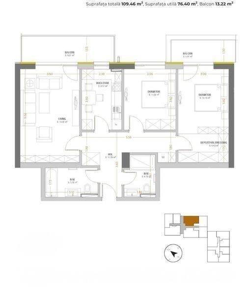 Apartament 3 camere, 2 bai, 2 balcoane, boxa,loc parcare-Urban Plaza