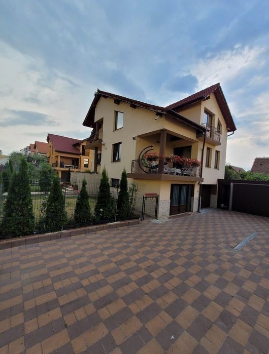Agenția imobiliară GRN TOP INVEST vă oferă la inchiriat o casa eleganta si spatioasa, construita cu materiale premium și gândit pentru un stil de viață confortabil și practic, o casa SMART. Finalizată în 2010, această locuință impresionează prin designul modern, compartimentarea eficientă și dotările de calitate superioară, fiind pregătită să devină căminul ideal pentru noii proprietari. Spațiu generos, compartimentare inteligentă Cu o suprafață de aproximativ 300 mp, dintre care utilă de 250 mp, la care se adaugă doua terase generoase de 13 mp, un balcon și o curte proprie, casa este dispusă pe două niveluri plus demisol cu garaj, oferind atât spații luminoase pentru locuit, cât și zone dedicate depozitării. La parter, veți găsi: -Un hol primitor care face tranziția către zona de zi; -Un living spațios si o zona de dinning perfect pentru momente de relaxare; -O bucătărie, complet mobilată și utilată modern; -O baie de serviciu, cu geam pentru aerisire; -Un spațiu inteligent de depozitare -Birou cu baie proprie -Terasa generoasa. Pentru un confort sporit, parterul beneficiază de încălzire în pardoseală. Etajul este gândit pentru odihnă și intimitate, fiind compartimentat astfel: •Trei dormitoare luminoase, dintre care doua sunt cu iesire pe un balcon si o terasa; •Doua bai complet utilate ce dispune de cada si dus; •Dressig. Avantaje și beneficii - dispune de toate utilitatile: apa, gaz, curent, canalizare, cablu internet prin fibra optica, centrala termica prin condensare. - Structură solidă și eficiență energetică: Construită din cărămidă, cu izolație din vată bazaltică, casa asigură protecție termică, izolare fonică și ventilație optimă. - intrare privata, drum privat, iluminat stradal. - casa Smart totul fiind integrat intr-un sistem inteligent, putand fi programate de pe telefon: temperatura in casa, poarta electrica la intrare, garaj cu deschidere electrica și climatizare, senzori de inundație în fiecare baie ai bucatarie. - geamuri termopan de calitate, plase insecte, aer conditionat. - construcție nouă (2010), eficientă energetic - Clasa A. - incălzire în pardoseală. - compartimentare optimă, spații de depozitare generoase. -exista posibilitatea de a parca in curte, astfel chiriasul nu ar intampina probleme in a gasi loc de parcare. -casa este luminoasa si are multe geamuri mari, astfel te poti bucura de multa lumina naturala. -imobilul se inchiriaza exact cum este prezentata in imagini, detine un sistem fotovoltaic care produce 10KW, costuri de intretinere fiind foarte reduse. La exterior, trotuare pavate in jurul casei cat si zona pavata pentru parcare masini, spatii verzi. Această locuință este ideală pentru cei care caută un spațiu modern, confortabil și bine organizat, într-o zonă de case frumos construite, cu acces ușor către toate facilitățile necesare. Pretul de inchiriere al acestei case este de 1690 euro. Vă așteptăm la vizionare! Pentru mai multe detalii si informatii precizati la telefon ca ati vazut oferta cu ID :GRN1143