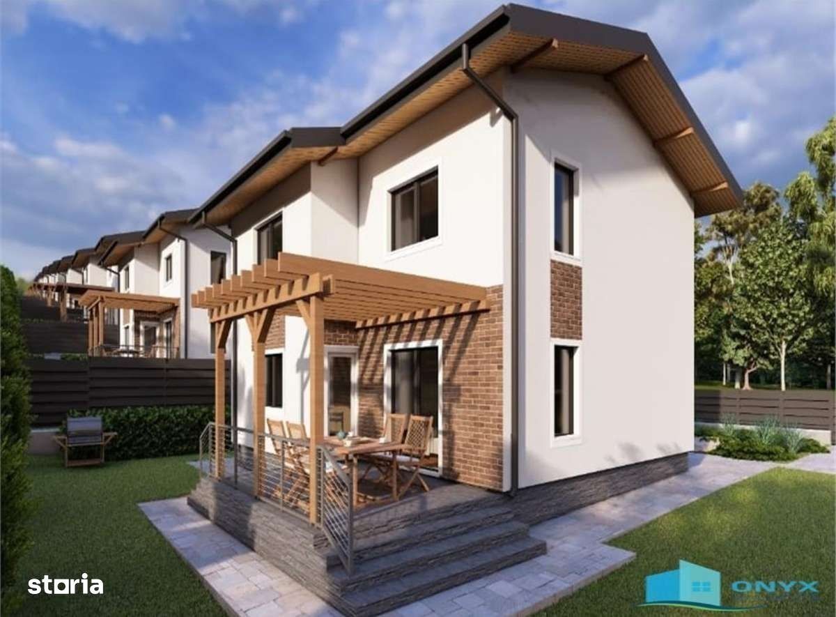În exclusivitate, vă oferim spre vânzare o superbă locuință dintr-un proiect remarcabil situat în localitatea Tomești, la doar 13 km de Iași. Acest complex rezidențial este conceput pentru a oferi confort și eleganță în mijlocul naturii, fiind ideal pentru o viață de familie liniștită. Această casă face parte dintr-un complex de zece case individuale, amplasate strategic la strada principală, ceea ce asigură accesibilitate ușoară cu o stație de autobuz la doar 200 de metri distanță.