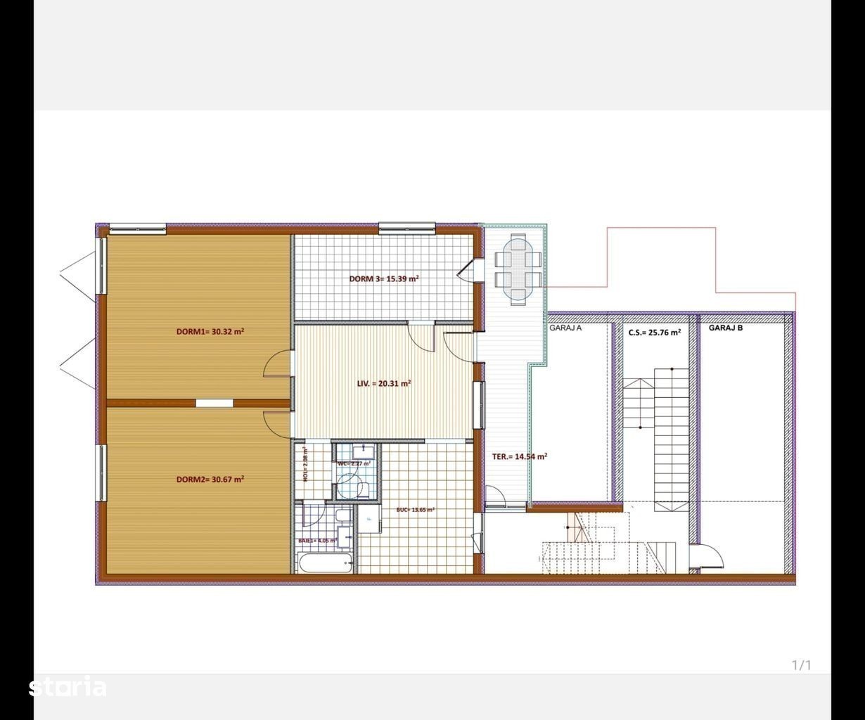 Agentia Imobiliara COV-ALIN, propune la vanzare un apartament cu 4 camere situat pe tot etajul 1 al unei case in Centrul Civic, an construire 1920, doua grupuri sanitare de 2,27 si 4,05 mp, hol 2,08 mp, bucatarie 13,65 mp, 3 dormitoare cu suprafața de 30,32 mp, 30 mp, 15,39 mp, livingroom 20,31 mp, avand suprafata utila totală de 119 mp la care se adauga o terasa luminoasa in suprafata de 14,54 mp. Apartamentul are centrala termica proprie, ferestre cu geam termopan, parchet, avand in proprietate un garaj ( B pe schiță ) si teren 1/2 din 500 mp, indiviziune.