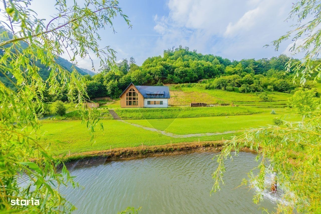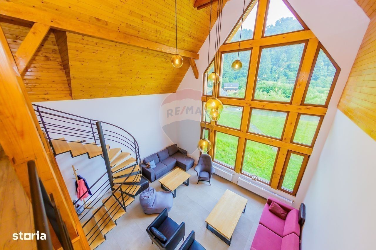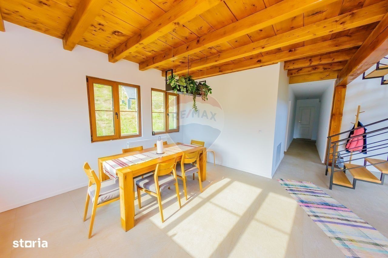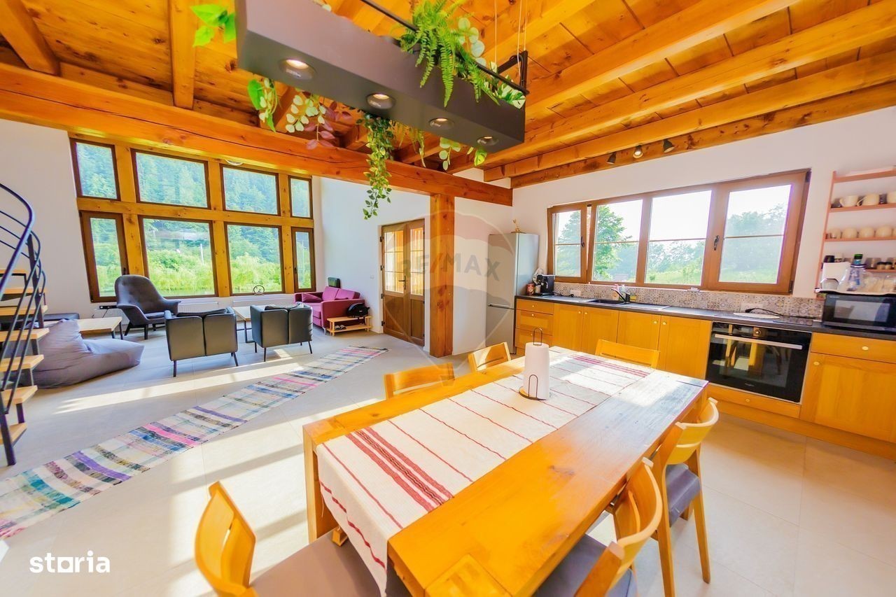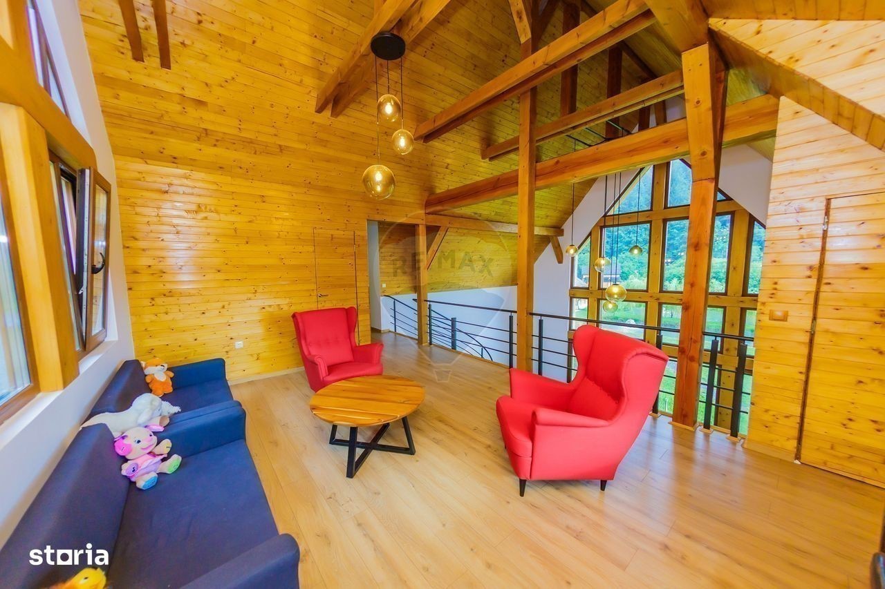 Va invitam sa descoperiti această cabană superbă, nou construită, amplasată într-o zonă de vis, la poalele munților Țibleș, în Grosii Tiblesului. Terenul de 6.370 mp intravilan oferă un cadru de poveste pentru relaxare și petrecerea timpului liber. În curte, te întâmpină două bălți de păstrav, ideal pentru pasionații de pescuit, precum și un foișor, zonă de barbecue și spații speciale de relaxare cu hamace, perfect pentru momente de liniște. Pentru aventură și distracție, zona dispune de tiroliană și leagăne pentru toate vârstele. Cabana spațioasă are 6 dormitoare, dintre care două cu baie proprie, și alte trei băi individuale. Bucătăria este modern mobilată și utilată, iar living-ul generos, cu balcon interior, oferă un spațiu perfect pentru întâlniri și momente de neuitat. La etaj se află un al doilea living, pentru relaxare și convivialitate. Întreaga proprietate este împrejmuită, garantând intimitate și siguranță, într-un cadru natural deosebit. O oportunitate ideală pentru cei care doresc să îmbine confortul cu frumusețea naturii! Nu ratati ocazia de a deveni proprietar al unei bijuterii imobiliare intr-o zona deosebita, unde traditiile si natura se impletesc armonios! Pentru mai multe detalii si o posibila vizionare nu ezitati sa ne contactați. Se accepta si schimb cu apartament în Cluj într-o zona buna. Merita vazuta!
