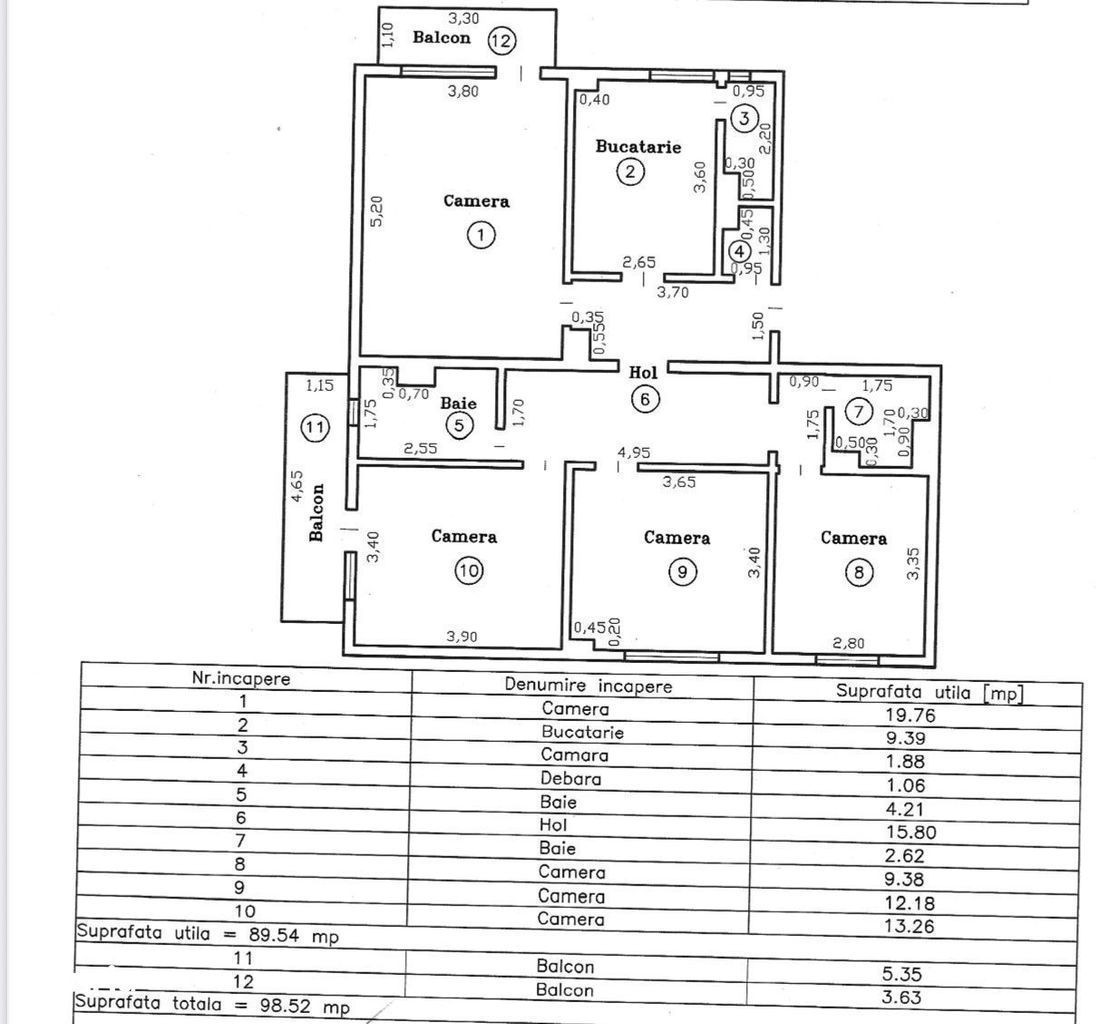 Apartament 4 camere, 2 bai, 2 balcoane,centrala proprie, etajul 2