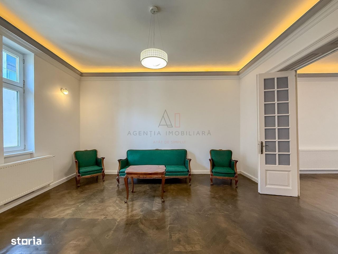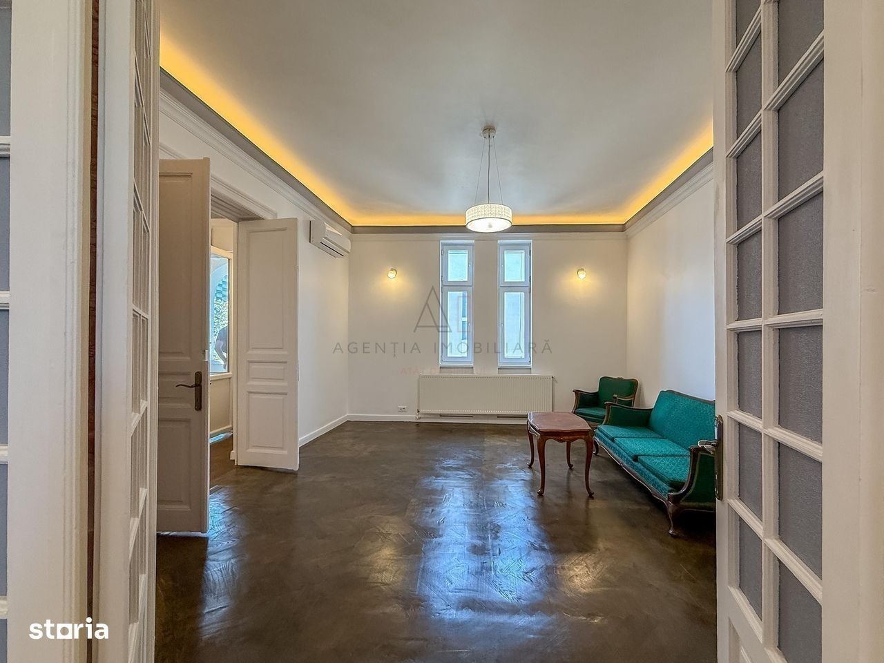 Apartament interbelic cu 3 balcoane pe Calea Dorobanti - 170 mp de stil, istorie si lumina naturala. Un apartament care imbina farmecul autentic al anului 1921 cu confortul anului 2025. Aflat intr-o vila interbelica spectaculoasa, pe Calea Dorobanti nr. 47, acest spatiu complet renovat se ofera spre inchiriere pentru cei care vor mai mult decat niste metri patrati - vor prezenta, poveste si pozitie. Suprafata utila: 140 mp Suprafata totala cu balcoane: 170 mp Etaj: 3 din 3 (cu pod locuit, deasupra) Compartimentare: 5 camere + holuri spatioase 2 bai + 3 balcoane Ce il face special: • Tavane inalte, detalii elegante, luminozitate excelenta prin ferestre mari in fiecare camera • Complet renovat, pastrand elementele originale acolo unde conteaza, dar cu tot ce e nou acolo unde trebuie: instalatii, finisaje, tamplarie, centrala proprie • Ideal pentru birouri premium, cabinet notarial/avocatura, showroom sau chiar o locuinta eleganta pentru expati sau familii urbane Zona? Dorobanti inseamna mai mult decat o adresa buna. Inseamna: • Acces rapid la Piata Romana, Victoriei, metrou si mijloace de transport • Cafenele, restaurante, ambasade, clinici si birouri la fiecare colt • Un vibe urban sofisticat, dar inca discret si cochet BONUS: Se poate discuta instalarea unui lift, in cazul inchirierii pe termen lung. Inchirierea acestui apartament inseamna: • ca ai o imagine care inspira incredere si stil • ca lucrezi sau locuiesti intr-un spatiu cu aer istoric, dar confort modern • ca esti exact unde trebuie sa fii in Bucuresti Disponibil imediat. Video la cerere! Contacteaza-ne si programeaza o vizionare - un spatiu ca acesta nu sta mult liber.