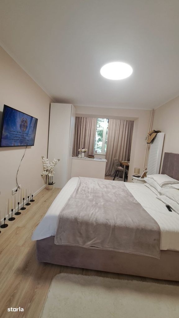 Kronos Imobiliare va propune spre achizitie un apartament cu 2 camere renovat in totalitate, instalatiii termice, sanitare, electrice toate noi, gaze la aragaz si foc separat pt. centrala daca se doreste, incalzire Radet, (costuri pt. caldura foarte mici). deci nu se justifica montare centrala. Apartamentul este foarte bine pozitionat, intrare si vedere din bulevard, cochet, primitor, nu mai necesita investitii si se vinde mobilat ( Ikea) si utilat complet, aer conditionat, electrocasnice noi toate in garantie, ideal ca si investitie sau resedinta permanenta, locuri de parcare in spatele blocului la liber vizibil din apartament.