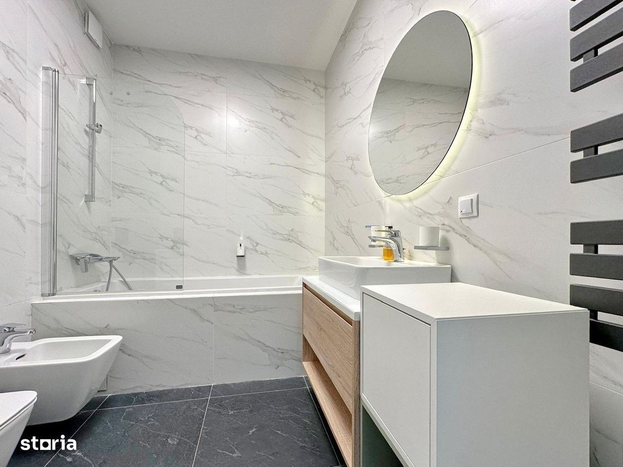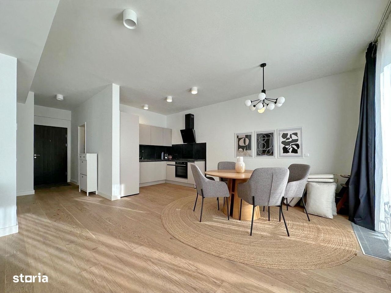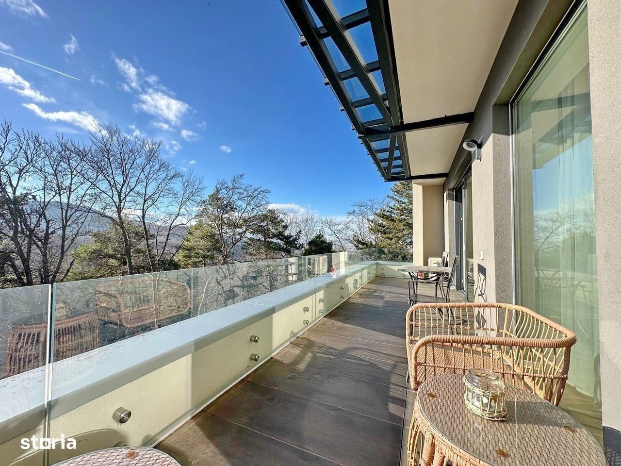 Proprietatea propusa spre inchiriere se afla pe Drumul Poienii, in complexul rezidential Belveo, un complex cu acces privat, la doar doua minute de Livada Postei. Apartamentul dispune de structura decomandata, cu compartimentare practica, suprafete vitrate ample si finisaje premium. Spatiul este compus din zona de zi: living, bucatarie, dining si iesire pe o terasa generoasa cu vedere directa catre Muntele Tampa si padure, si zona privata alcatuita dintr-un dormitor generos si o baie. Tranzactionarea se face cu mobilierul si aparatura elecrocasnica din prezentare, iar in pretul afisat este inclus si un loc de parcare subteran. Garantia perceputa constituie contravaloarea a doua luni de chirie.