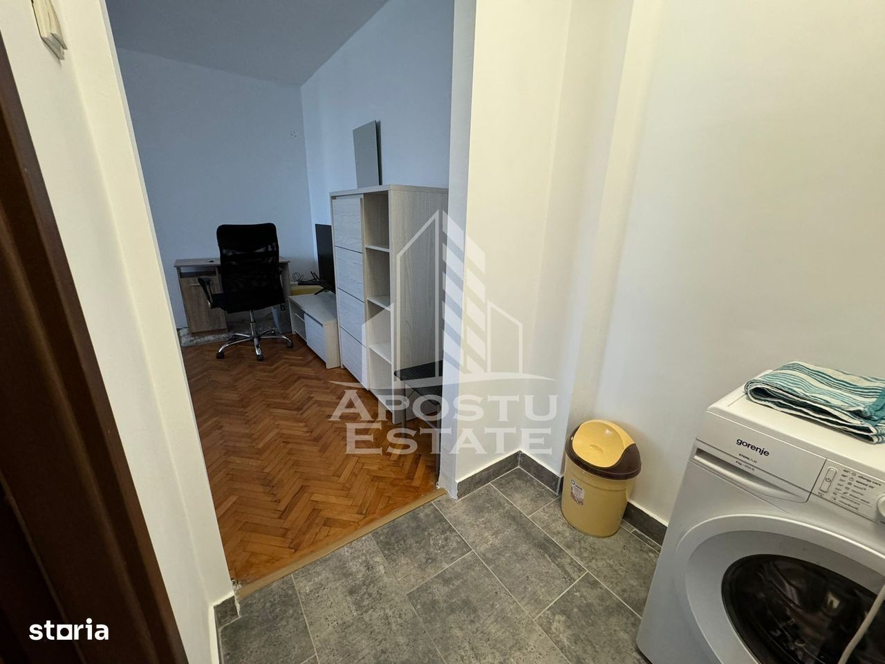 APOSTU ESTATE va propune spre inchiriere un apartament semidecomandat cu 2 camere, pozitionat in zona ultracentrala, situat la etajul 7 din 7 al unui imobil cu lift si acoperis, dispune de suprafata generoasa de 50mp si 2 balcoane deschise de 4mp. Apartamentul este in curs de renovare, urmand sa fie mobilat complet nou pe comanda. Vecinatati: -Catedrala Mitropolitana - Piata Operei - UVT/UMT - mijloace de transport in comun Compartimentare: - hol de acces - living cu canapea extensibila si iesire pe balcon - dormitor cu pat matrimonial si iesire pe balcon - bucatarie complet mobilata si utilata - baie cu dus - 2 balcoane deschise Disponibil imediat! Va asteptam cu drag la o vizionare!
