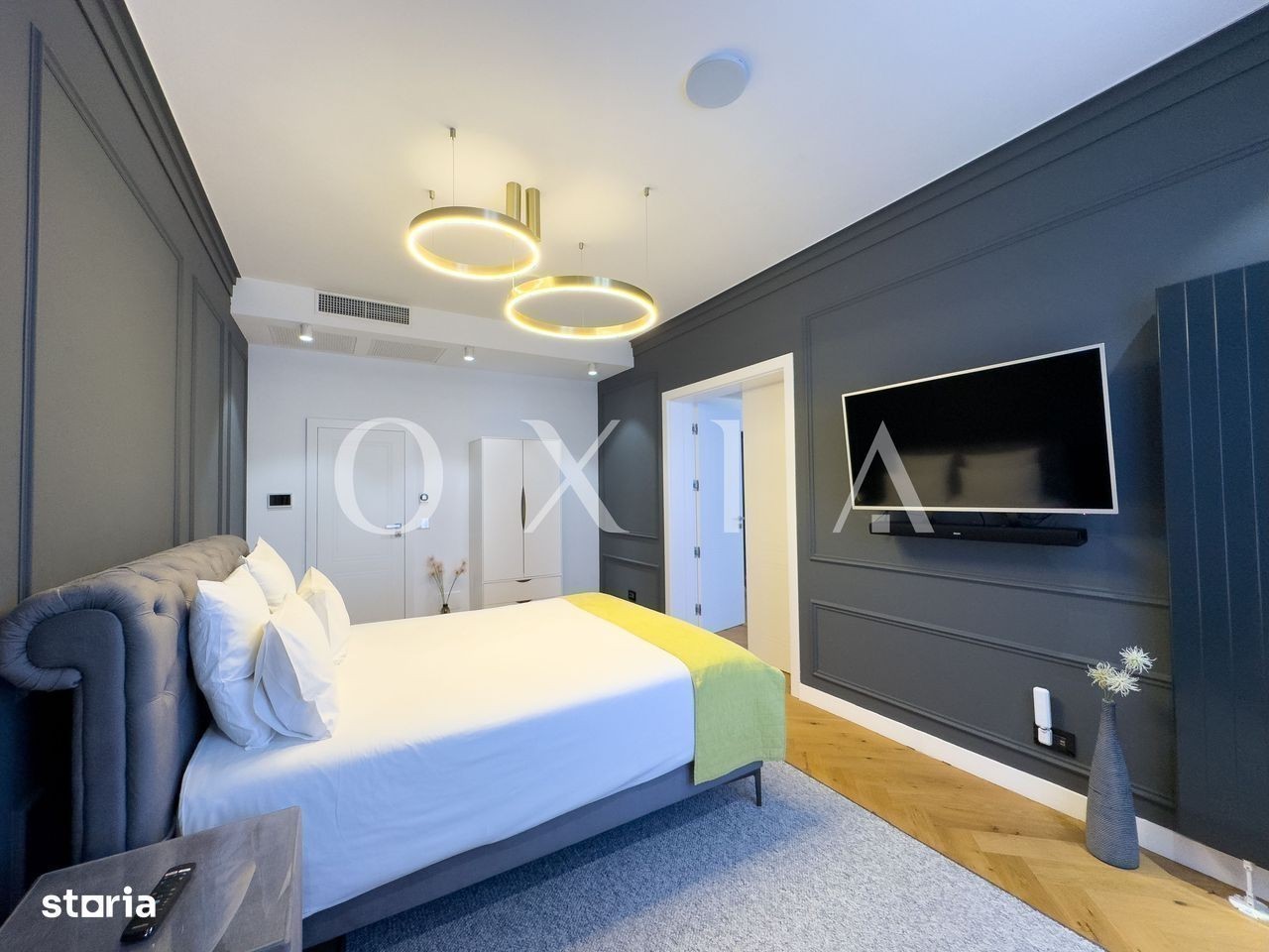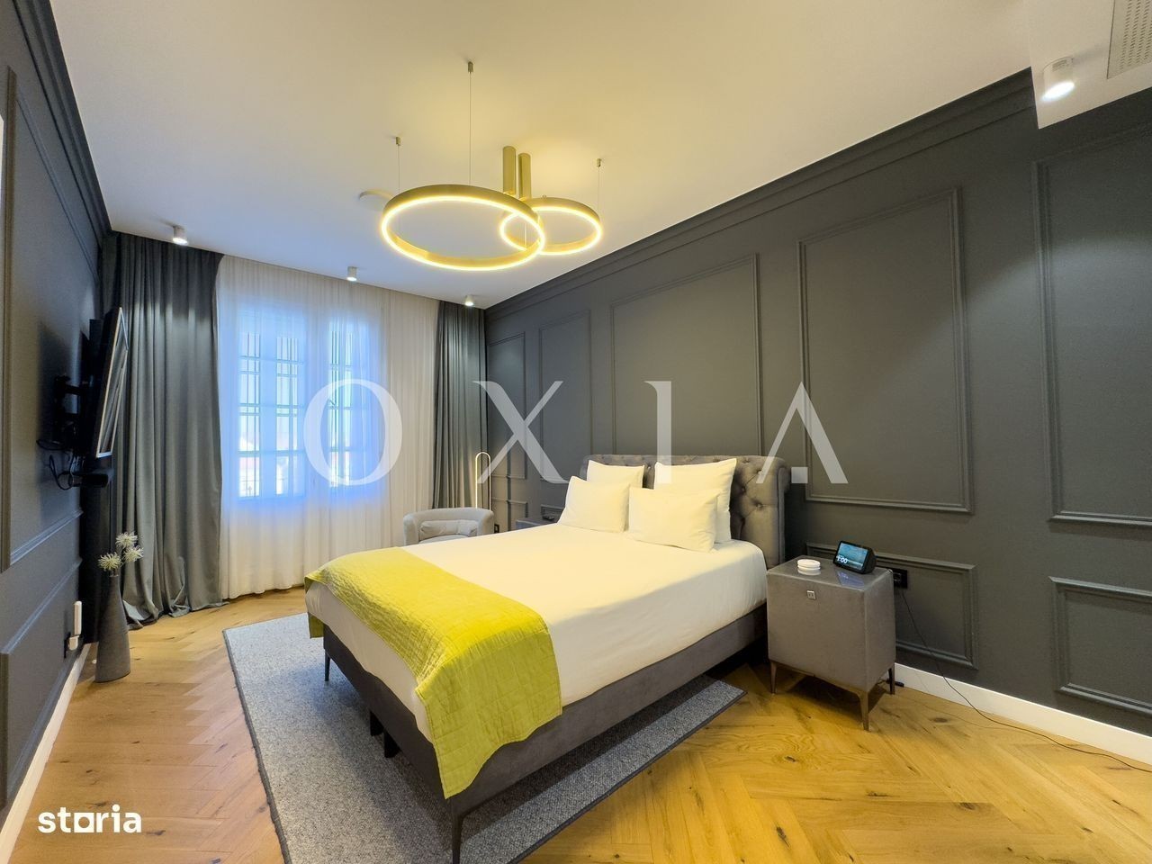 OXIA are placerea de a va prezenta spre inchiriere un apartament exceptional, cu 3 camere, situat in inima vibranta a Timisoarei, in zona ultracentrala Piata Unirii - una dintre cele mai prestigioase locatii ale orasului. Acest apartament High-Tech & Luxury, cu o suprafata utila de 100 mp, este amplasat la etajul 3 al unui imobil istoric deosebit (P+3E), complet renovat si reabilitat termic, pastrand farmecul arhitectural al zonei si oferind totodata un confort modern de neegalat. Compartimentare : * Living elegant * Bucatarie complet utilata * 2 dormitoare spatioase, fiecare cu design personalizat * 3 bai ultra-moderne * Balcon generos, cu o priveliste spectaculoasa asupra Pietei Unirii si Domului Catolic * Hol spatios si bine organizat Apartamentul impresioneaza prin amenajarile de inalta clasa si finisajele exclusiviste, iar tehnologia de ultima generatie integreaza intreaga locuinta. Controlati luminile, perdelele, televizorul sau sistemul audio doar printr-o simpla comanda vocala, datorita integrarii cu sistemul Alexa. Confortul termic este asigurat pe tot parcursul anului printr-un sistem performant de pompe de caldura si climatizare Daikin de top. Locuinta se inchiriaza complet mobilata si echipata cu dotari de inalta calitate, incluzand un TV profesional, statie de calcat, minibar, aparat Nespresso, si alte facilitati de lux, gandite pentru a satisface cele mai exigente gusturi. Pretul lunar de inchiriere este de 1500 Euro, la care se adauga garantia si comisionul agentiei. Pentru mai multe detalii sau pentru stabilirea unei vizionari va invitam sa ne contactati la numarul de telefon