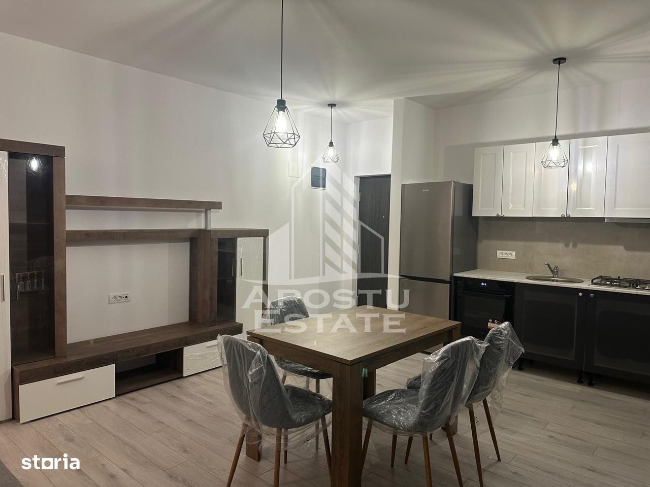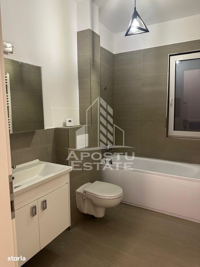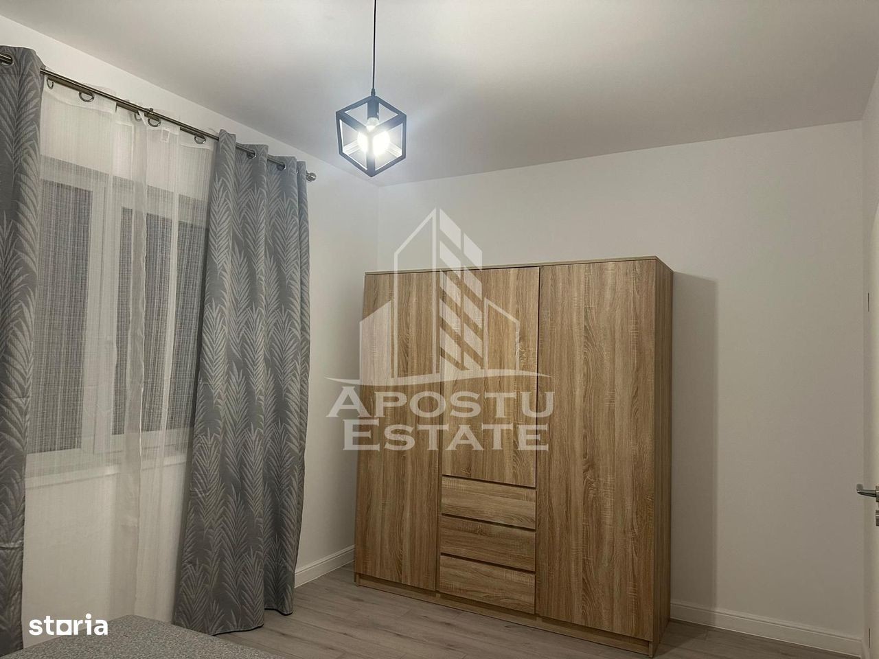 APOSTU ESTATE va propune spre inchiriere un apartament cu 2 camere, 1 baie, semidecomandat situat la etajul 1/4 in Zona Braytim. Imobilul se intinde pe o suprafata utila de 50 mp si este compartimentat astfel: - open space format din living mobilat cu canapea, loc de luat masa si bucatarie utilata cu plita pe gaz, cuptor electric, hota, frigider si masina de spalat vase,toate fiind noi. - dormitor luminos mobilat cu pat matrimonial si spatii pentru depozitare; - baie moderna cu geam si cada. Confortul termic se realizeaza prin intermediul centralei proprii iar incalzirea se face prin pardoseala. Apartamentul dispune de aer conditionat si un loc de parcare si este la prima inchiriere. Perioada minima de inchiriere este de 12 luni. Disponibilate imediata. Garantia este de 420 de euro. Vecinatati: - Lidl la 5 min cu masina; - Shopping City la 11 min cu masina; - UVT la 9 min cu masina; - Spitalul Judetean la 14 min cu masina. Va asteptam cu drag la o vizionare!