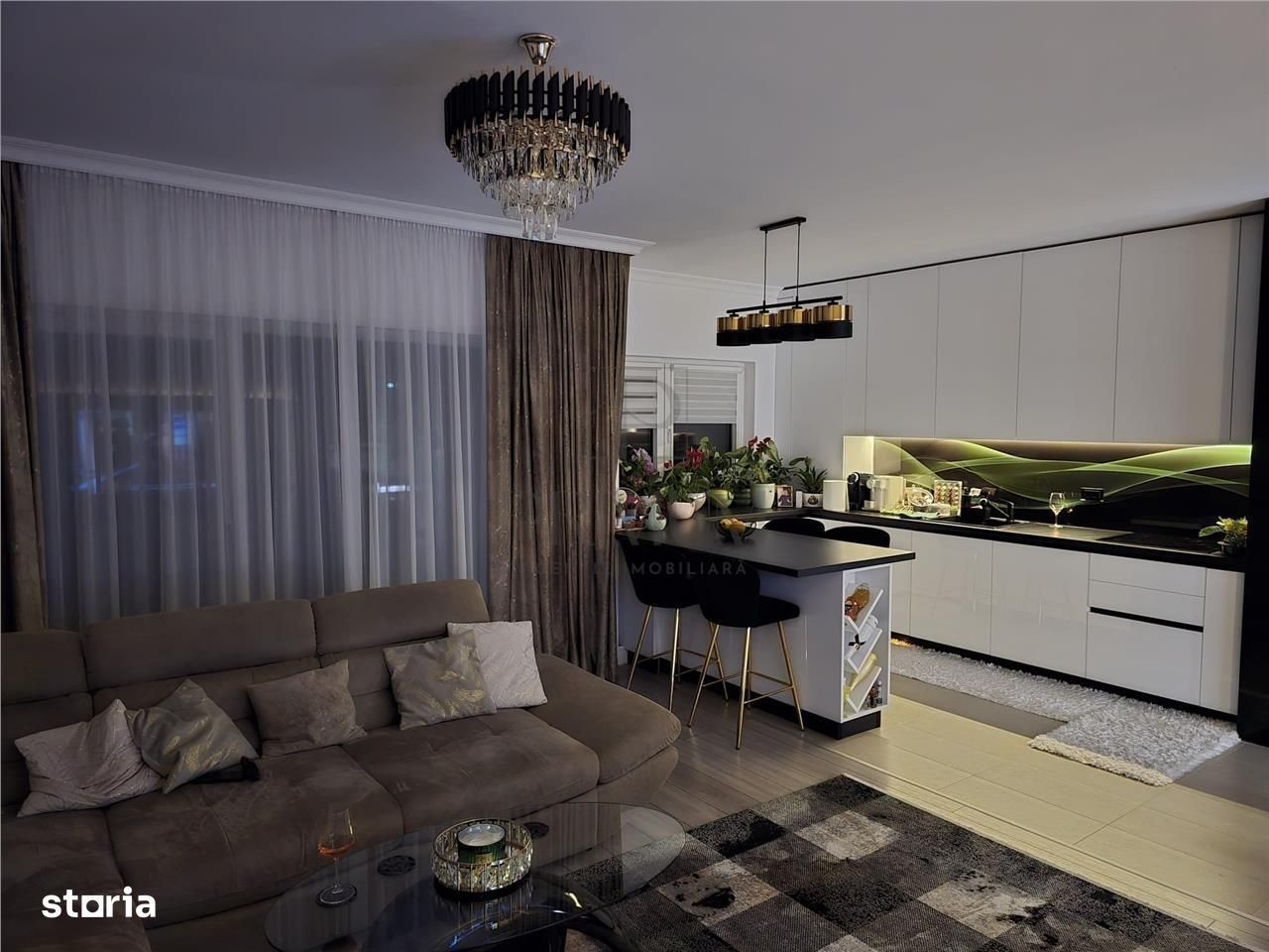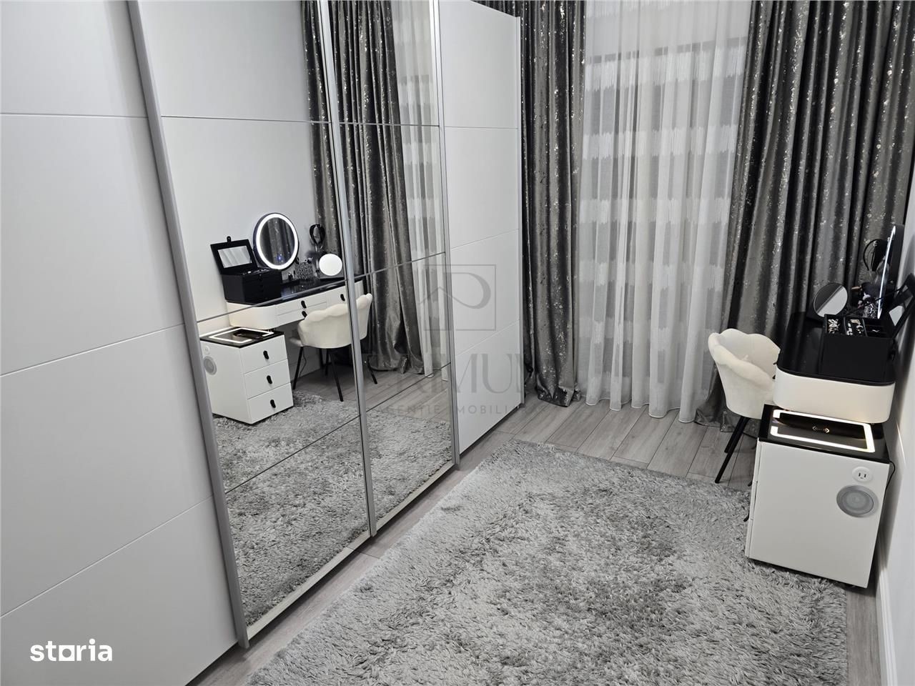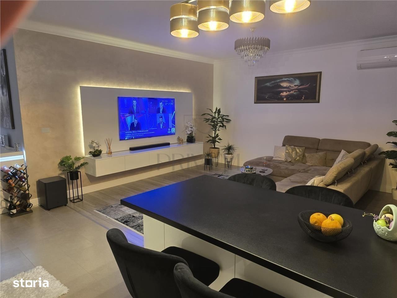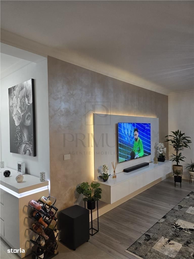 gentia imobiliara Primum iti propune spre vanzare un apartament cu adevarat special, ideal pentru cei care apreciaza confortul si eleganta. Situat in Dumbravita, pe strada Petre Tutea, acest apartament cu 3 camere iti ofera un stil de viata rafinat si linistit, intr-un bloc nou (2022), cu regim de inaltime P+2. Suprafata utila: 72 mp Compartimentare: living open space cu bucatarie, 2 dormitoare (unul amenajat ca dressing), 2 bai, 2 balcoane mari 2 locuri de parcare incluse Etaj intermediar, constructie noua Finisaje si dotari premium: - Living spatios cu sistem de iluminare ambiental in spatele televizorului - Bucatarie moderna, mobilata complet pe comanda, cu electrocasnice incorporate - Dormitor matrimonial cu pat generos si dressing mare, realizat la comanda - Al doilea dormitor este transformat in dressing separat, cu sifonier pe comanda - Mobilier si decoratiuni alese cu atentie, puse in valoare de lumina calda si finisaje elegante - Locuit foarte putin timp - apartamentul este ca nou Acest apartament nu este doar un spatiu de locuit, ci un camin in care fiecare detaliu conteaza. Perfect pentru un cuplu sau o familie care cauta confort, intimitate si stil. ID intern: 9264.