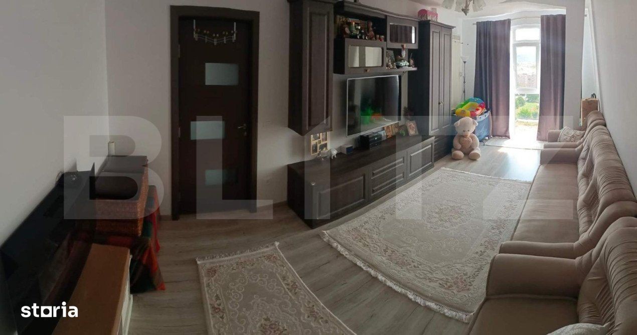 Blitz ofera spre vanzare apartament de 3 camere modern, 74 mp utili, cu loc de parcare inclus. Acesta se afla amplasat la etajul 4 al unui bloc cu regim de înălțime D+P+4E, situat intr-un complex de blocuri cu acces restritionat. Apartamentul este compus din: living, bucatarie, 2 dormitoare, o baie si hol si dispune de centrala termica proprie, tamplarie PVC cu geam termopan si usa metalica la intrare. De asemenea mai beneficiaza si de aer conditionat. Se vinde parțial mobilat și utilat. Pentru mai multe detalii nu ezitati sa ne contactati!