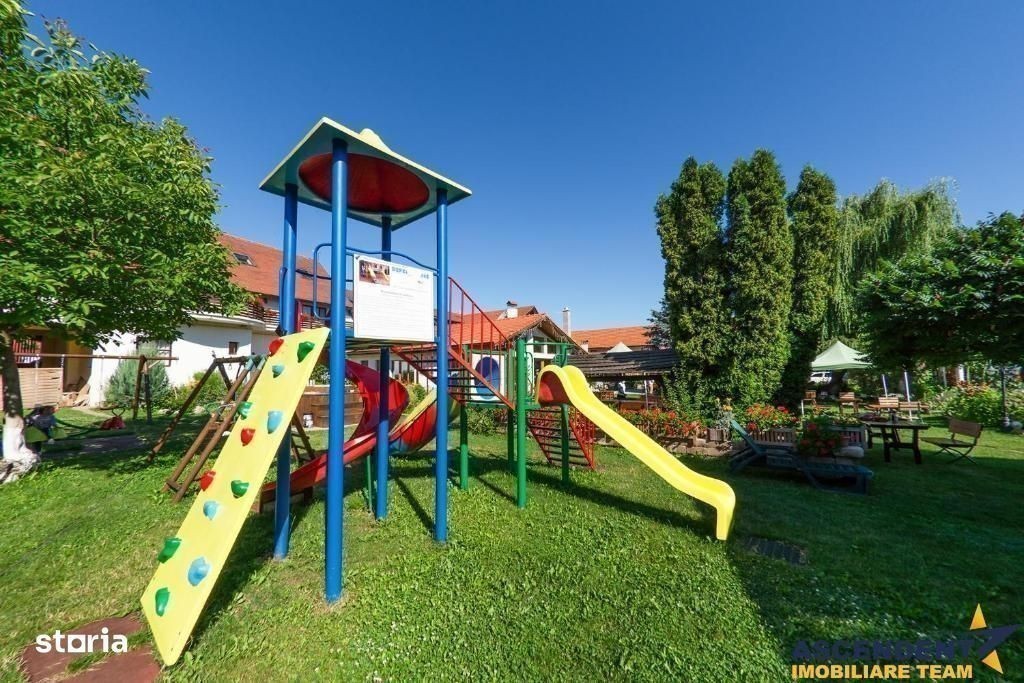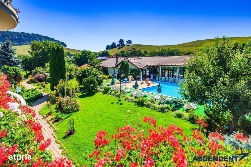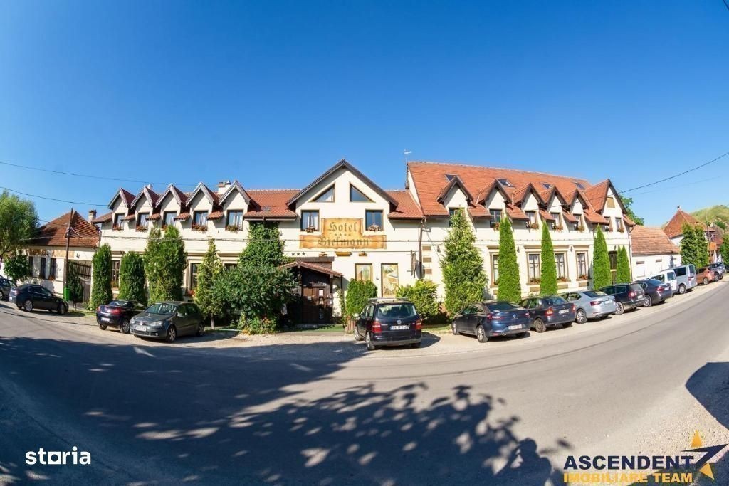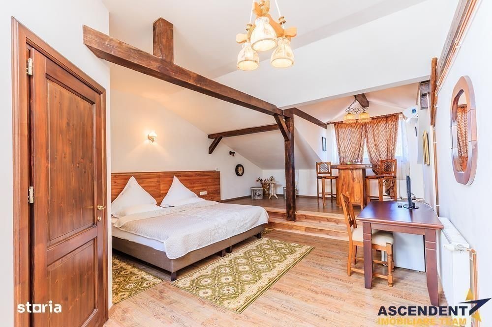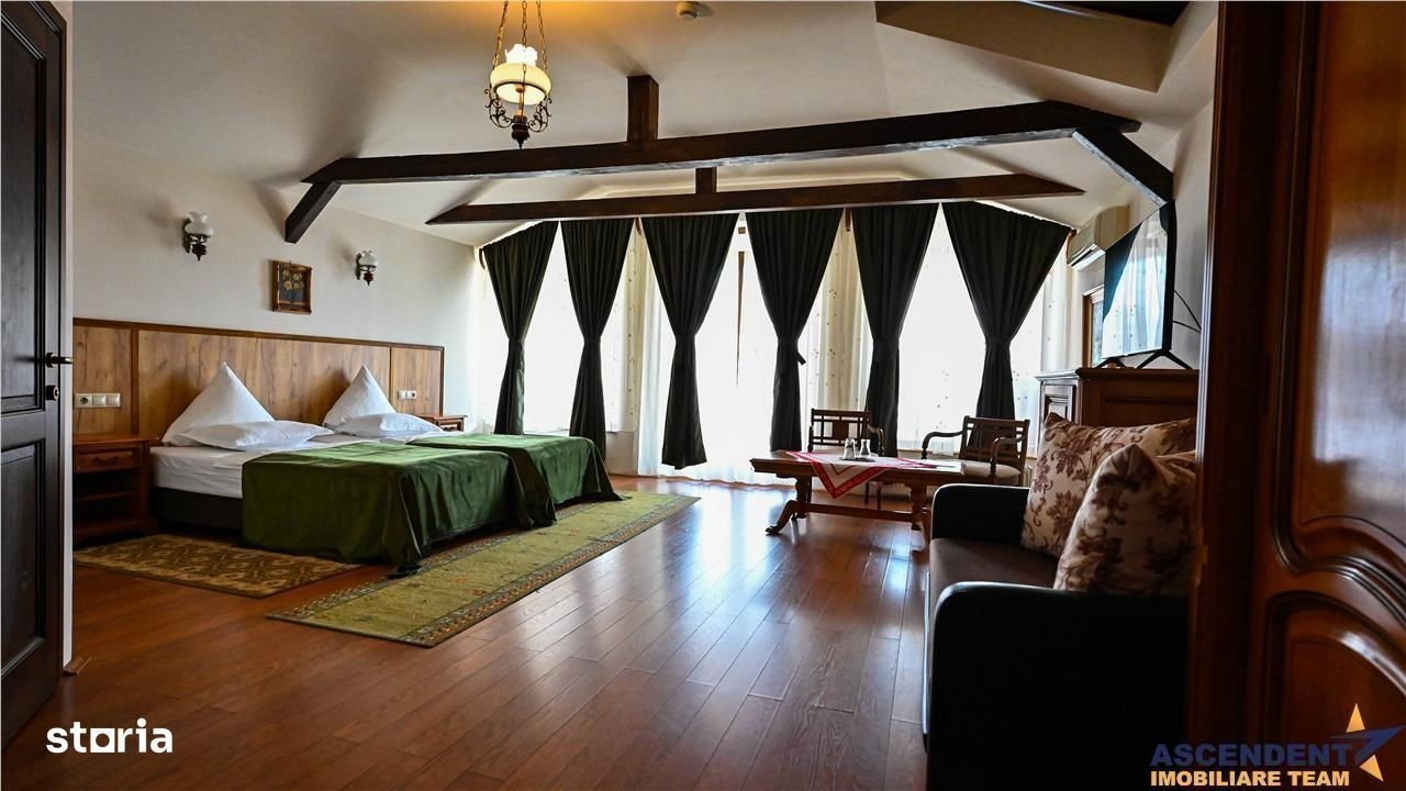 Comision cumparator 0% ASCENDENT IMOBILIARE este onorata sa va propuna spre vanzare in sistem de Reprezentare Exclusiva: o locatie de exceptie ce imbina farmecul rustic bavarez cu eleganta si rafinamentul modern: Hotel Bielmann, situat in localitatea Sanpetru, la doar 10 km de centrul Brasovului si 22 km de Poiana Brasov. Va invitam sa experimentati o vizionare initiala, din locatia unde va aflati, chiar acum, prin accesarea turului virtual. Pe o suprafata construita totala de 2.184 mp si domeniu privat cu teren in suprafata de 6.118 mp. Complexul este asortat cu o gradina superba, amenajata in jurul unei piscine exterioare de 150 mp (10x5), acesta fiind locul preferat si pentru organizarea celebrarilor in aer liber. Sala de evenimente in suprafata de 488 mp deschide facilitatile aferente. Clasificat turistic drept hotel de 3 stele pe 21 de camere si pensiune de 4 stele pe 7 camere, are in componenta doua cladiri ce ofera camere spatioase, cu suprafete cuprinse intre 25 si 45 mp. Ospitalierul dispune de o capacitate de 55 locuri cu posibilitatea de extindere la 72 locuri prin completare cu paturile extesibile aferente, distribuite in 27 de camere duble dotate cu acces la internet si tv prin satelit. Camerele sunt echipate cu bai proprii, unele dintre acestea fiind prevazute cu cada cu jacuzzi si bideu, oferind un confort sporit oaspetilor. Pentru relaxare si activitati revigorante locatia ofera suplimentar si: sala de fitness dotata cu echipamente profesionale doua saune cu capacitate de 2 si 3 persoane jacuzzi in incinta salii de fitness teren de tenis cu gazon artificial, utilizabil si pentru alte sporturi de teren Jacuzzi de 5 persoane exterior loc de joaca pentru copii in gradina Momentele pretioase se scriu si in sala de evenimente Bielmann, cu o capacitate de 100-130 persoane, favorit pentru nunti, botezuri, petreceri corporate, team-building-uri sau simpozioane. Gradina si terasa de vara completeaza atmosfera de poveste, oferind un spatiu ideal pentru festivitatile memorabile. Proprietatea este dispusa in mai multe corpuri de cladire amplasate pe laturile terenului, oferind acces pietonal facil de la un capat la altul. Exista posibilitatea de vanzare si cu teren extins la suprafata de 8.094 mp, incluzand inca o vila suplimentar, care adauga un total de 3 camere, 3 bai,bucatarie si living o piscina proprie de 30 mp si o terasa acoperita, ideale pentru cazare VIP, dar extra pretul expus. Desigur ca unicitatea acestui asezamant turistic, invita la cunoasterea detailata prin vizionarea turului virtual si desigur nu ezitati sa ma contactati telefonic pentru orice detalii suplimentare aveti nevoie. Invitam colegii la colaborare: garantam agentului agentiei partenere onorariul aferent ! Cladire certificată clasa B cu un consum anual specific de energie [kWh m²an] 126,67. Indice de emisii echivalent CO2 [kgCO2 m²an] 29,80. Consum anual specific de energie din surse regenerabile [kWh m²an] 0. Consilier specializat pe aleasa oferta: domnul Anghel Livius Telefon WhatsApp: