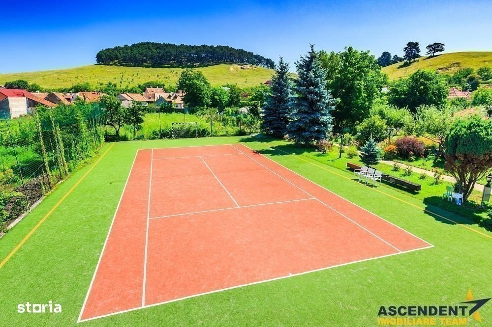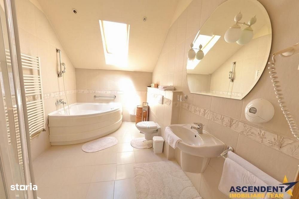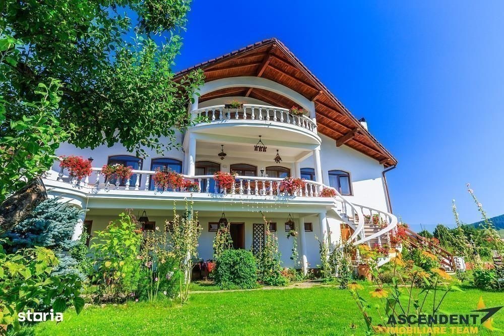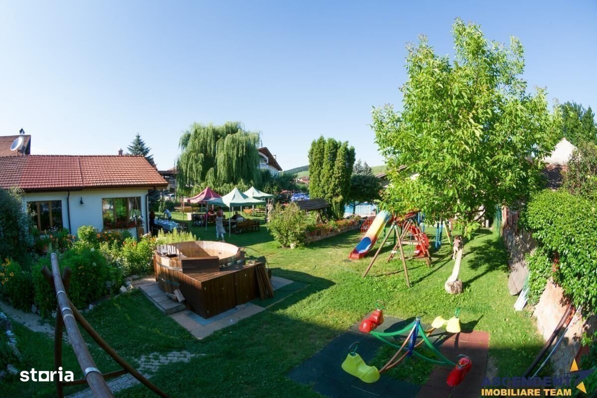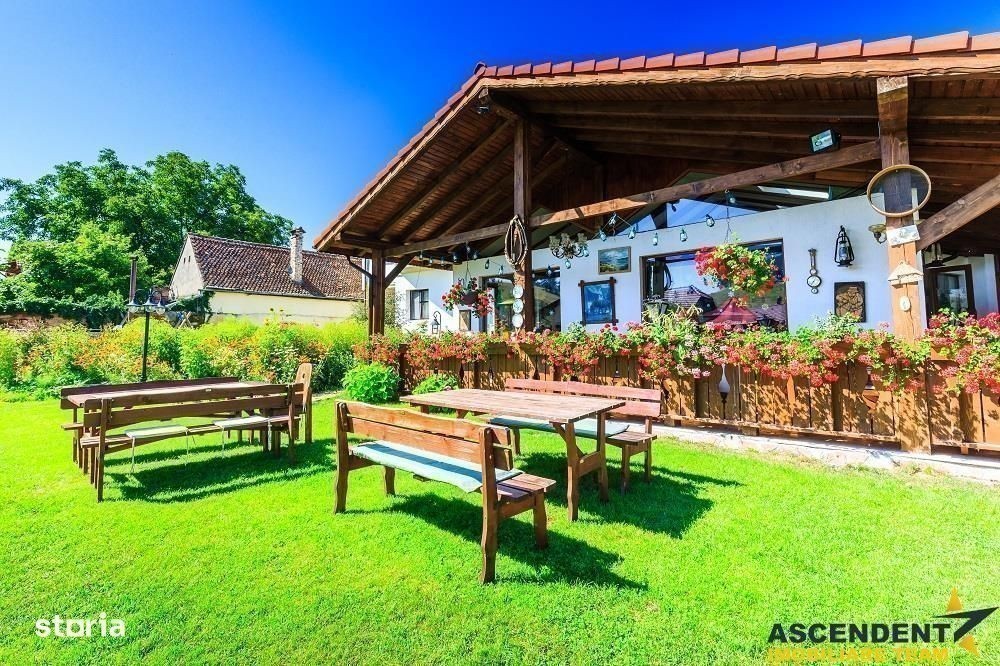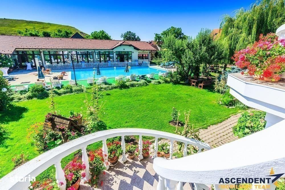 Comision cumparator 0% ASCENDENT IMOBILIARE este onorata sa va propuna spre vanzare in sistem de Reprezentare Exclusiva: o locatie de exceptie ce imbina farmecul rustic bavarez cu eleganta si rafinamentul modern: Hotel Bielmann, situat in localitatea Sanpetru, la doar 10 km de centrul Brasovului si 22 km de Poiana Brasov. Va invitam sa experimentati o vizionare initiala, din locatia unde va aflati, chiar acum, prin accesarea turului virtual. Pe o suprafata construita totala de 2.184 mp si domeniu privat cu teren in suprafata de 6.118 mp. Complexul este asortat cu o gradina superba, amenajata in jurul unei piscine exterioare de 150 mp (10x5), acesta fiind locul preferat si pentru organizarea celebrarilor in aer liber. Sala de evenimente in suprafata de 488 mp deschide facilitatile aferente. Clasificat turistic drept hotel de 3 stele pe 21 de camere si pensiune de 4 stele pe 7 camere, are in componenta doua cladiri ce ofera camere spatioase, cu suprafete cuprinse intre 25 si 45 mp. Ospitalierul dispune de o capacitate de 55 locuri cu posibilitatea de extindere la 72 locuri prin completare cu paturile extesibile aferente, distribuite in 27 de camere duble dotate cu acces la internet si tv prin satelit. Camerele sunt echipate cu bai proprii, unele dintre acestea fiind prevazute cu cada cu jacuzzi si bideu, oferind un confort sporit oaspetilor. Pentru relaxare si activitati revigorante locatia ofera suplimentar si: sala de fitness dotata cu echipamente profesionale doua saune cu capacitate de 2 si 3 persoane jacuzzi in incinta salii de fitness teren de tenis cu gazon artificial, utilizabil si pentru alte sporturi de teren Jacuzzi de 5 persoane exterior loc de joaca pentru copii in gradina Momentele pretioase se scriu si in sala de evenimente Bielmann, cu o capacitate de 100-130 persoane, favorit pentru nunti, botezuri, petreceri corporate, team-building-uri sau simpozioane. Gradina si terasa de vara completeaza atmosfera de poveste, oferind un spatiu ideal pentru festivitatile memorabile. Proprietatea este dispusa in mai multe corpuri de cladire amplasate pe laturile terenului, oferind acces pietonal facil de la un capat la altul. Exista posibilitatea de vanzare si cu teren extins la suprafata de 8.094 mp, incluzand inca o vila suplimentar, care adauga un total de 3 camere, 3 bai,bucatarie si living o piscina proprie de 30 mp si o terasa acoperita, ideale pentru cazare VIP, dar extra pretul expus. Desigur ca unicitatea acestui asezamant turistic, invita la cunoasterea detailata prin vizionarea turului virtual si desigur nu ezitati sa ma contactati telefonic pentru orice detalii suplimentare aveti nevoie. Invitam colegii la colaborare: garantam agentului agentiei partenere onorariul aferent ! Cladire certificată clasa B cu un consum anual specific de energie [kWh m²an] 126,67. Indice de emisii echivalent CO2 [kgCO2 m²an] 29,80. Consum anual specific de energie din surse regenerabile [kWh m²an] 0. Consilier specializat pe aleasa oferta: domnul Anghel Livius Telefon WhatsApp: