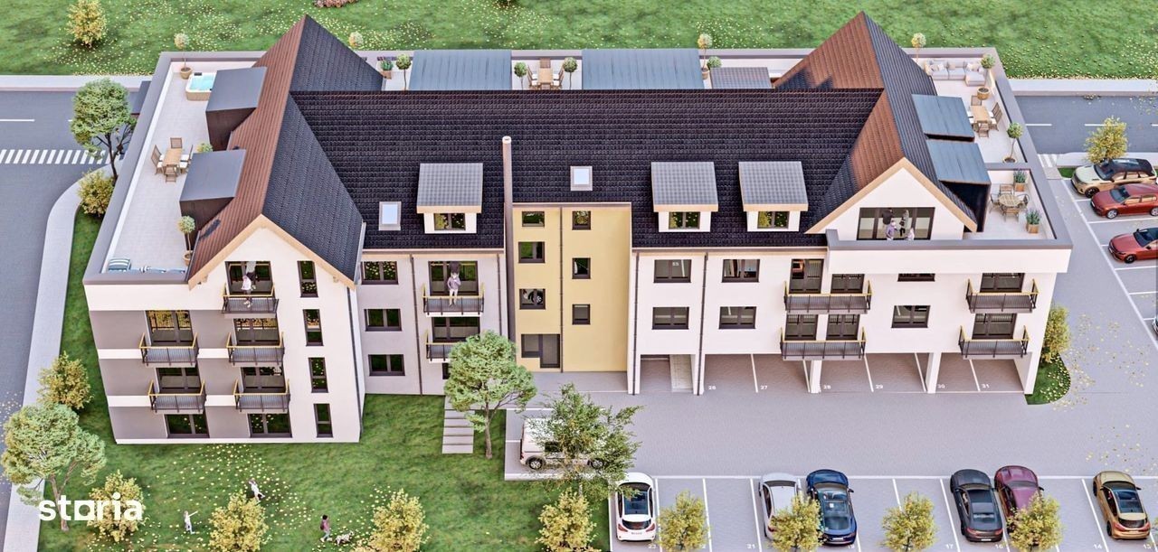 Descoperă un Penthouse spectaculos, situat la etajul 3/3 al unui bloc tip vilă certificat energetic Clasa A, într-o zonă liniștită și aerisită. - 102 mp utili inteligent compartimentați - Terasa de 108 mp - perfectă pentru relaxare, grătar, jacuzzi sau grădină urbană - Priveliste superbă către Tâmpa și Postăvarul - cadru natural de excepție - Luminos, orientat Est-Sud-Vest (opțional, dacă așa e poziționat), cu intimitate totală - Finisaje Premium & Dotări de calitate: • Uși interioare Jeld Wen (Germania) • Ușă metalică de intrare, structură solidă • Obiecte sanitare Geberit, baterii Grohe • Parchet laminat 12 mm • Centrală termică De Dietrich • Tâmplărie Salamander cu 7 camere • Izolație fonică și termică cu vată bazaltică între etaje Clădirea are doar 3 etaje, cu un număr redus de apartamente - liniște, siguranță și o comunitate restrânsă. Pentru mai multe detalii sau pentru a programa o vizionare, nu ezita să mă contactezi!