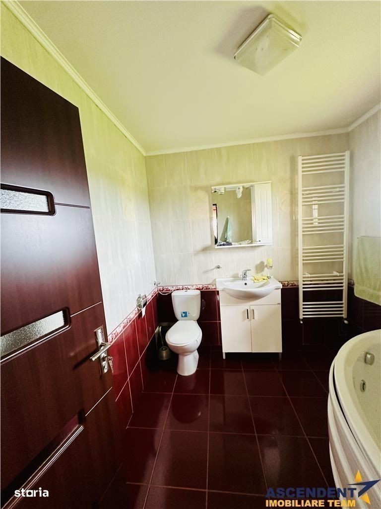 Comision cumparator 2% +TVA din valoarea de tranzactionare ASCENDENT IMOBILIARE propune spre vanzare o frumoasa proprietate materializata printr-o vila deosebita, cu un design unic si o arhitectura moderna, mobilata si utilata premium, situata in Sanpetru, Brasov, la 5 minute de centrul orasului si de toate punctele de interes. Imobilul in suprafata de 264 mp utili si este amplasat pe un teren de 2389 mp, cu o curte frumos amenajata, cu o peisagistica aparte ce se remarca prin flori, plante ornamentale, arbusti, gazon rulat, iar imprejmuirea este din beton armate. Configuratia interioara dispune de o compartimentare dinamica si practica, cu spatii largi si insorite, foarte bine valorificate si se desfasoara astfel: - la parter: living generos si bucatarie open-space si o scara interioara superba, hol, baie de seviciu, camera tehnica, debara, sala de fitness. Terasa cu acces din living este un alt element de eleganta si utilitate, la parter proprietatea are 3 cai de acces dintre care doua cu terasa, camera centralei pe lemne si camera centralei pe gaz. - la etaj: remarcam un dormitor matrimonial cu baie proprie, dressing, dormitor cu acces pe balconul mare, dormitor secundar cu acces pe un balcon mic, baie generoasa, hol si dresing Consultant dedicat acestei oferte, Stramciuc Florentina Telefon WhatsApp: