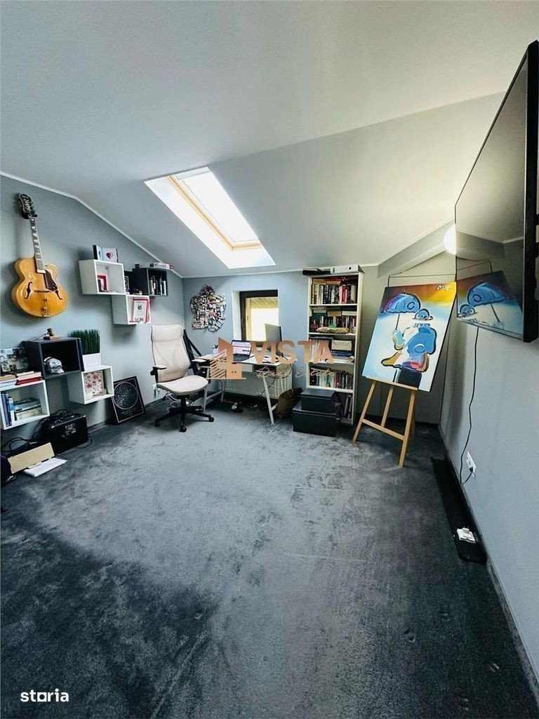 Vista Real Estate va propune spre vanzare o casa situata in Ghimbav-zona Florilor. Imobilul are suprafata utila de 111 mp si este desfasurata pe plan P+M si este compartimentata astfel: -parter: hol, grup saniatar de servici, bucatarie cu living open space (cu iesire direct pe terasa care are o vedere superba spre munti); -mansarda: hol, un grup sanitar mare, 2 dormitoare dintre care unul cu dressing. Imobilul detine toate utilitatile si se vinde mobilata si utilata conform fotografiilor. Casa este dispusa pe 193 mp de teren.