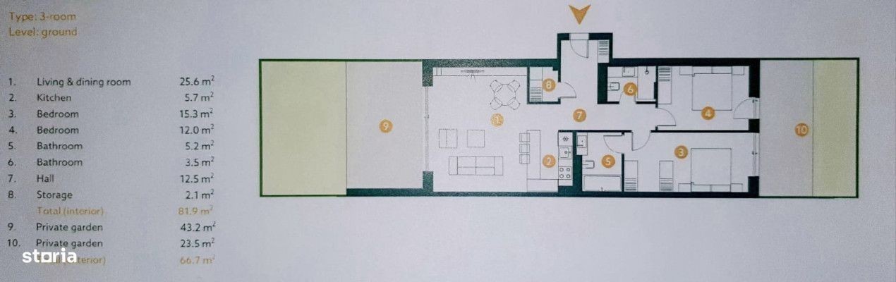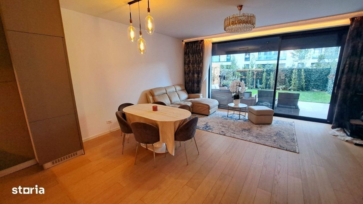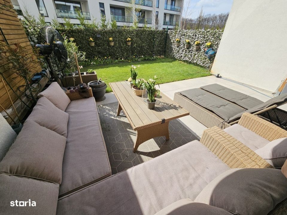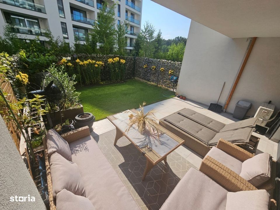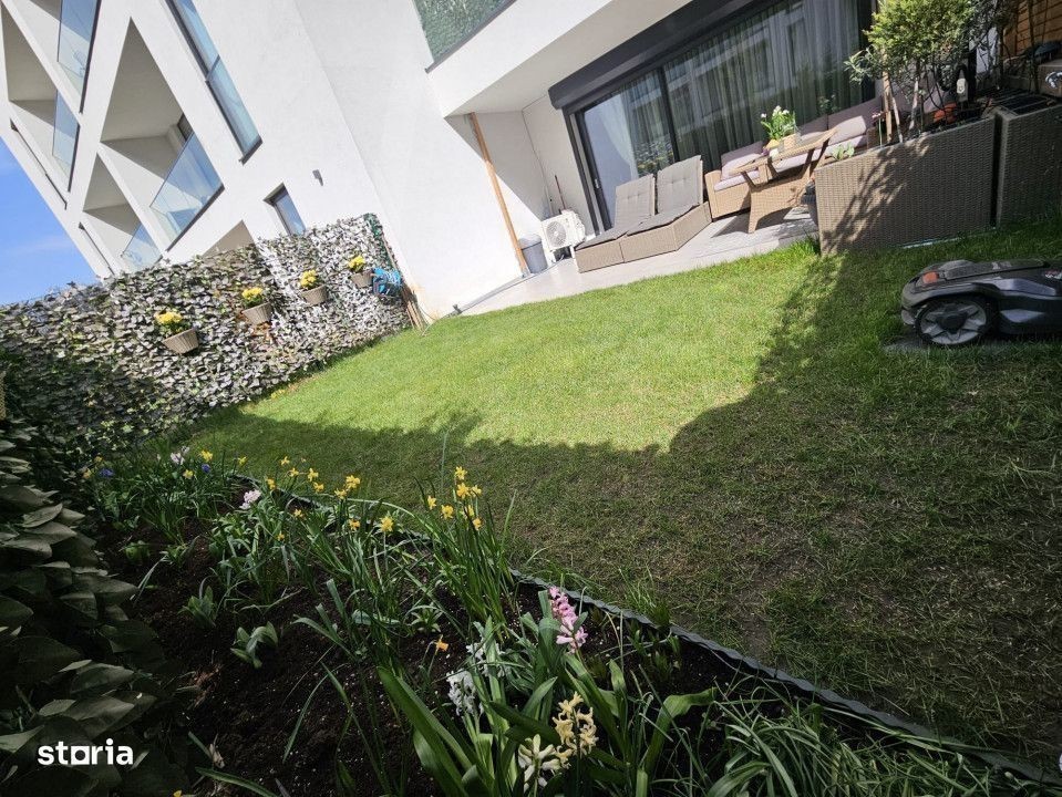 EDUCARE va prezinta o OFERTA EXCLUSIVISTA în Complexul Rezidențial THE IVY, langa Pădurea Baneasa, Clubul Stejarii si Complexul Comercial Baneasa Shopping City. THE IVY se desfășoară pe o suprafață securizata de 5 HA, ofera multiple spatii verzi comune rezidentilor și numeroase facilitati pentru o viata moderna: loc de joaca pentru copii, în viitor fiind planificat sa se edifice un iaz, o piscina, sala de fitness si o zona comerciala. BENEFICIILE pozitiei: -acces facil catre DN1 (Aeroporturile Baneasa și Otopeni) prin 3 drumuri de acces, cu bariera și culoare de depasare; -mijloace de transport: 4 minute pana la stația de autobuz Institutul Meteorologic Baneasa, 6 minute pana la Stația de Metrou TOKIO (în curs de executie); -zona comerciala: 3 minute cu masina pana la Decathlon, Mega Image 24/7, Baneasa Shopping City, Ikea, Dedeman; -liniste datorita retragerii fata de zgomotul și aglomerația de pe DN1, dar poziționare între Padurea Baneasa și fosta livada a Institului Agronomic, ceea ce oferă un confort termic sporit în perioada caniculara; AVANTAJELE proprietatii: -cea mai mare retragere a unui apartament de 3 camere fata de celelalte imobile din complex: pozitie aerisita si luminoasa (orientare rasarit in zona dormitoarelor si catre sud si apus in zona livingului); -toate vecinatatile sunt construite cu imobile noi cu arhitectura premium la distante ample, fiind mărginite de drumuri de acces și alei pietonale; -terasele și curțile bine proporționate oferă intimitate, spațiu suficient pentru familie și o îngrijire minima a spațiului verde (cu un robot HUSQVARNA de tuns gazonul); -se pot utiliza 1-2 locuri de parcare în garajul interior ce sunt poziționate exact sub apartament; -multiple spatii de relaxare dotate corespunzator (mobilier terasa, șezlonguri, șemineu cu scop ambiental/caldura, balansoar dublu scoica gradina etc.); -spatii de depozitare "ascunse": cuier și pantofar, debara atipica si mobilata (2,1 mp); LIMITAREA RISCURILOR pentru conviețuirea la parter: -sistem eficient de drenaj în curtea privata pentru a se limita inundațiile în cazul precipitațiilor abundente; -solutii de colectare a apei pluviale direct în sistemul centralizat de canalizare, cu limitarea apariției de deteriorări în timp la nivelul fațadei sau a termo/hidroizolatiei; -securitate sporita: sistem de monitorizare video a teraselor și rulouri exterioare de aluminiu cu actionare prin telecomanda; -eficienta energetica: termoizolație eficienta la nivelul planșeului subsolului, incalzire prin pardoseala cu variator de temperatura, centrala termica pe bloc performanta, costuri reduse la intretinere și izolația suprafețelor vitrate ample cu rulourile exterioare; DOTARILE apartamentului: -complet mobilat și utilat, cu posibilitatea mutării doar cu obiectele personale; -finisaje premium: obiecte sanitare Villeroy&Boch și Grohe, ceramica Marazzi, tapet, riflaje; -electrocasnice: aer conditionat GREE cu inverter si control wifi (18000 BTU, 12000 BTU), SMART TV Samsung 4K 163 cm, Home Cinema Samsung, toata gama ELECTROLUX incorporabila la bucatarie (cuptor cu microunde, cuptor electric, plita cu inducție si hota, masina de spalat vase), frigider AEG (eficienta peste +++), masina de spalat rufe cu uscător LG; -dotări high-tech: draperii acționate electric, multiple sisteme de iluminare led multicolor cu actionare wifi, prize ascunse bucatarie, întrerupătoare smart; In pretul solicitat este inclusa utilizarea a unui LOC DE PARCARE SUBTERAN. Proprietar PERSOANA FIZICA.
