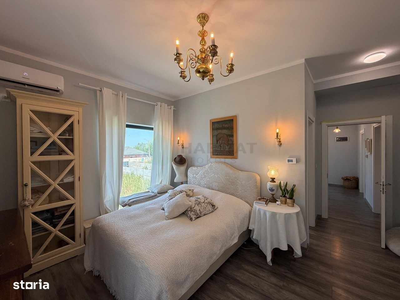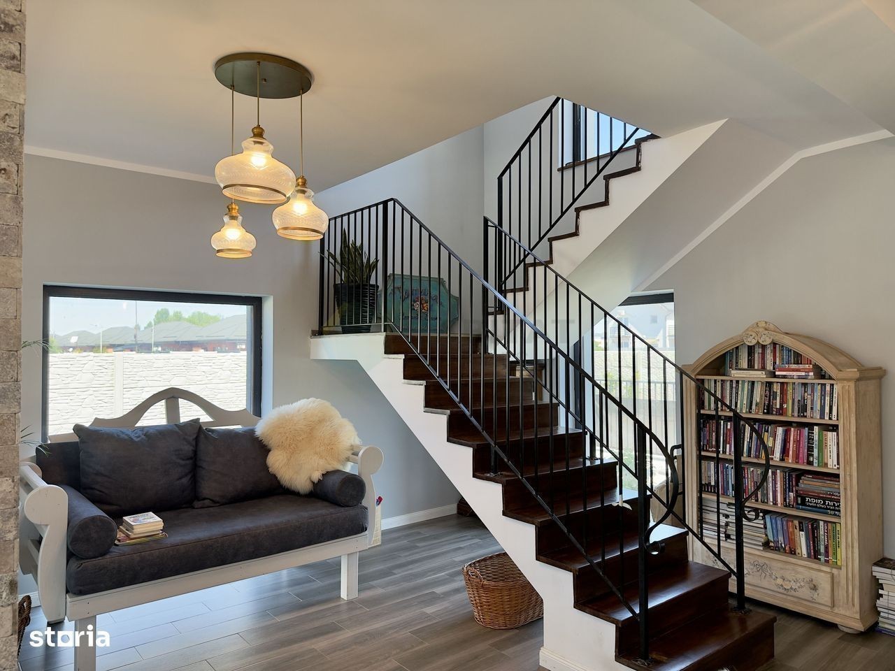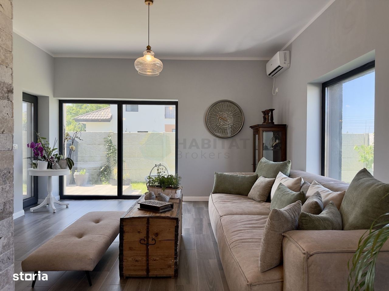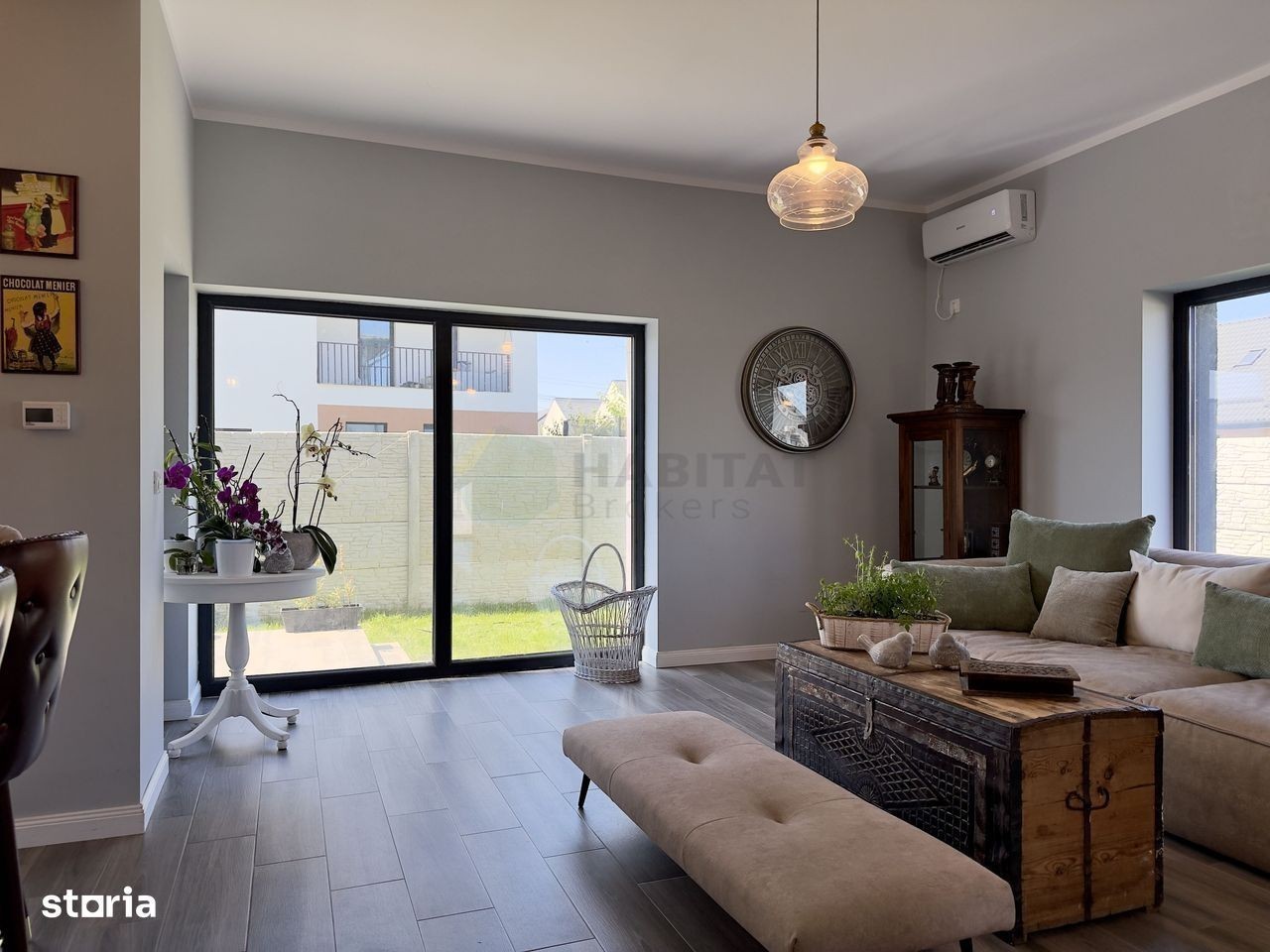 Reducere de pret de la 320.000 euro! Situată într-un cartier liniștit din Tunari, această vilă cochetă îmbină armonios funcționalitatea modernă cu un aer cald și primitor. O locuință ideală pentru cei care își doresc un spațiu intim, bine organizat și frumos amenajat. Exteriorul impresionează printr-o curte de 200 mp, complet amenajată cu plante decorative și pomi fructiferi, oferind un colț verde de relaxare perfect pentru dimineți liniștite sau seri petrecute în aer liber. Sunt disponibile două locuri de parcare în fața casei. Parterul este gândit deschis, cu un living generos și o bucătărie integrată, mobilată complet într-un stil romantic, shabby chic - un spațiu luminos și aerisit, în care fiecare detaliu a fost ales cu grijă. Tot aici se află și un grup sanitar discret, precum și zone de depozitare bine poziționate. Etajul găzduiește trei dormitoare confortabile, dintre care unul matrimonial cu baie proprie. Celelalte două camere împart o baie modernă, iar balconul oferă un plus de deschidere și lumină. Dotări moderne: Încălzire în pardoseală, cu termostate individuale în fiecare cameră Centrală termică pe gaz Ferestre mari ce asigură lumină naturală din plin Complex rezidențial închis, cu acces securizat Această proprietate este ideală pentru o familie care caută un loc bine construit, cald și funcțional, într-o zonă ferită de agitația orașului, dar cu acces facil către Nordul Capitalei.