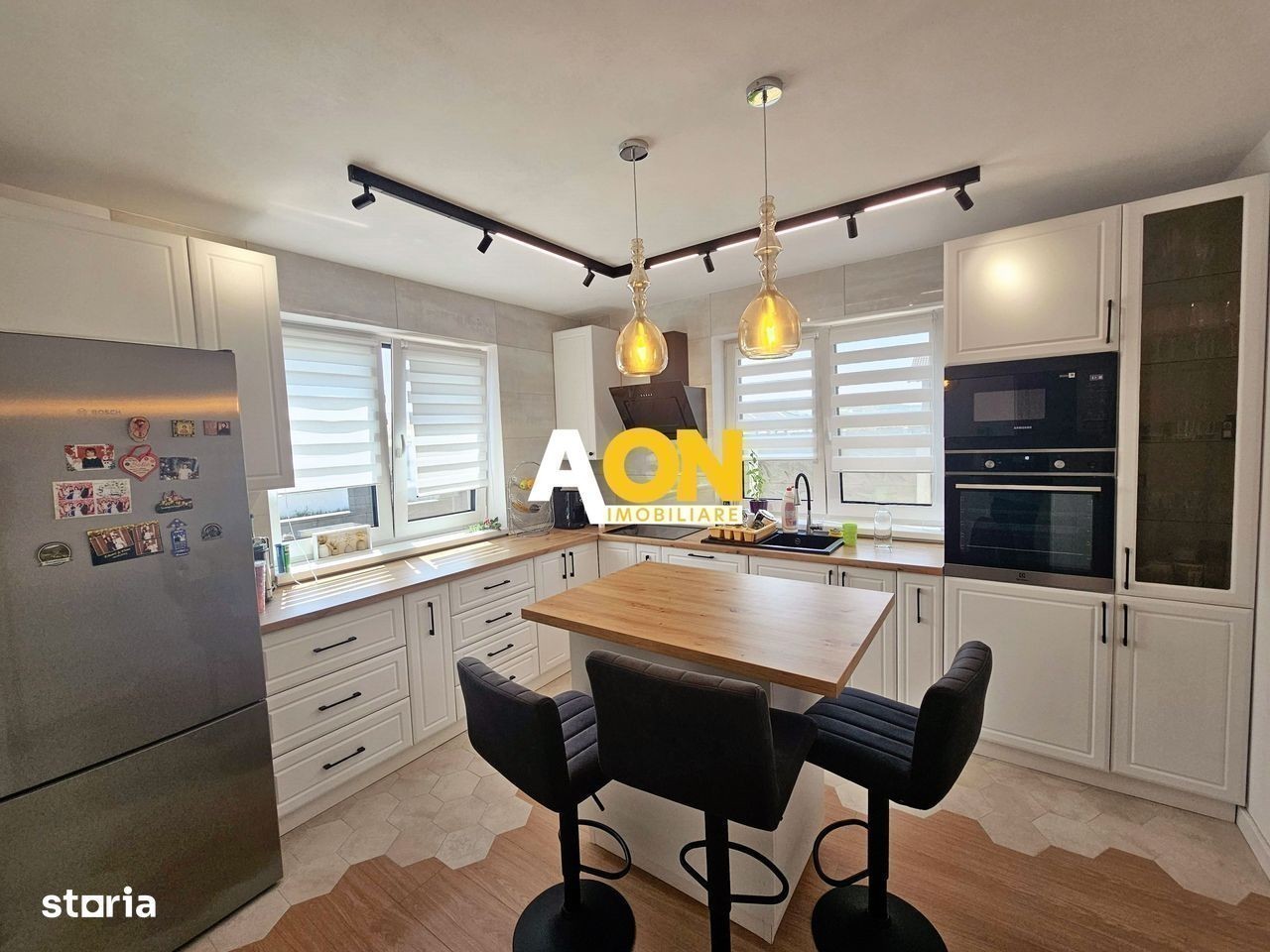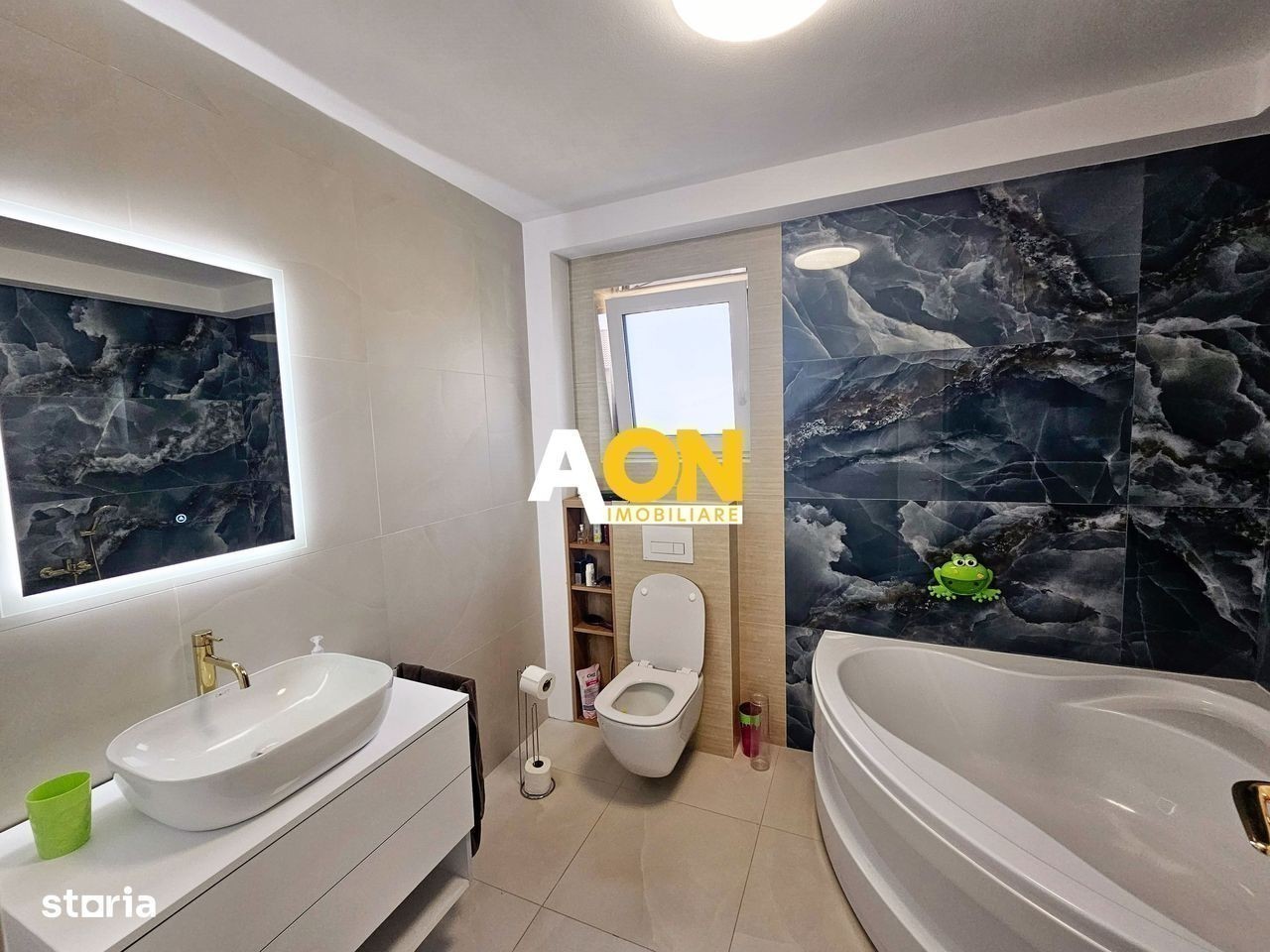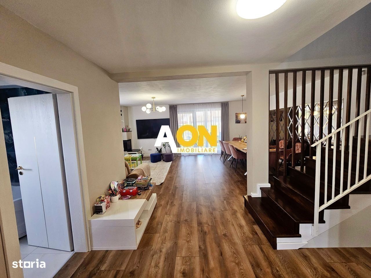 AON Imobiliare vă propune spre vânzare o casă individuală, finalizată în 2024, situată într-o zonă liniștită din cartierul Partoș, la doar câteva minute de accesul spre autostradă, centrul municipiului Alba Iulia și Sebeș. Imobilul are un regim de înălțime P+1, are suprafața utilă de 140 mp ( suprafața totală desfășurată 241 mp) și este amplasat pe un teren de 985 mp, beneficiind de toate dotările necesare unui trai modern. Compartimentare: • Parter: living cu șemineu și ieșire în terasa acoperită, bucătărie, baie, hol, debara, garaj, cameră tehnică • Etaj: 3 dormitoare, dressing, baie, hol Dotări și finisaje: • Încălzire în pardoseală cu centrală pe gaz • Aer condiționat • Șemineu pe lemne • Geamuri tripan • Sistem de supraveghere video • Se vinde complet mobilată și utilată Utilități: racordare la rețeaua de apă, curent definitiv, fosă septică (canalizarea este în apropiere) Notă: Casa este izolată termic la exterior, dar nu are aplicată vopseaua decorativă finală. O locuință modernă, practică, situată într-o zonă ideală pentru familii! ID intern: CP2587450